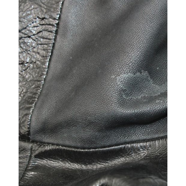 Made in Italy, Patchwork Design with Different texture of leather, silver tone chain, spacious interior.
