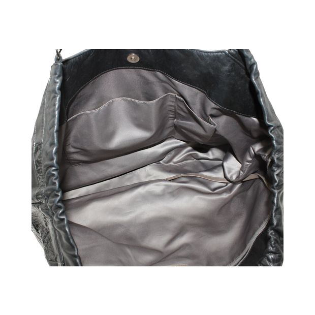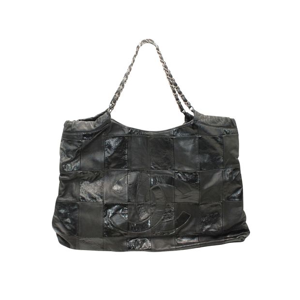 Chanel Black Leather Patchwork Tote With Silver Tone Chain 2013-2014