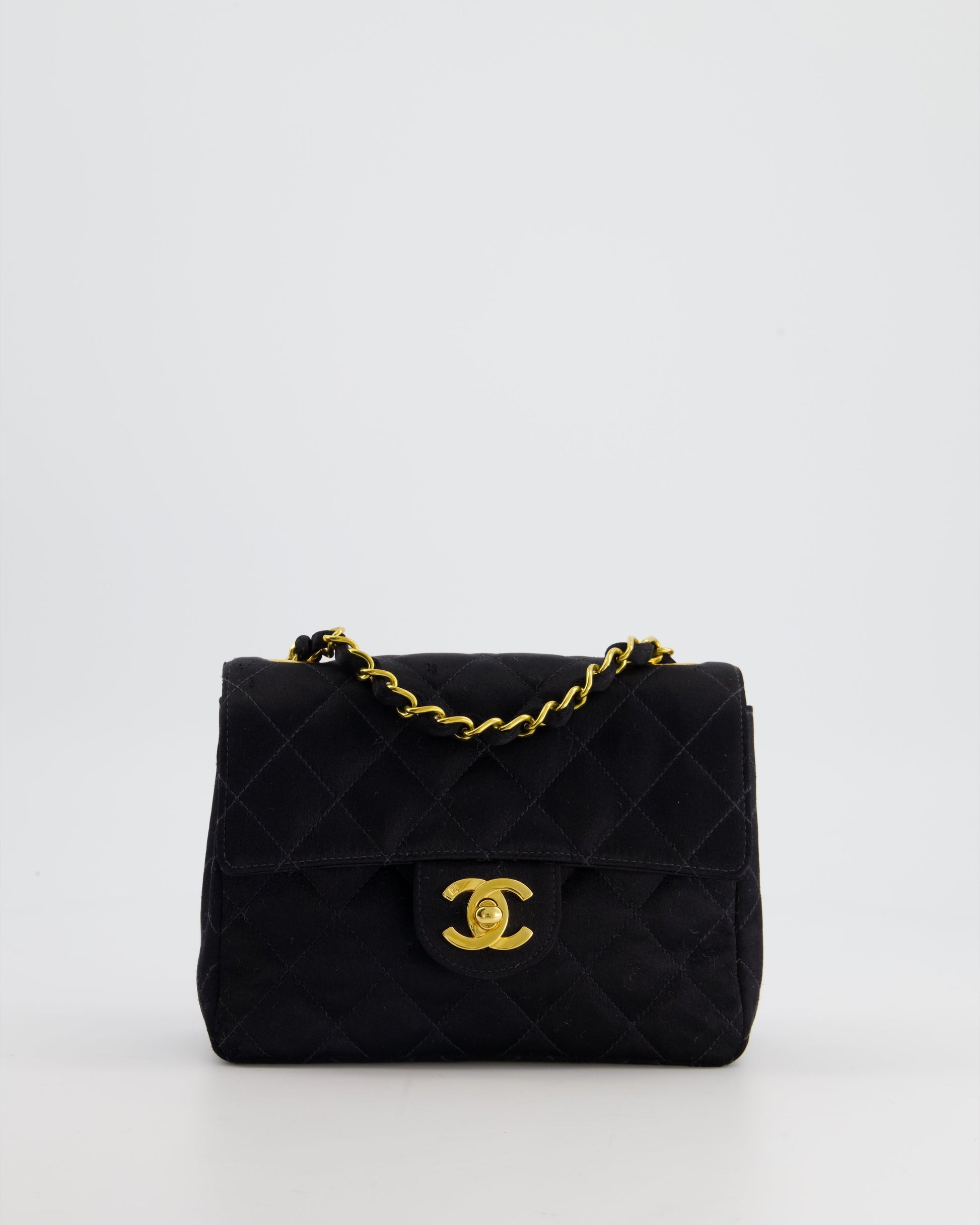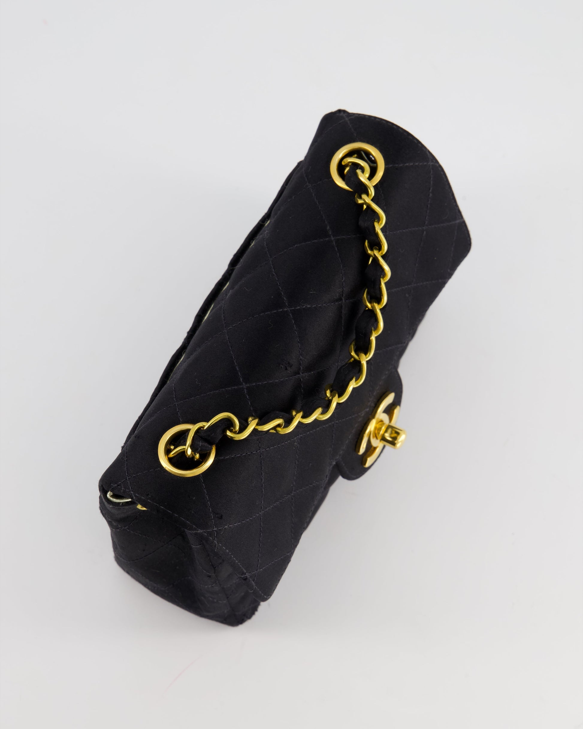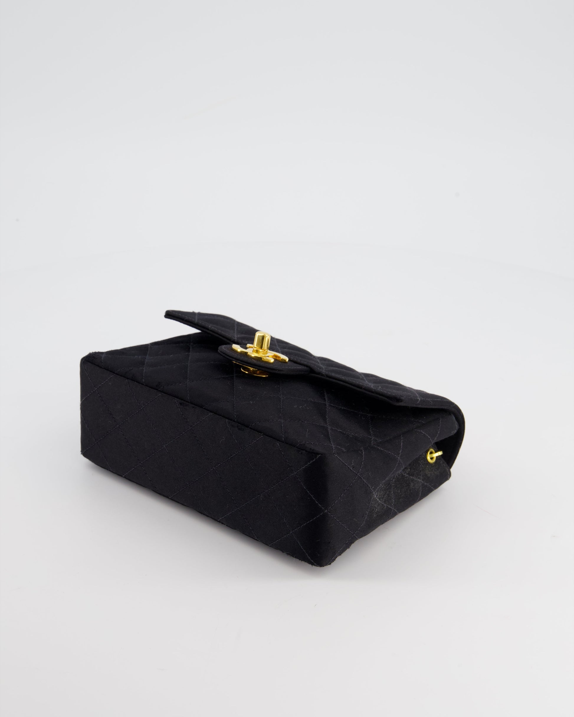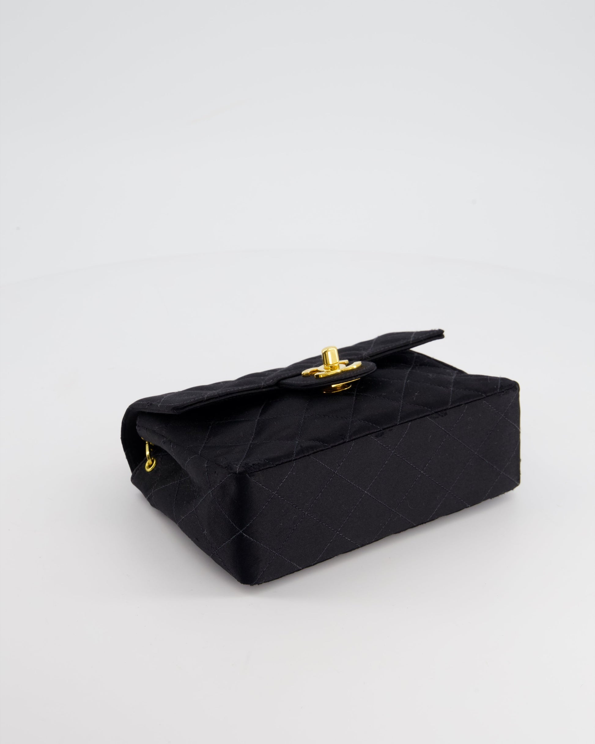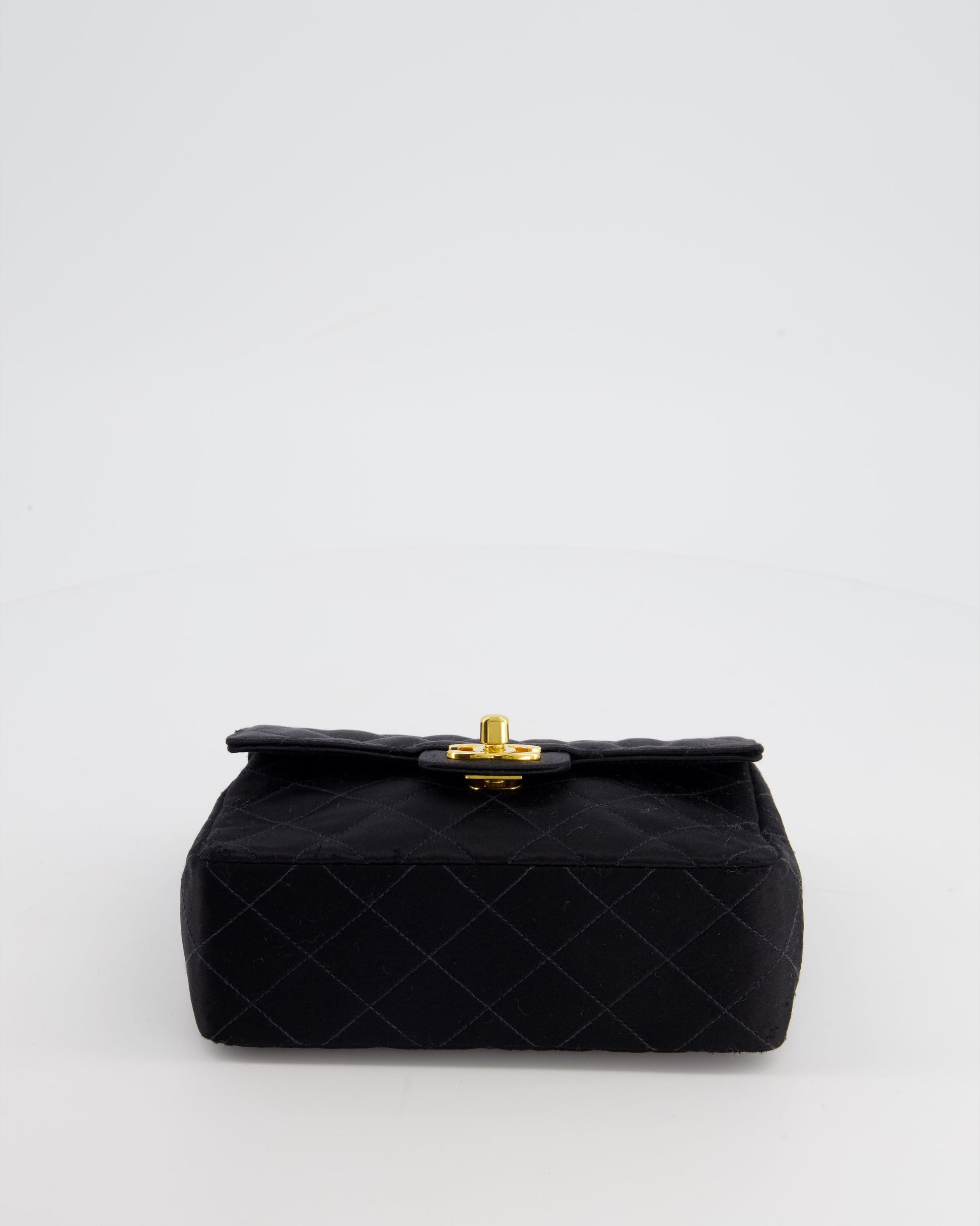 Chanel Vintage Satin Black Mini Square Flap Bag with 24K Gold Hardware