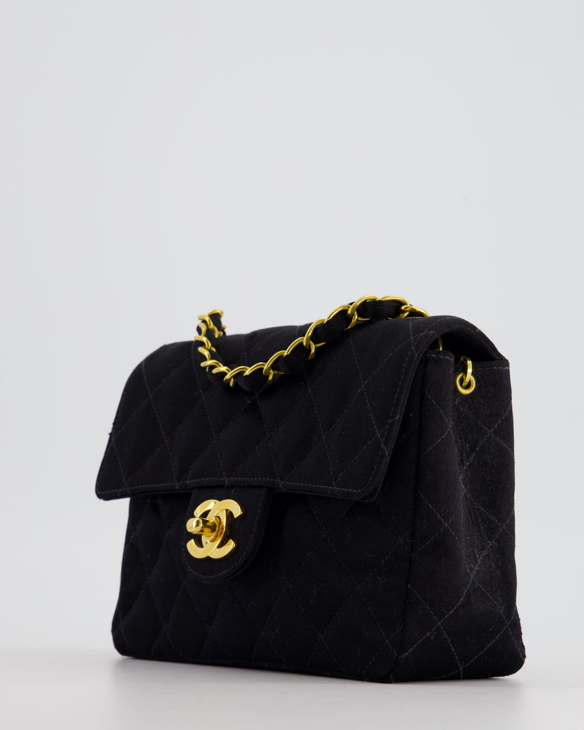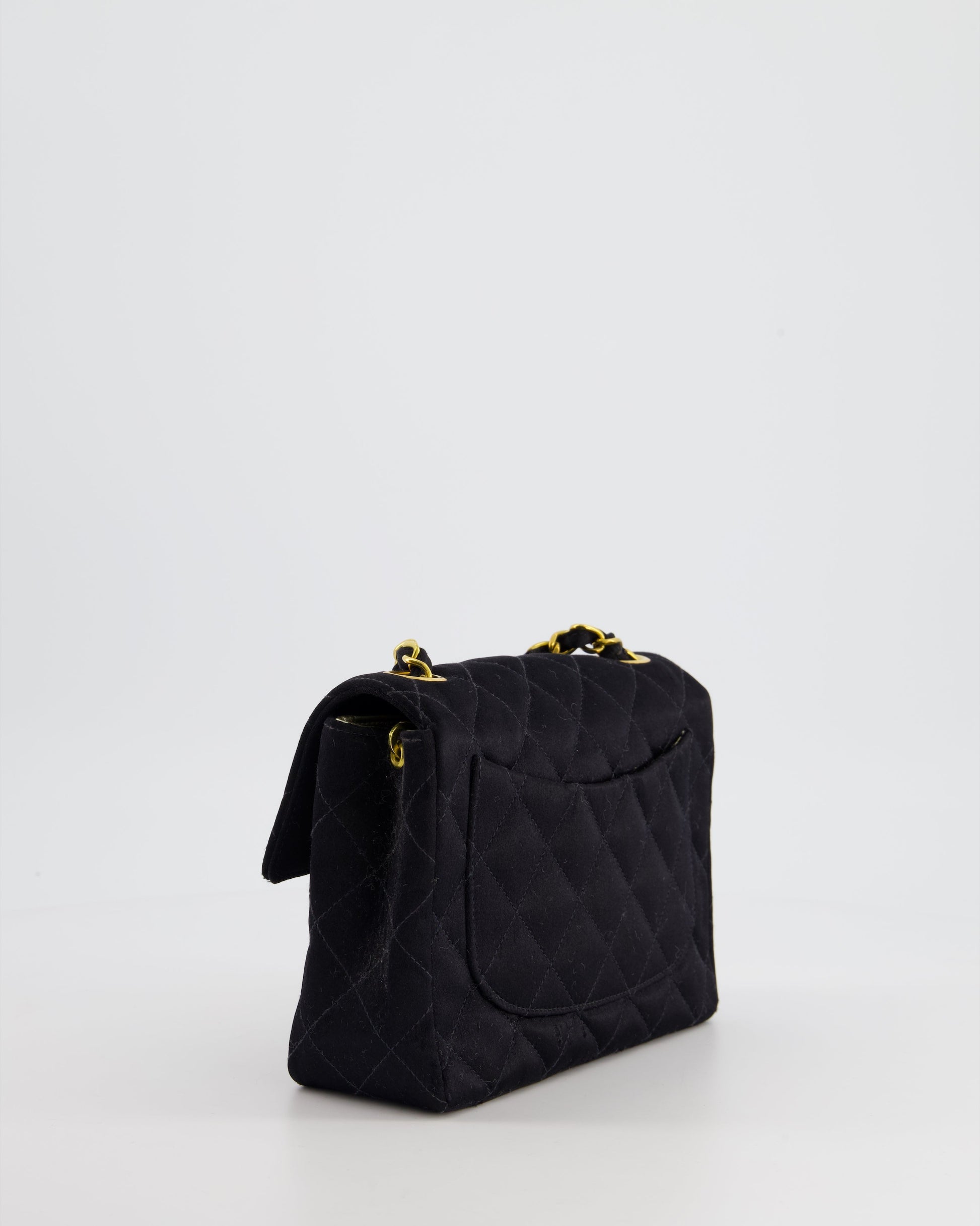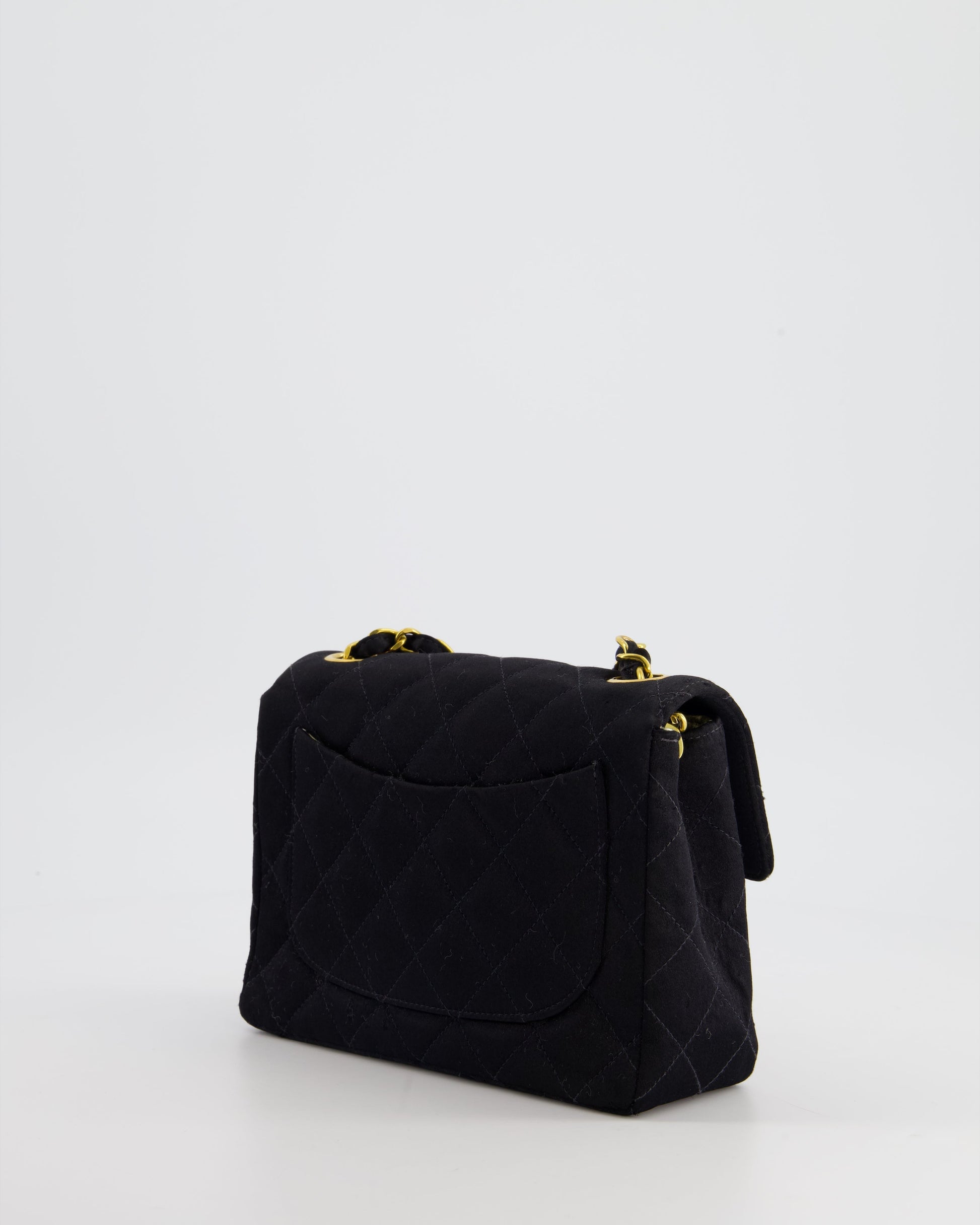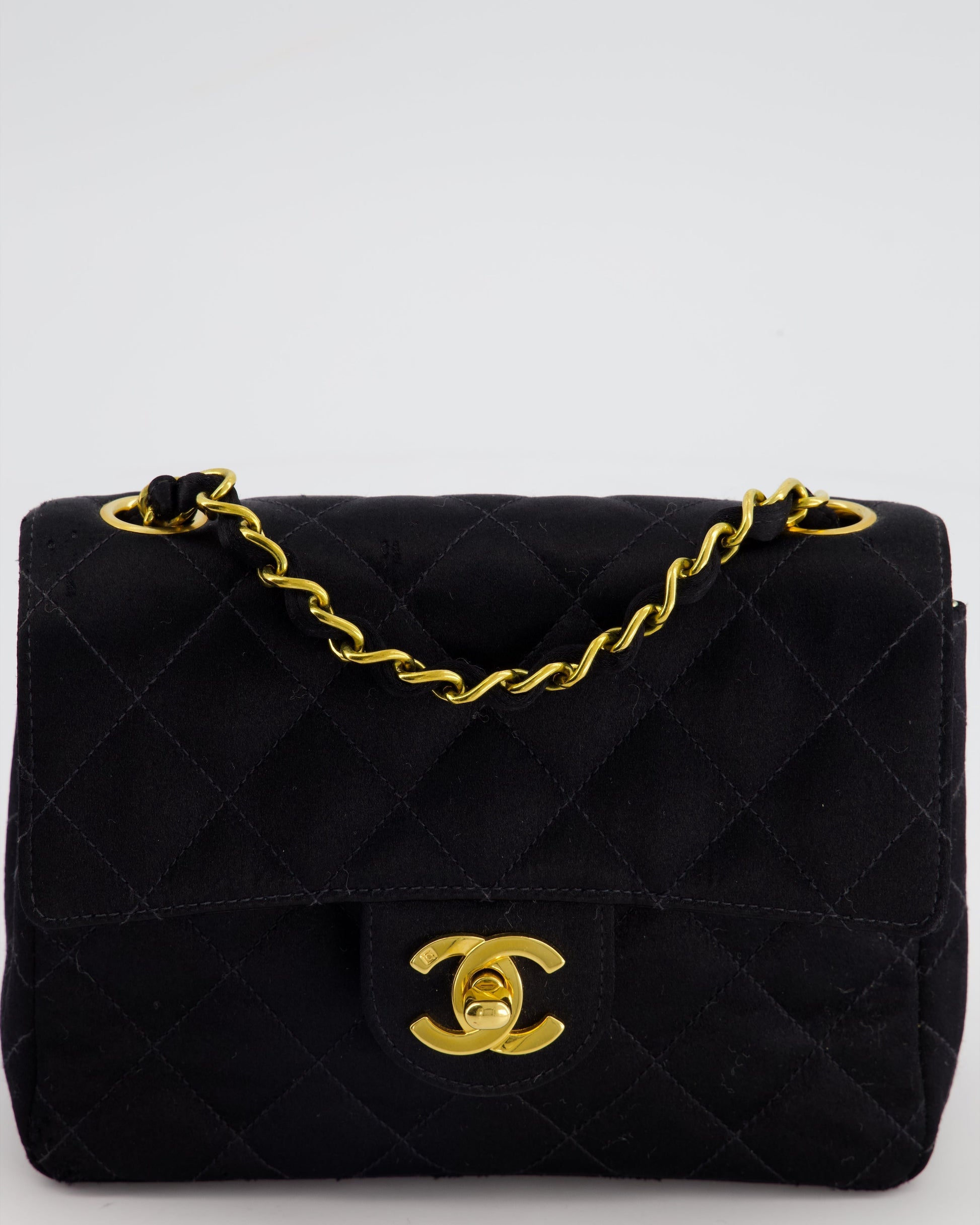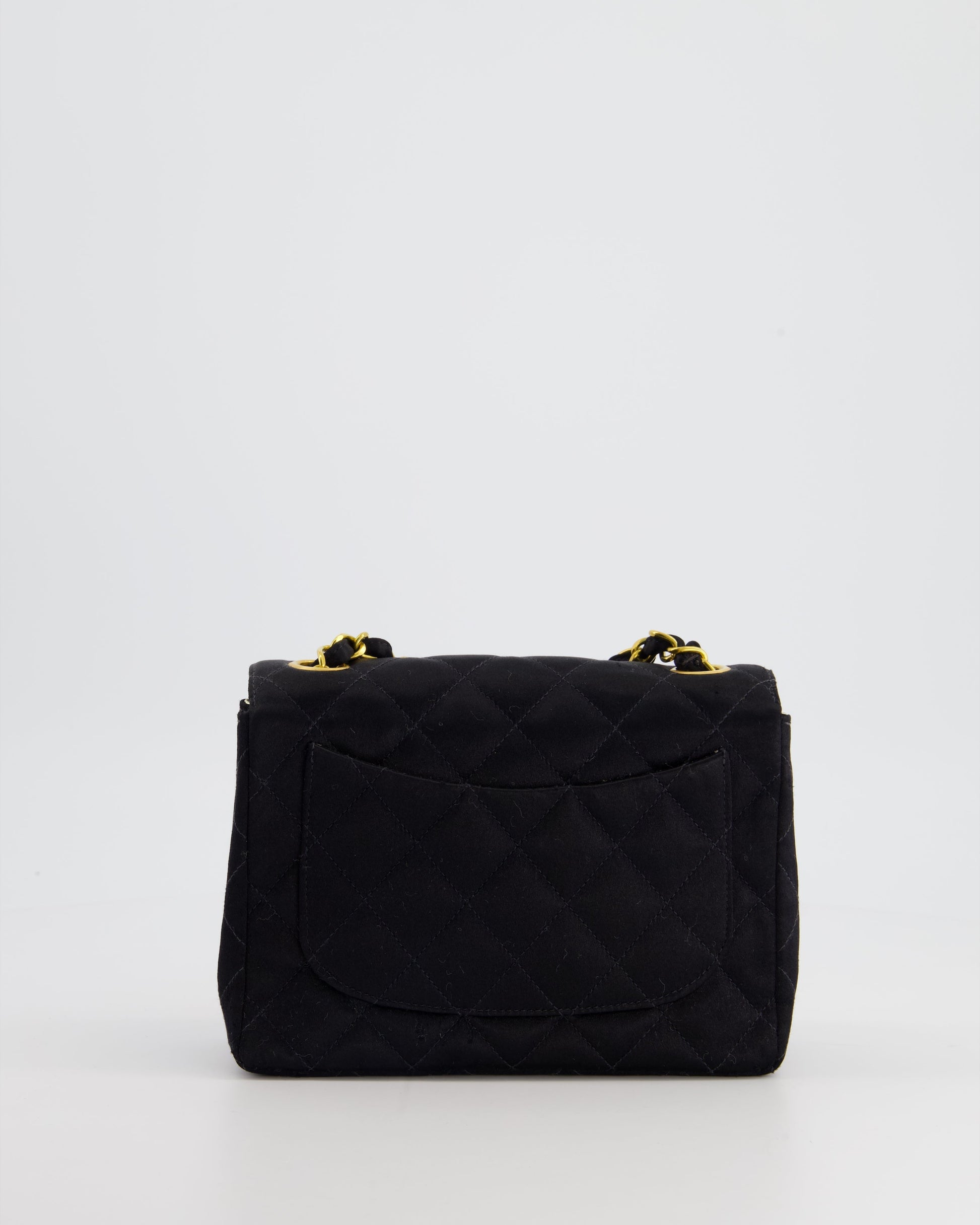 Chanel Vintage Satin Black Mini Square Flap Bag with 24K Gold Hardware