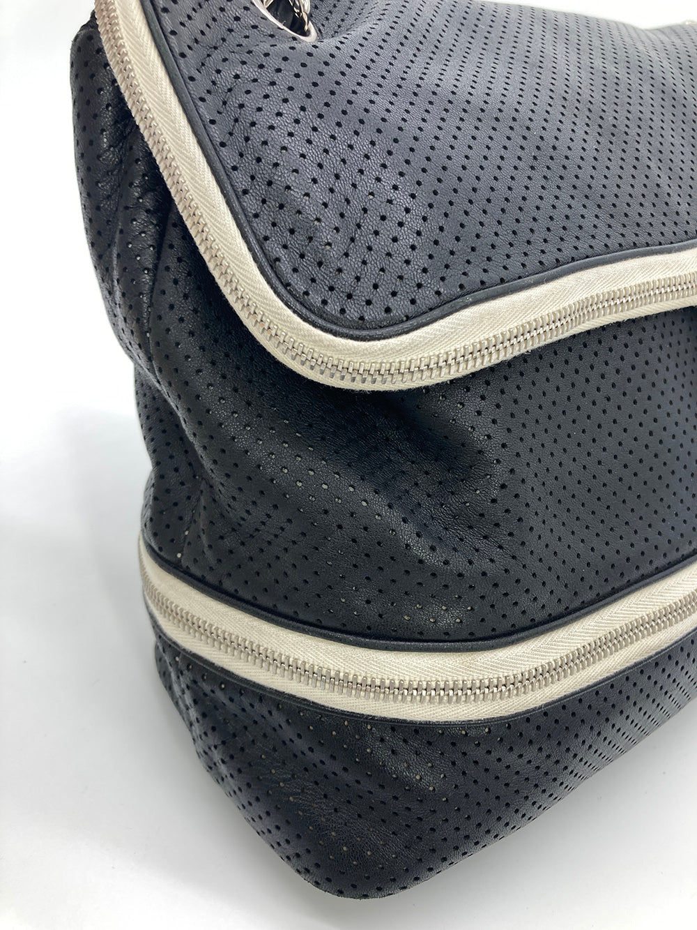 Chanel Black Perforated Leather Expandable Classic Flap Shoulder Bag