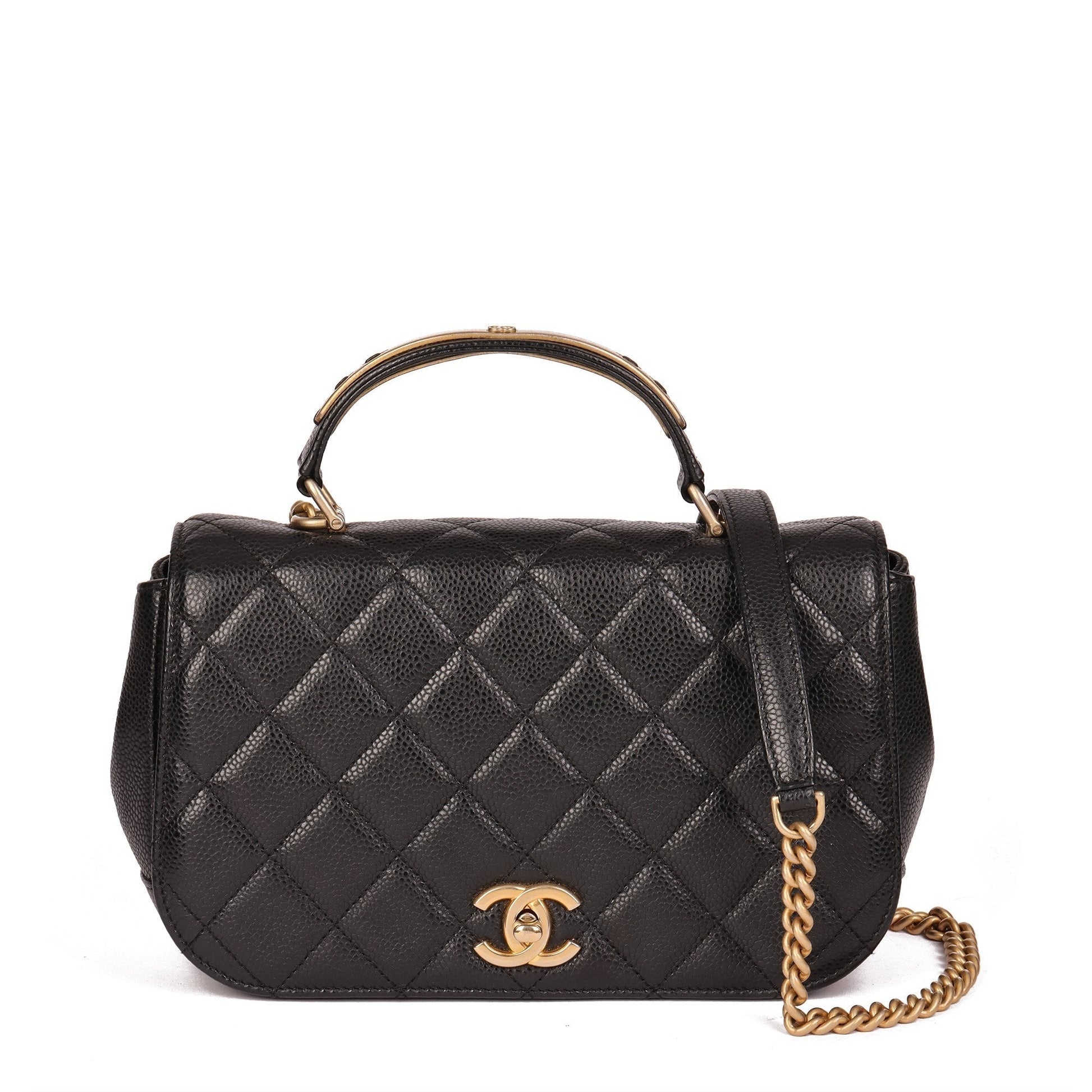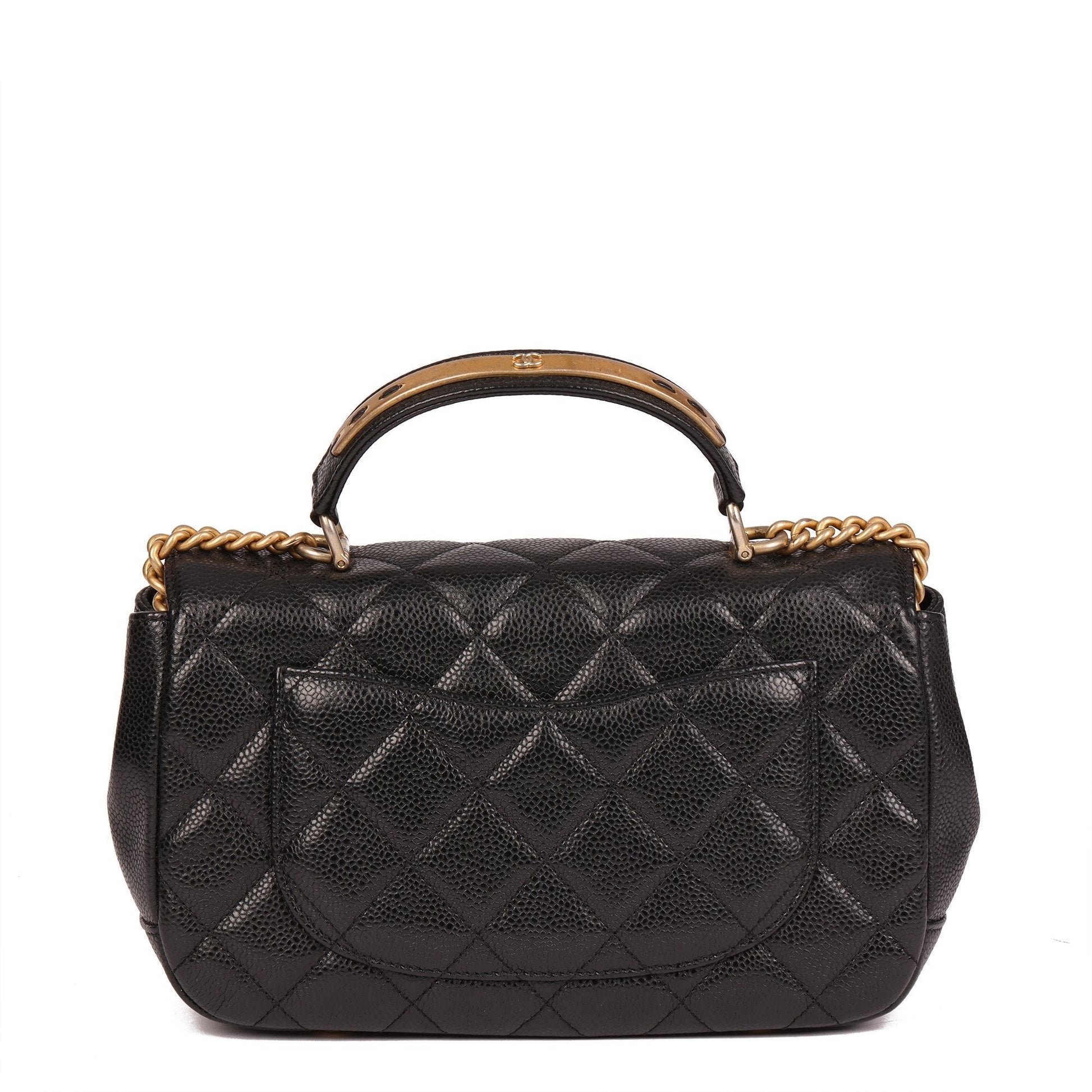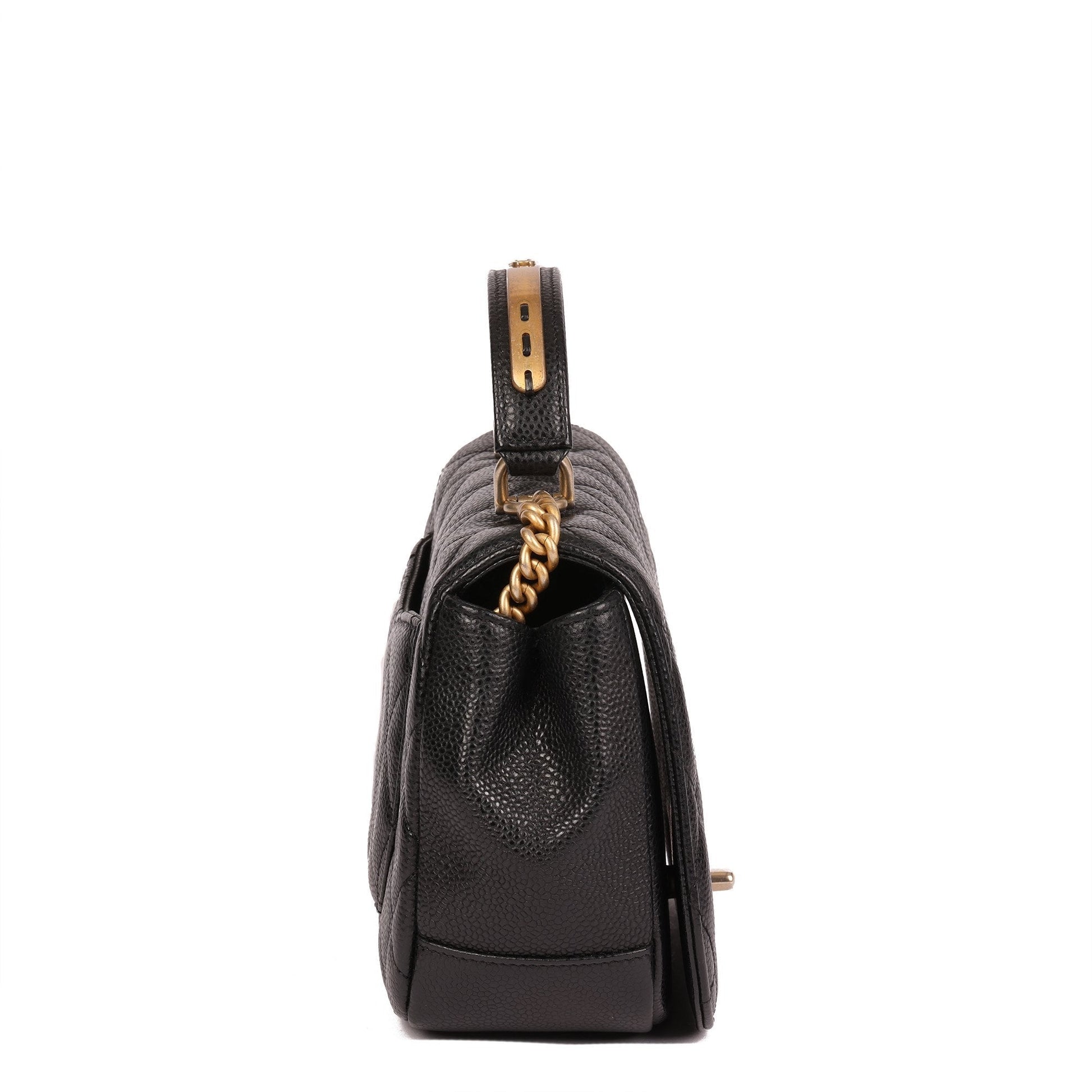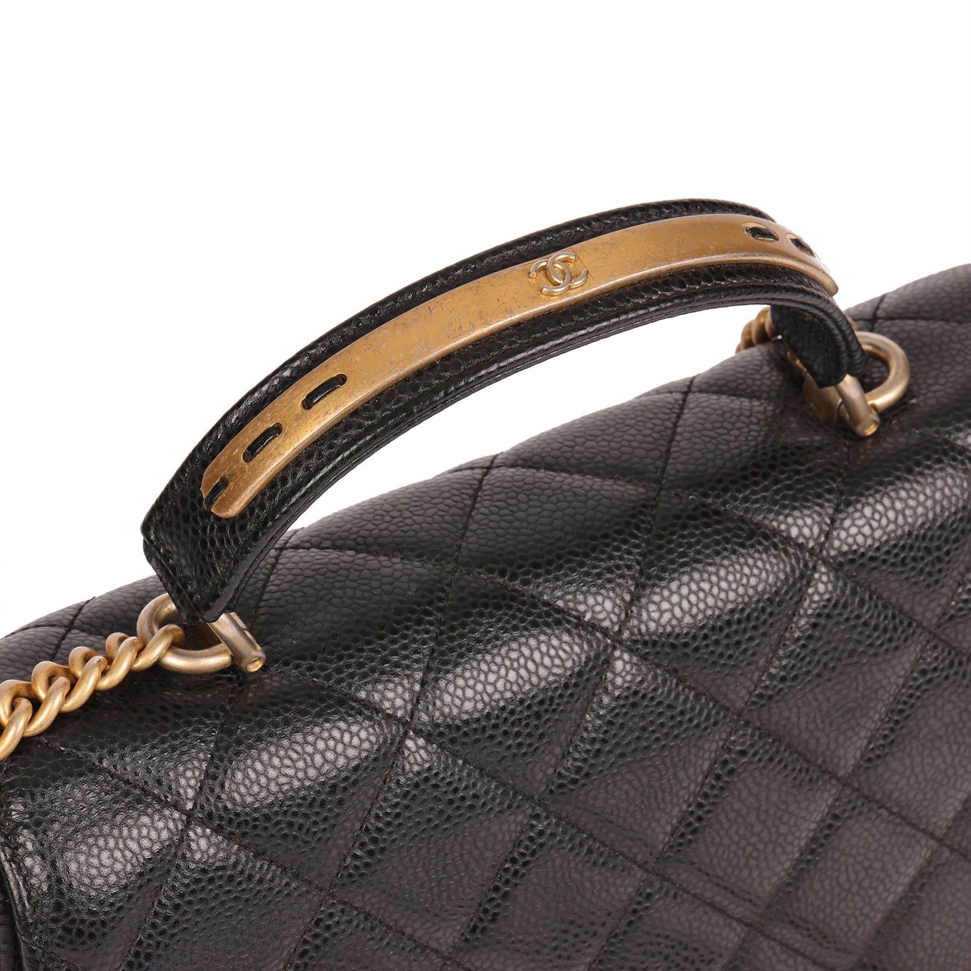 Chanel Black Quilted Caviar Leather Medium Classic Top Handle Flap Bag