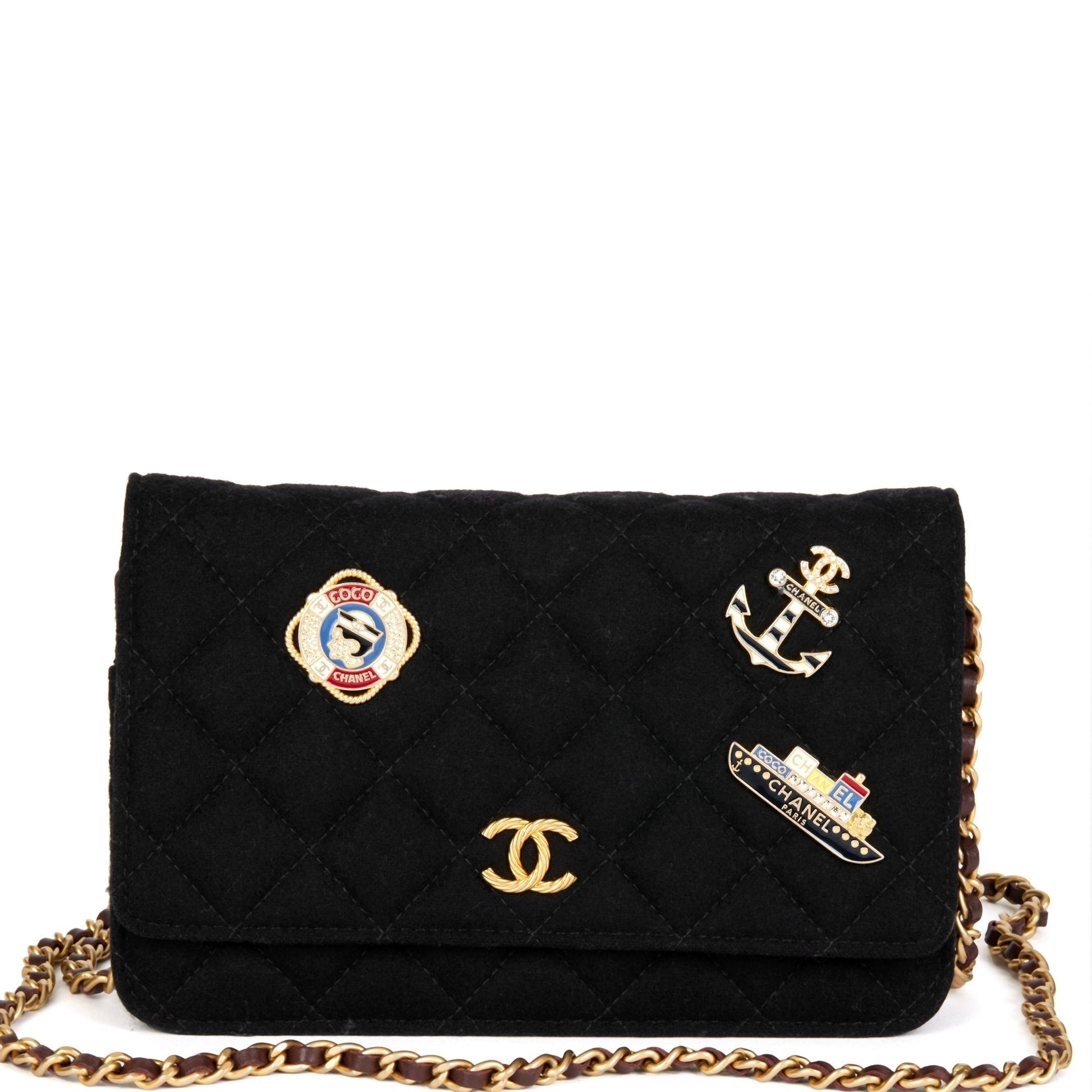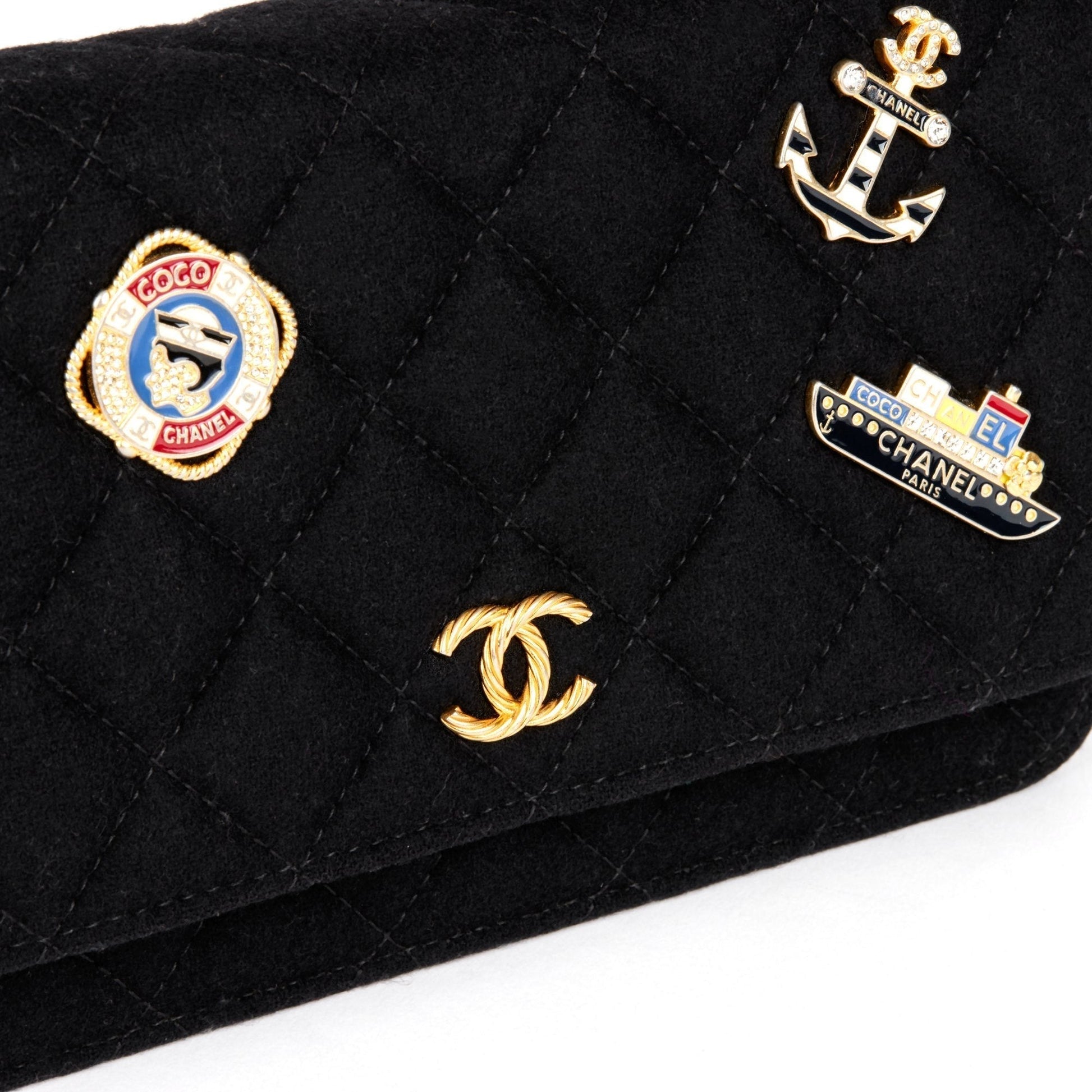Chanel Black Quilted Felt Cruise Charms Wallet-on-Chain WOC Shoulder Bag