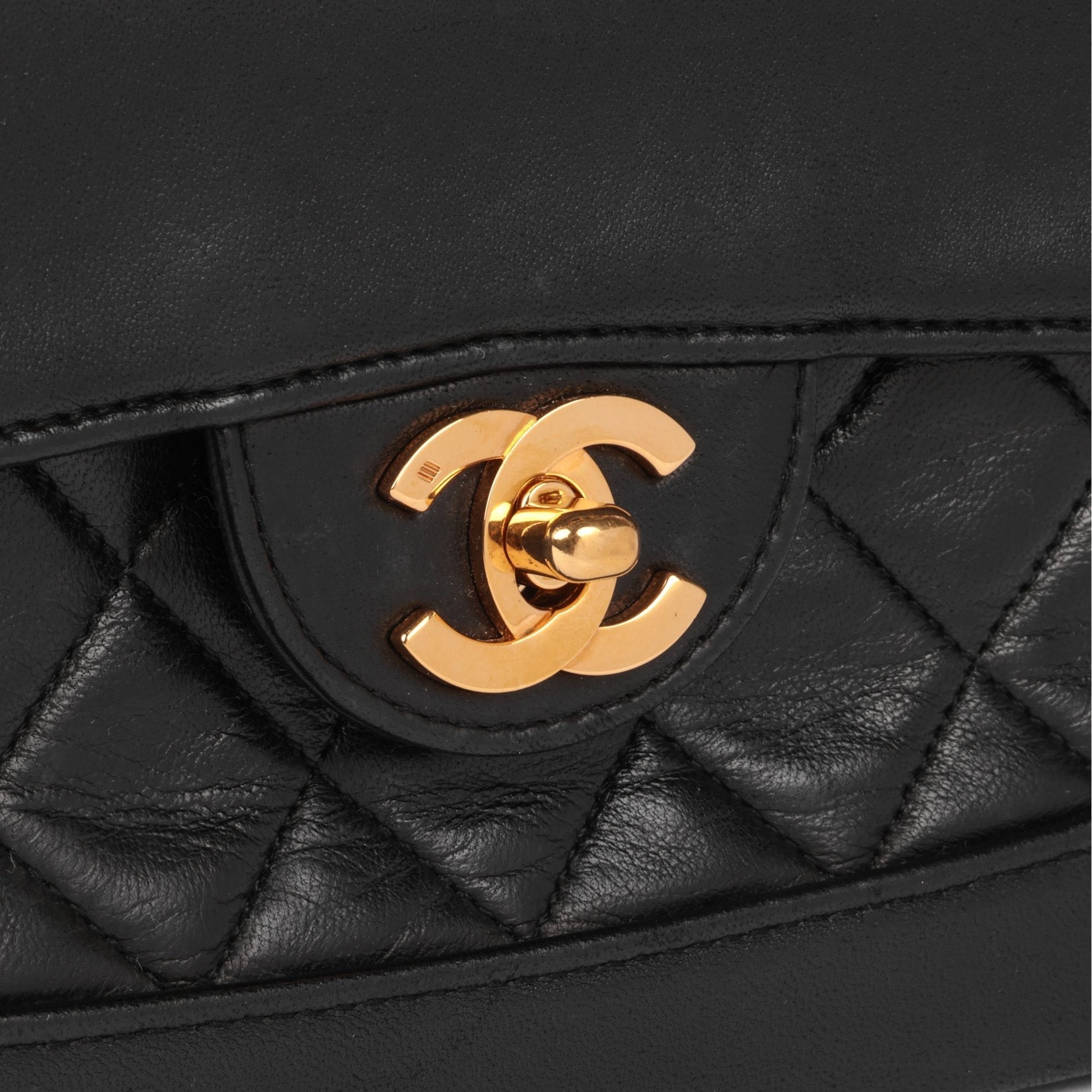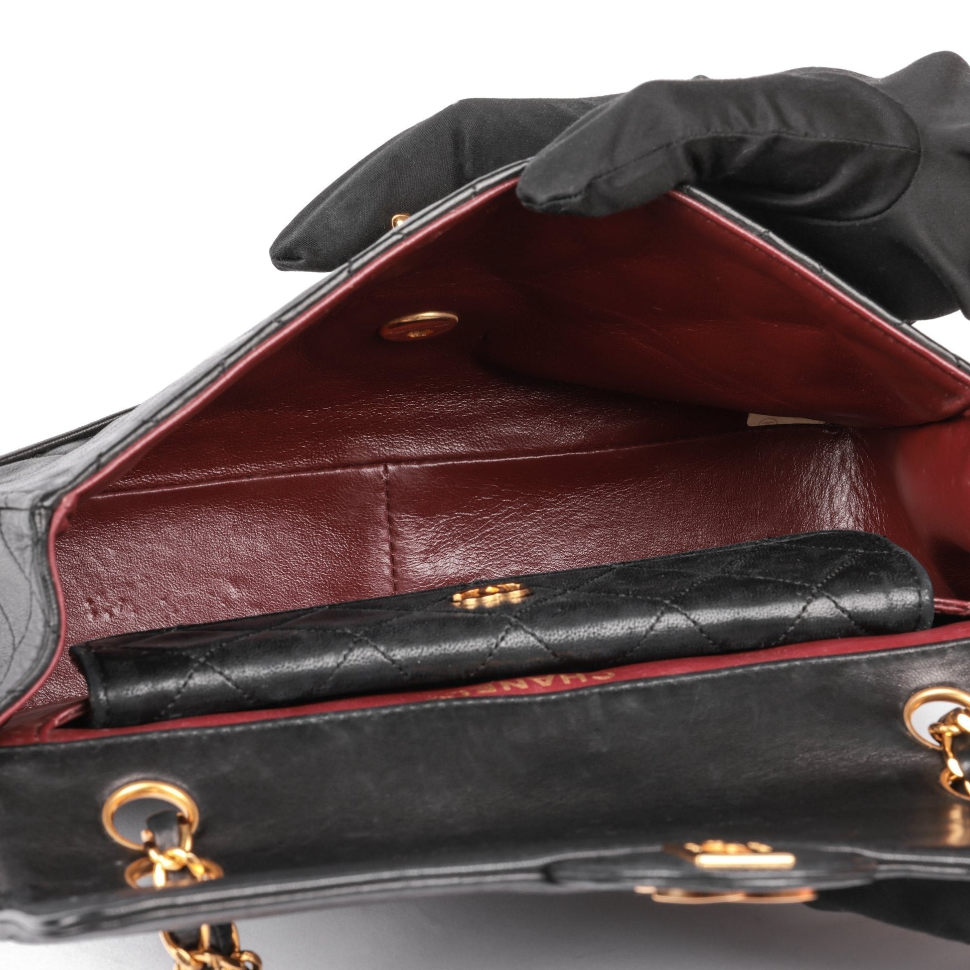 Chanel Black Quilted Lambskin Vintage Medium Classic Single Flap Bag with Wallet Shoulder Bag