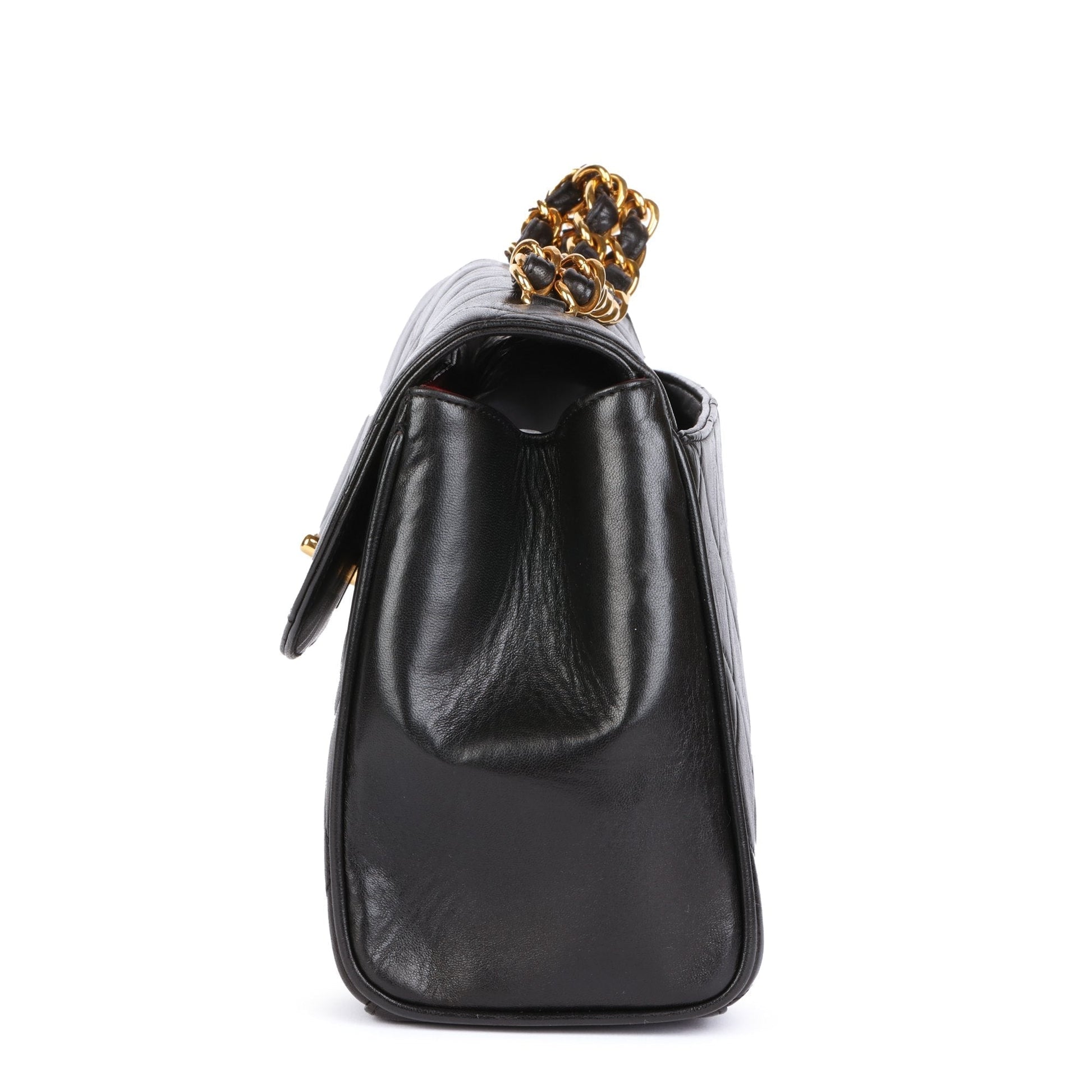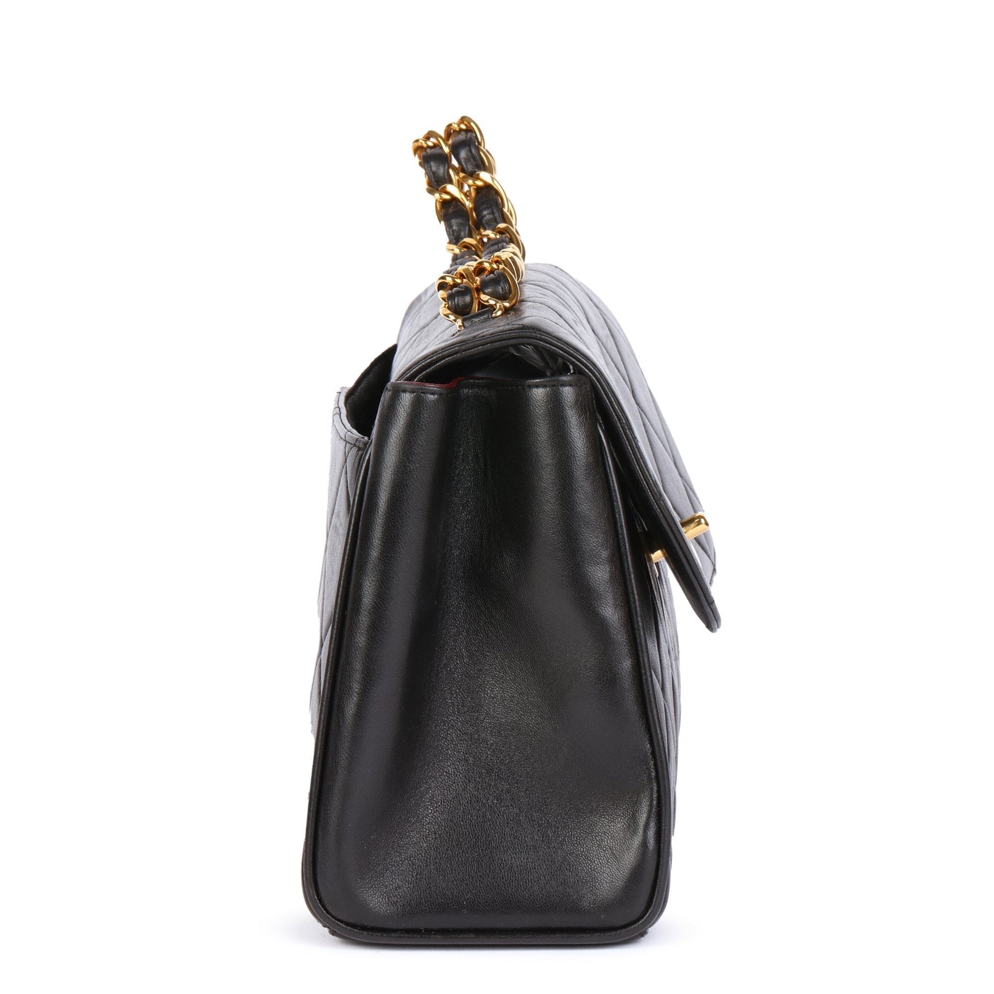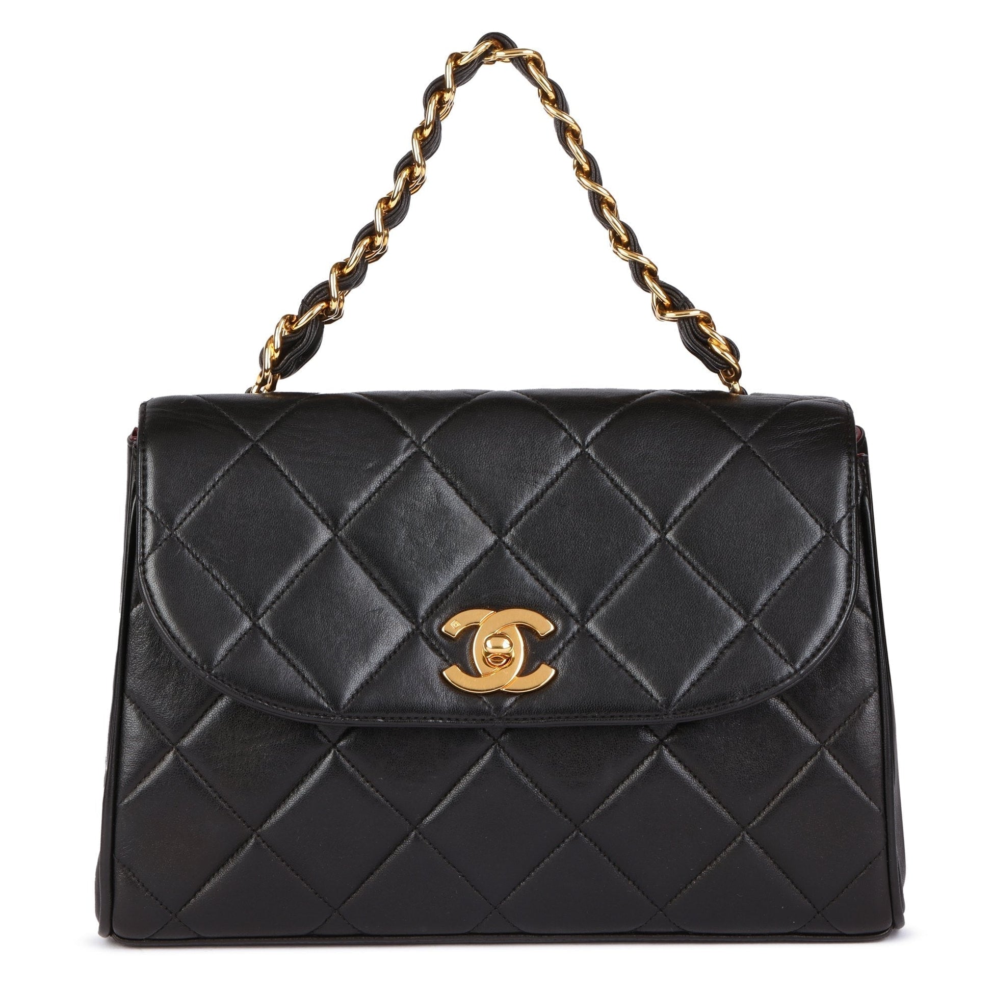 Chanel Black Quilted Lambskin Vintage Medium Top Handle Classic Single Flap Bag Top Handle Bag