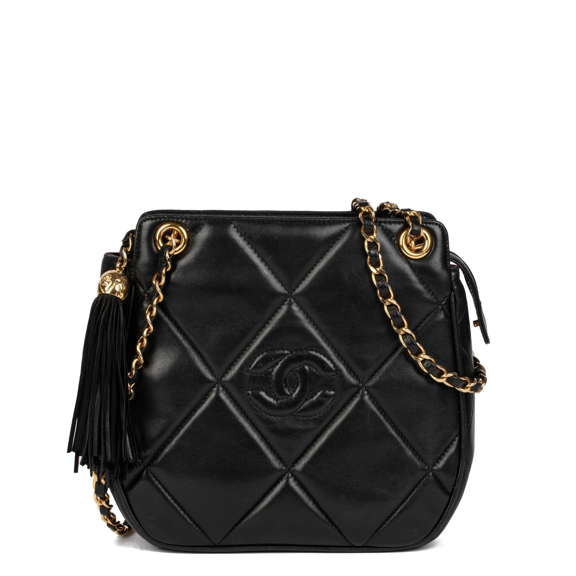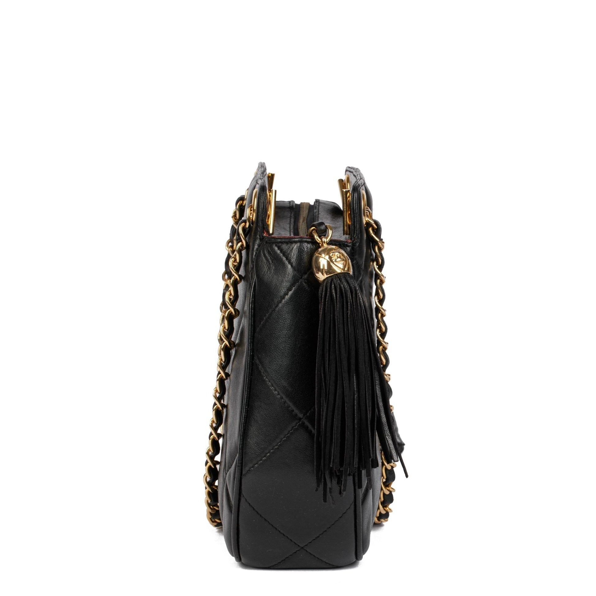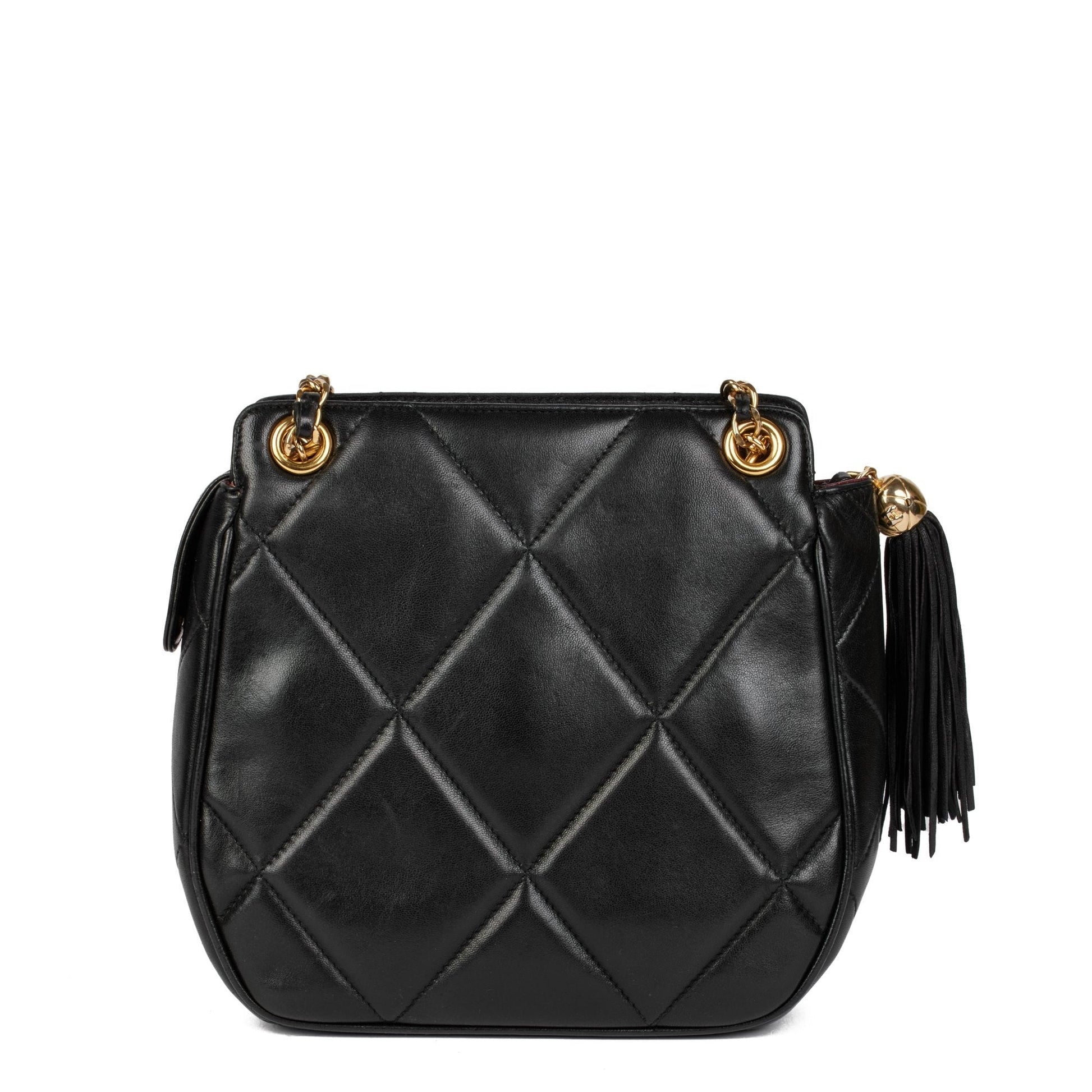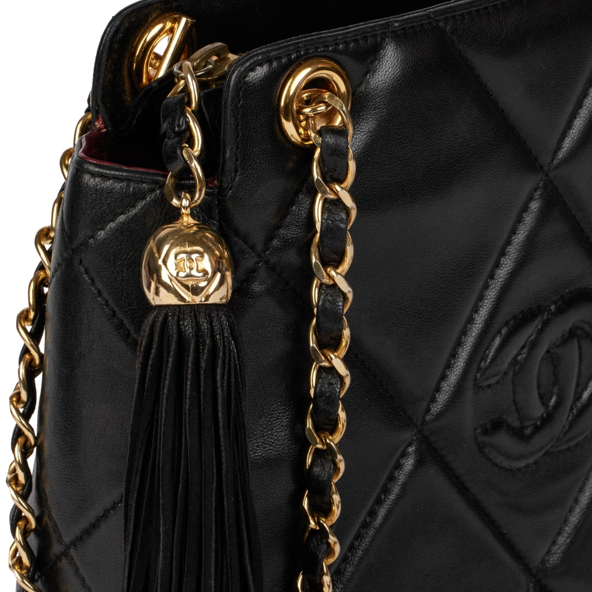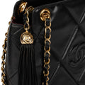 Chanel Black Quilted Lambskin Vintage Timeless Fringe Shoulder Bag