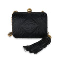 Chanel Black Quilted Satin CC Tassel Box Clutch