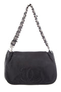Chanel Black Rock and Chain Shoulder Bag. This item is gently loved; tear in leather on bottom corner.