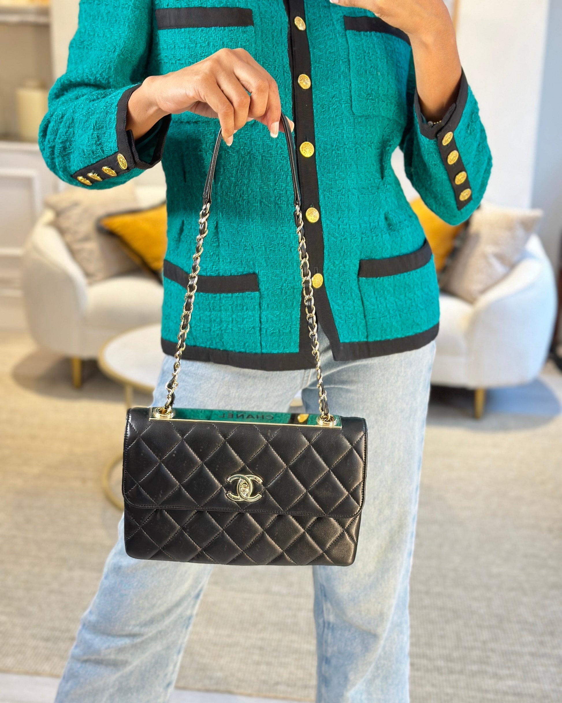 Chanel Black Trendy CC Shoulder Bag in Lambskin Leather with Champagne Gold Hardware