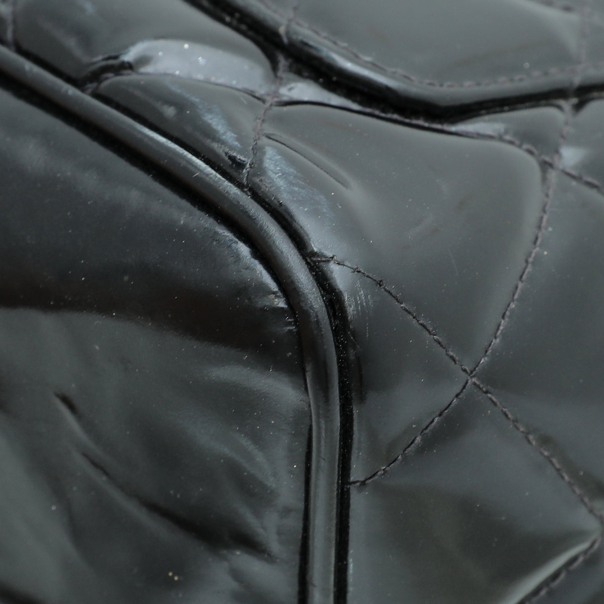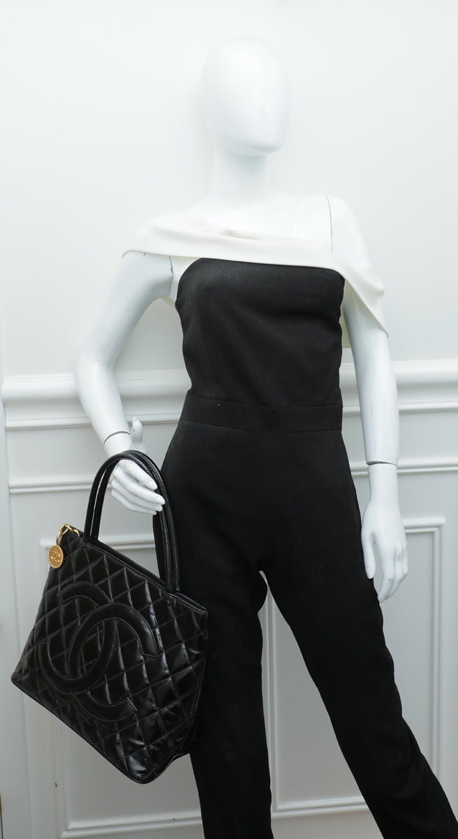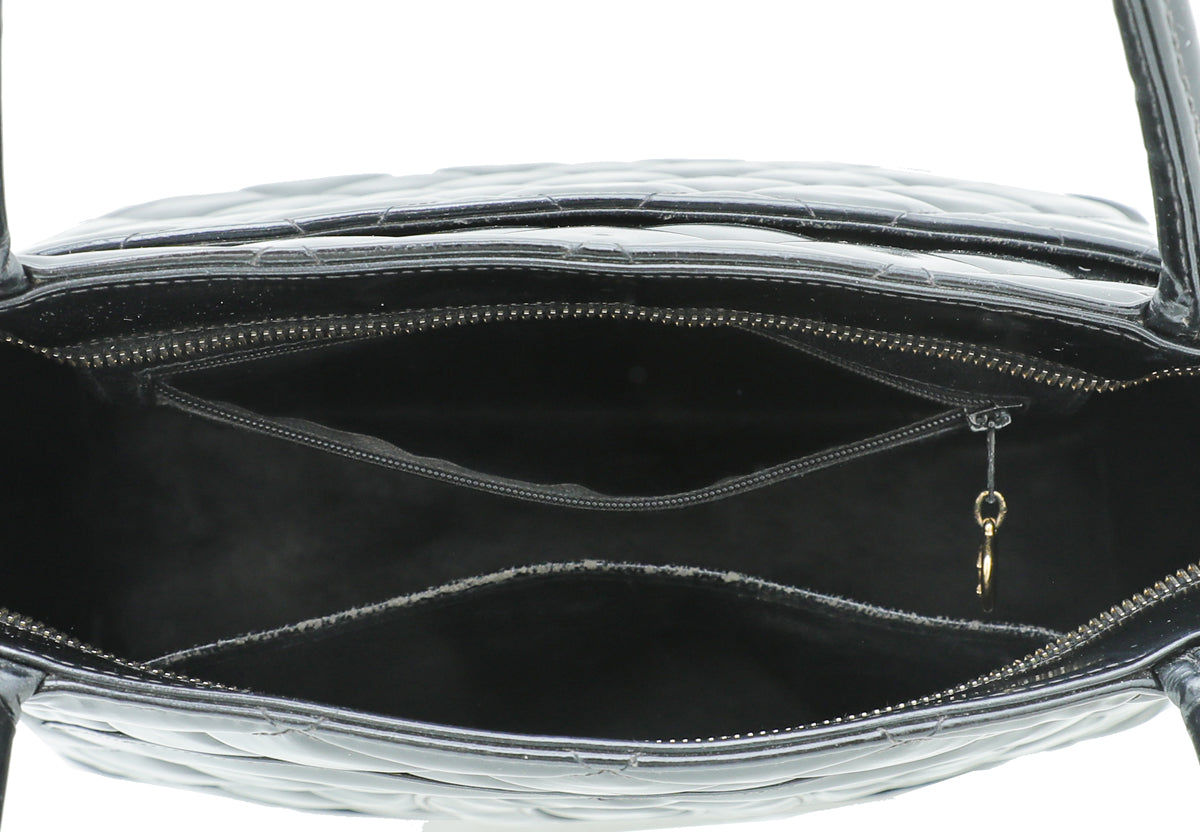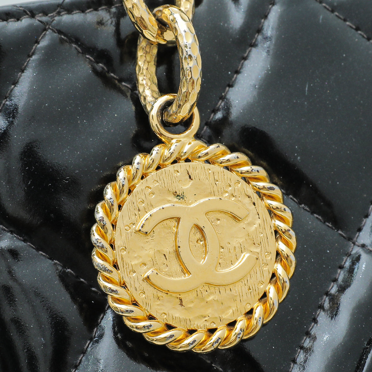 - Material: Black Quilted Patent Leather with CC Logo