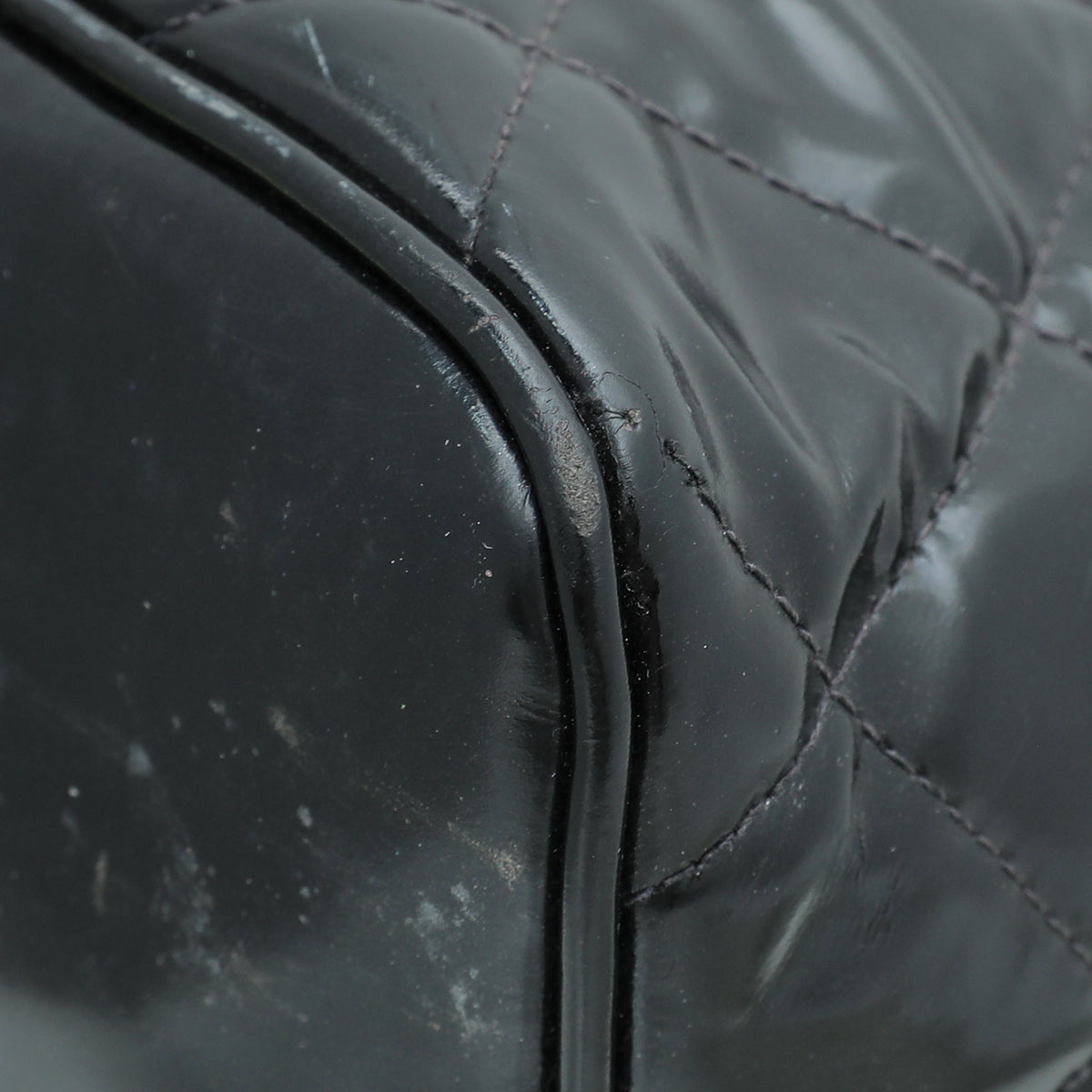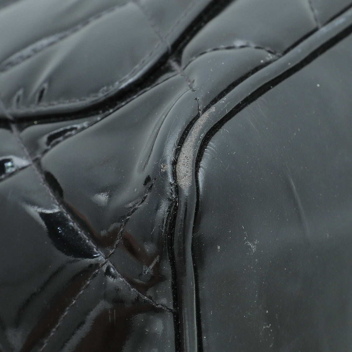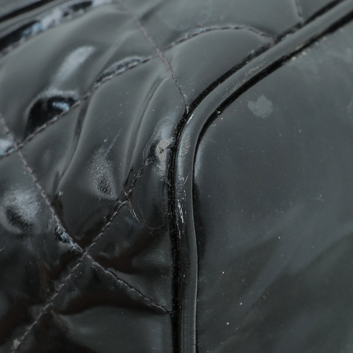 - Material: Black Quilted Patent Leather with CC Logo