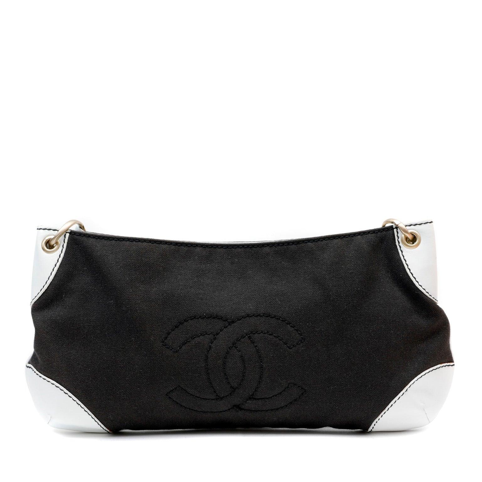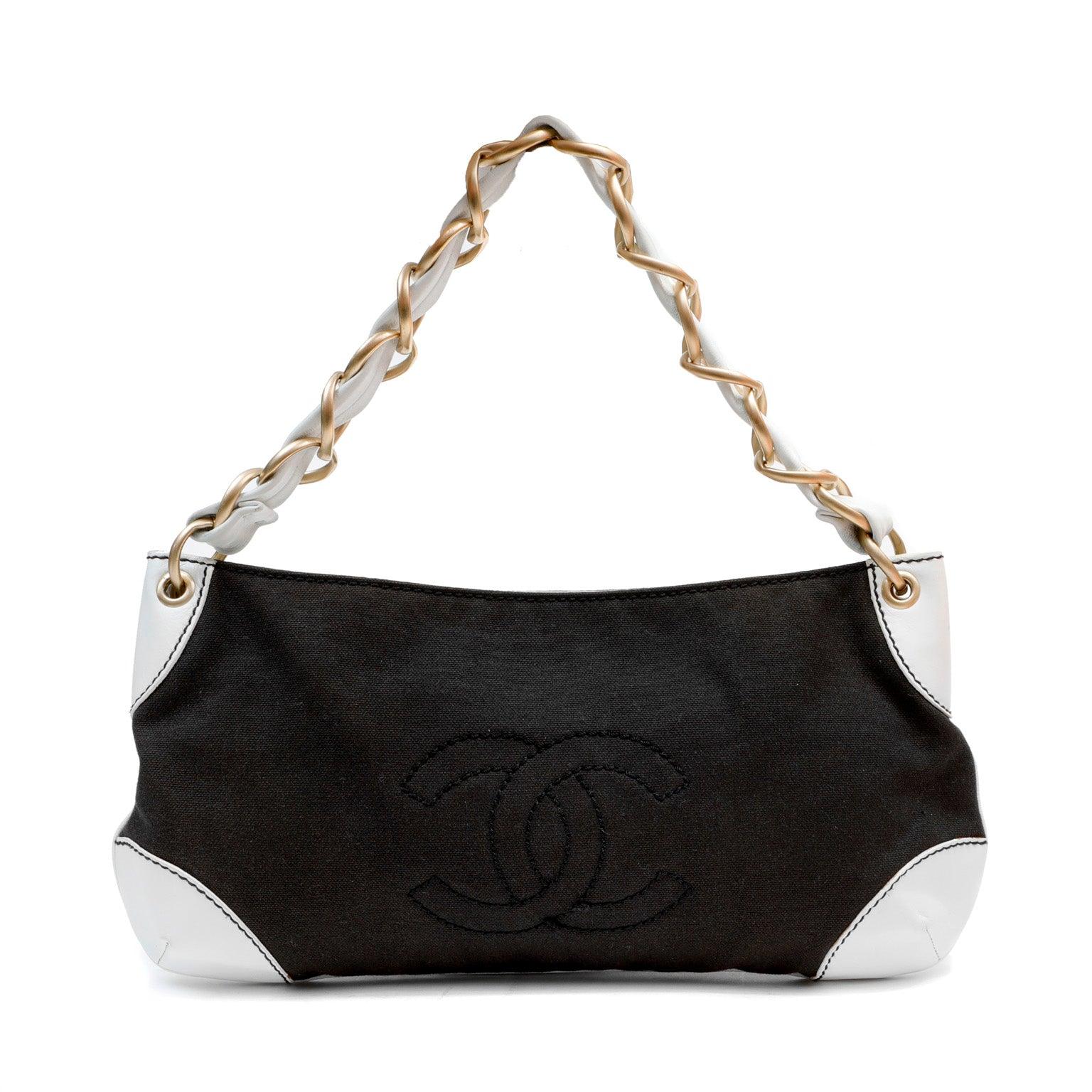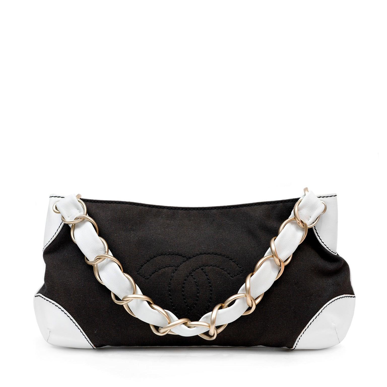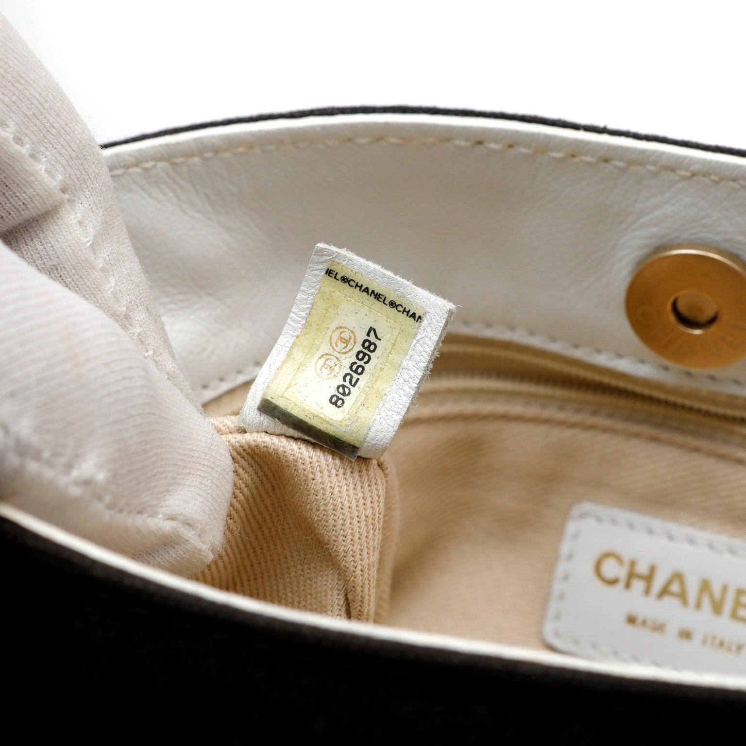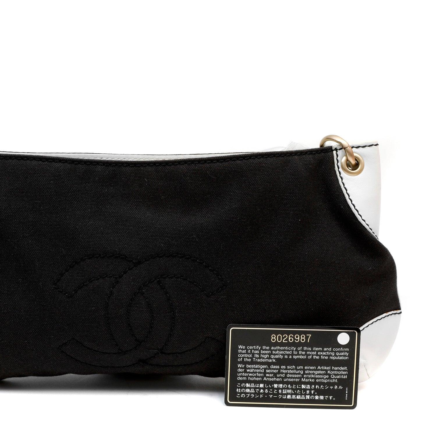 Chanel Black & White Canvas Olsen Shoulder Bag w/ Gold Hardware