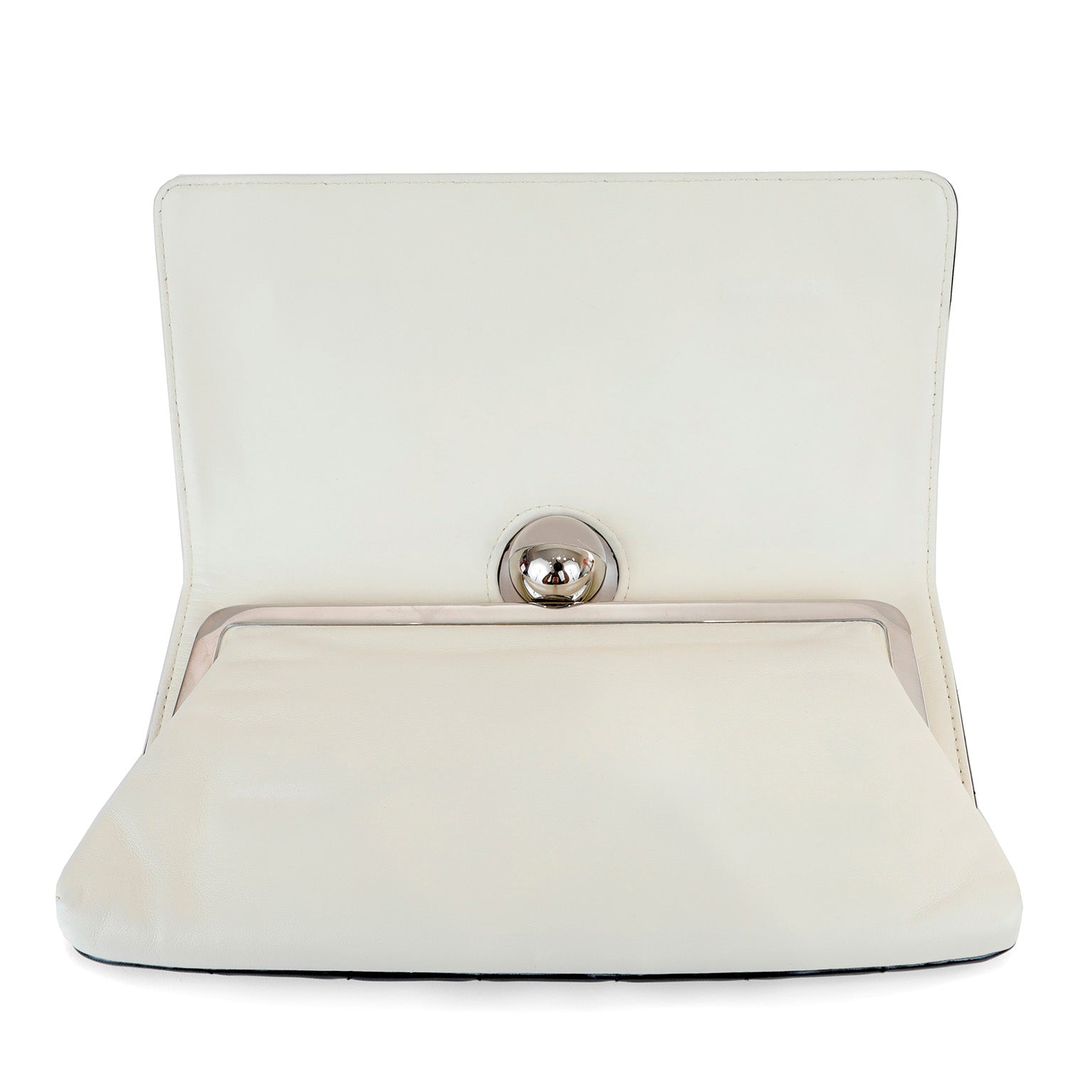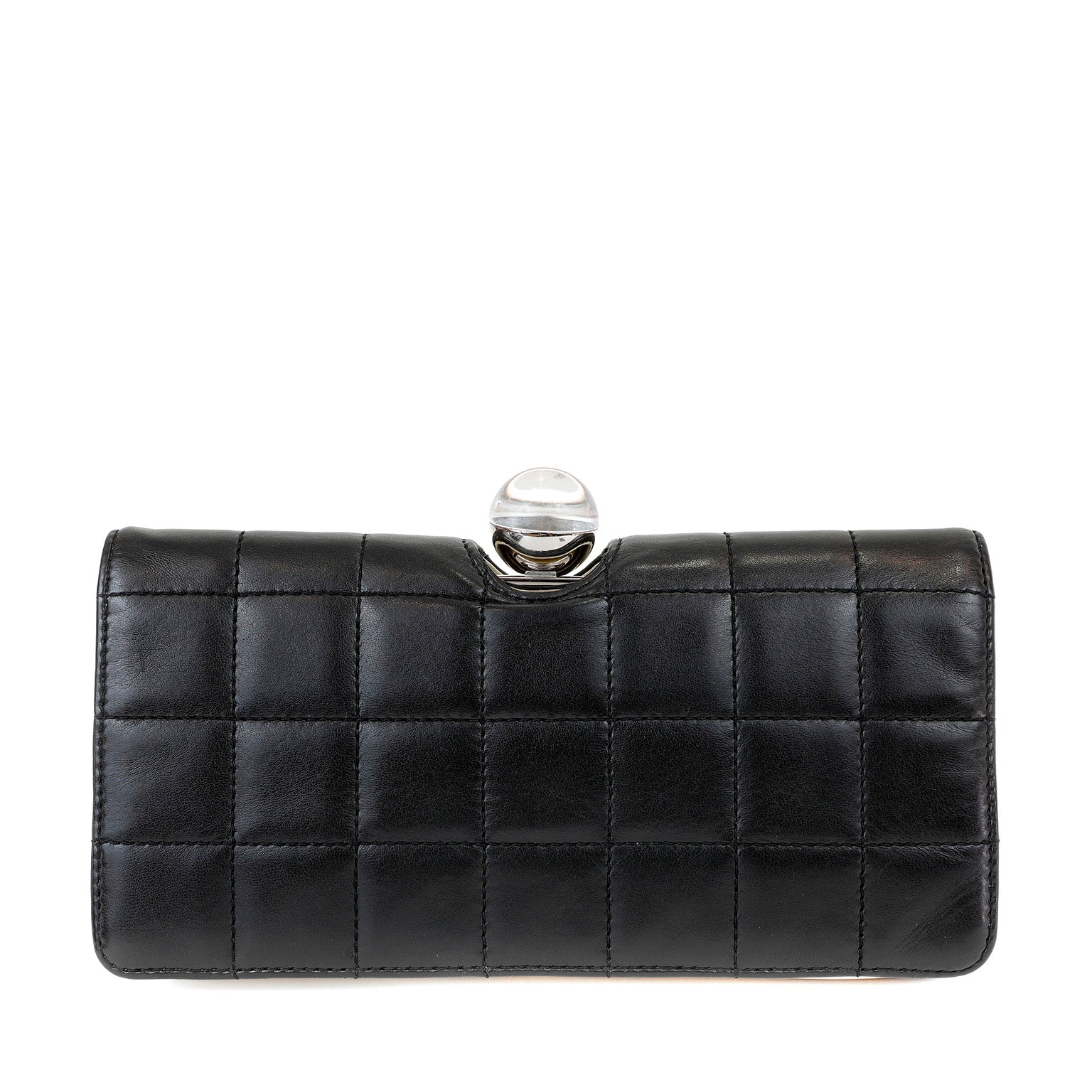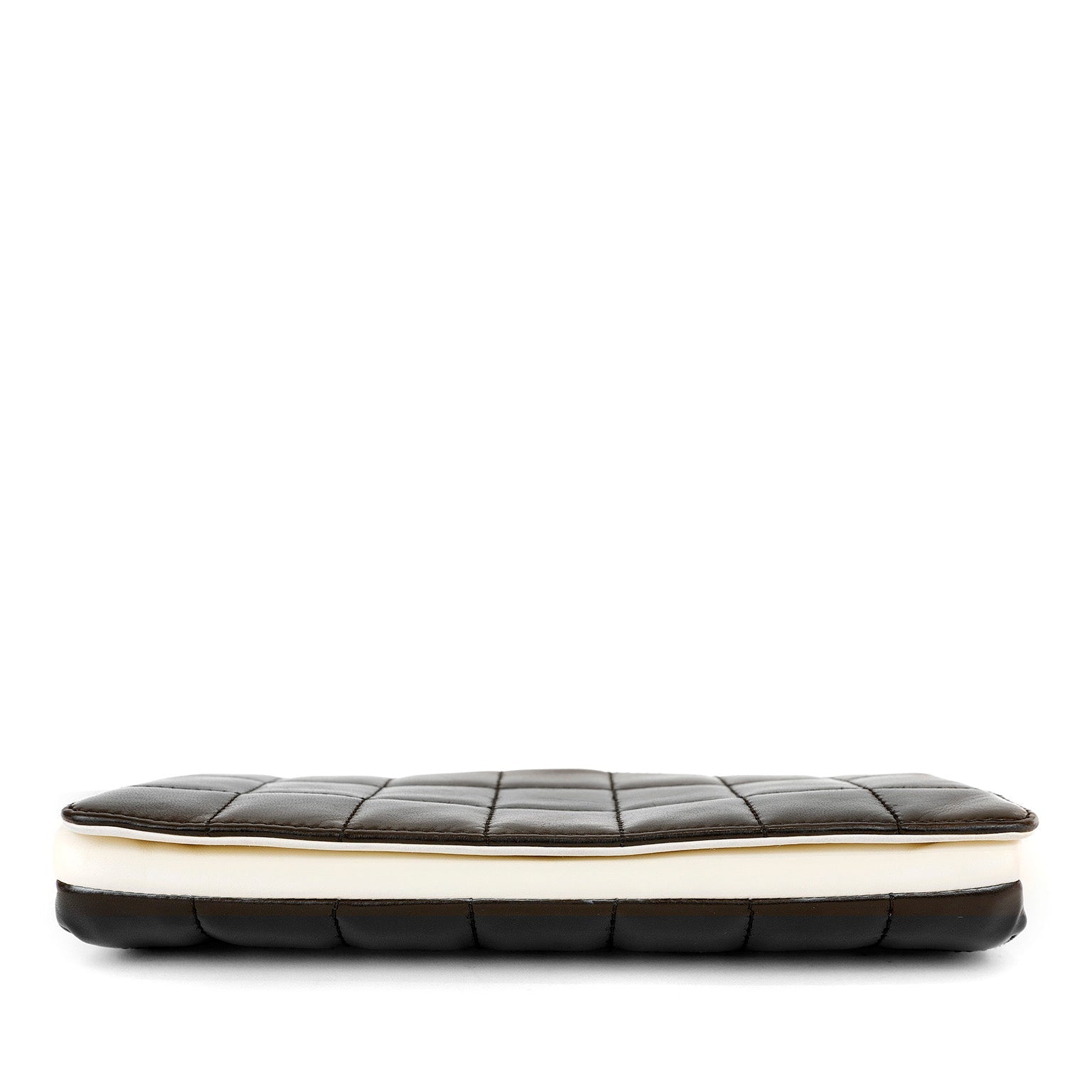 Chanel Black and White Lambskin Square Stitched Clutch with Lucite Knob