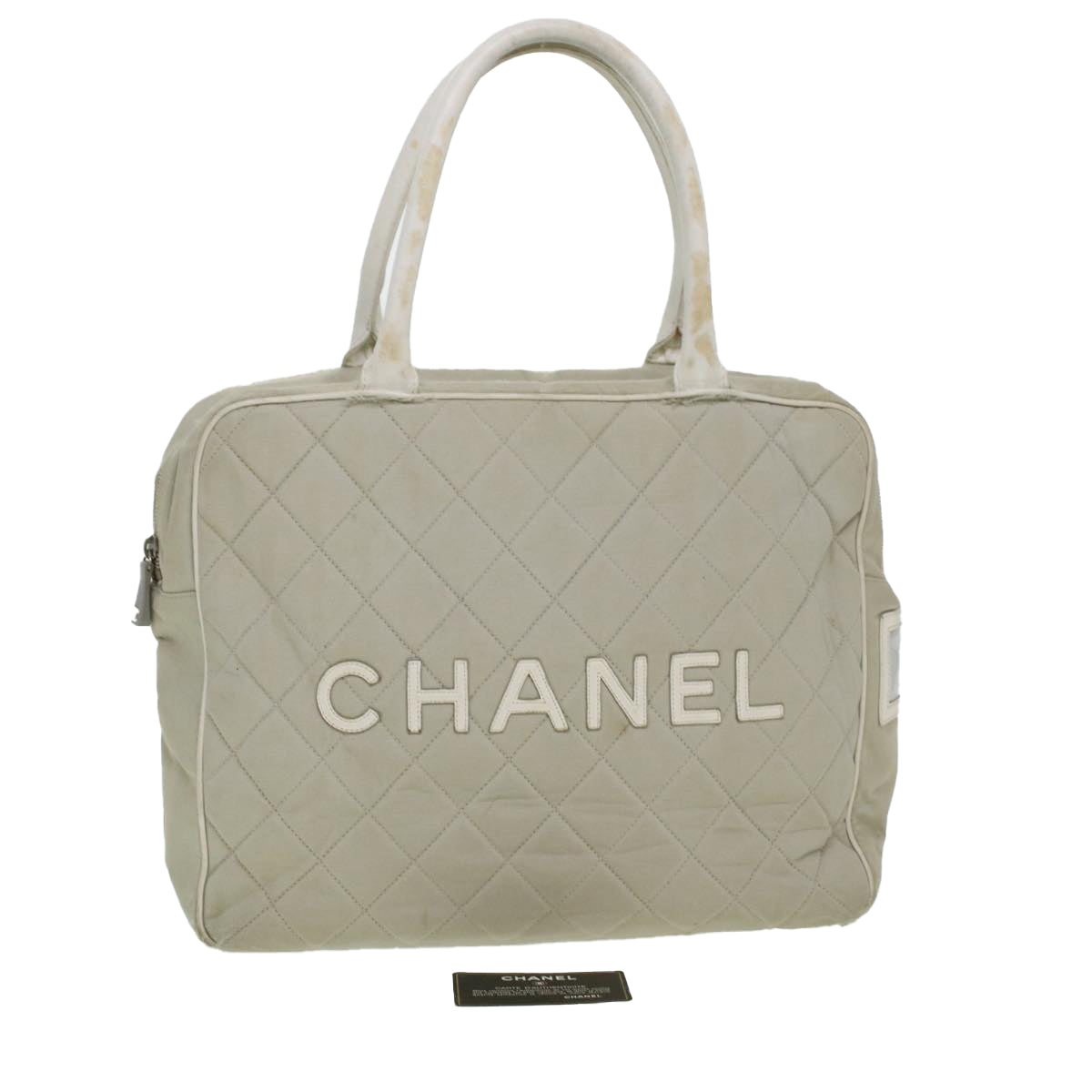 Chanel Boston Bag Canvas Gray CC Auth bs6078
