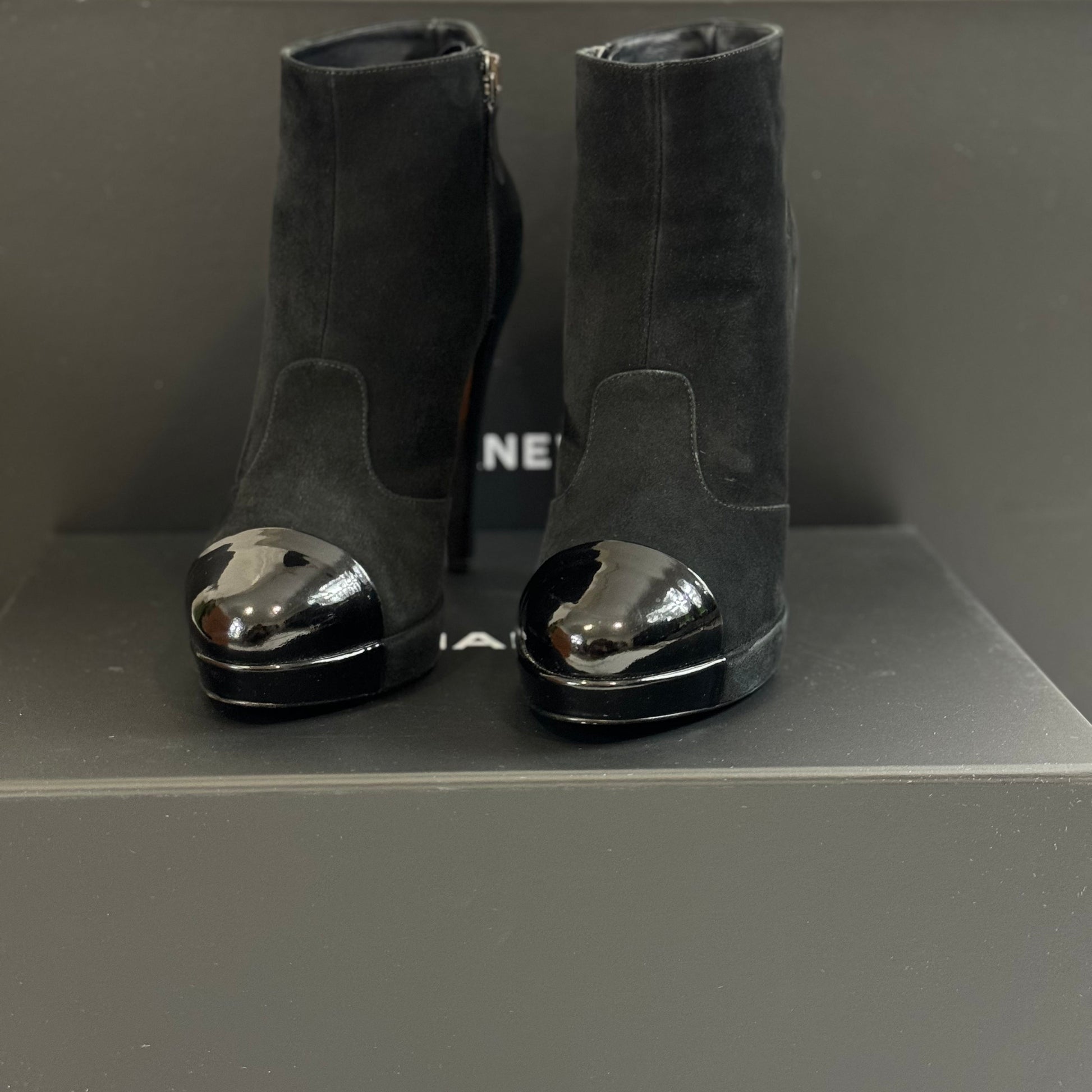 Ces bottines à talon Chanel incarnent l'élégance intemporelle et le raffinement caractéristiques de la maison.