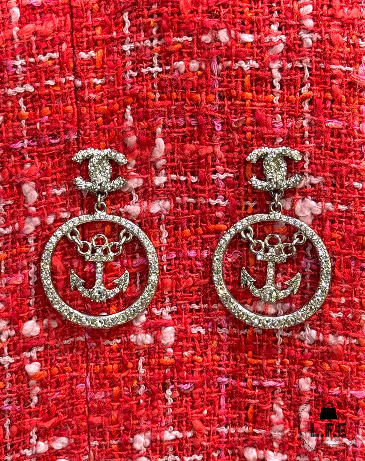 Boucles d’oreilles CC en métal argenté avec Swarovski.