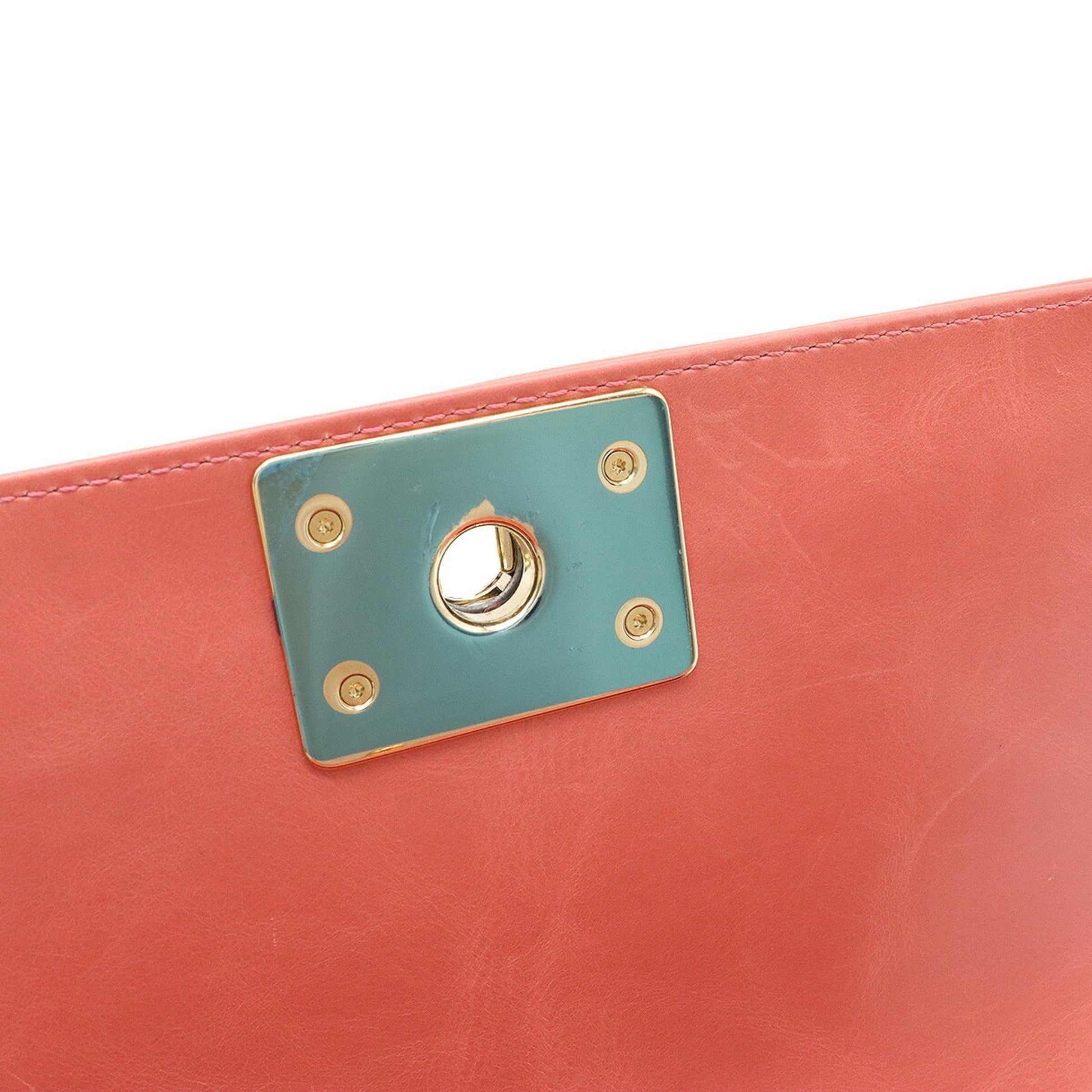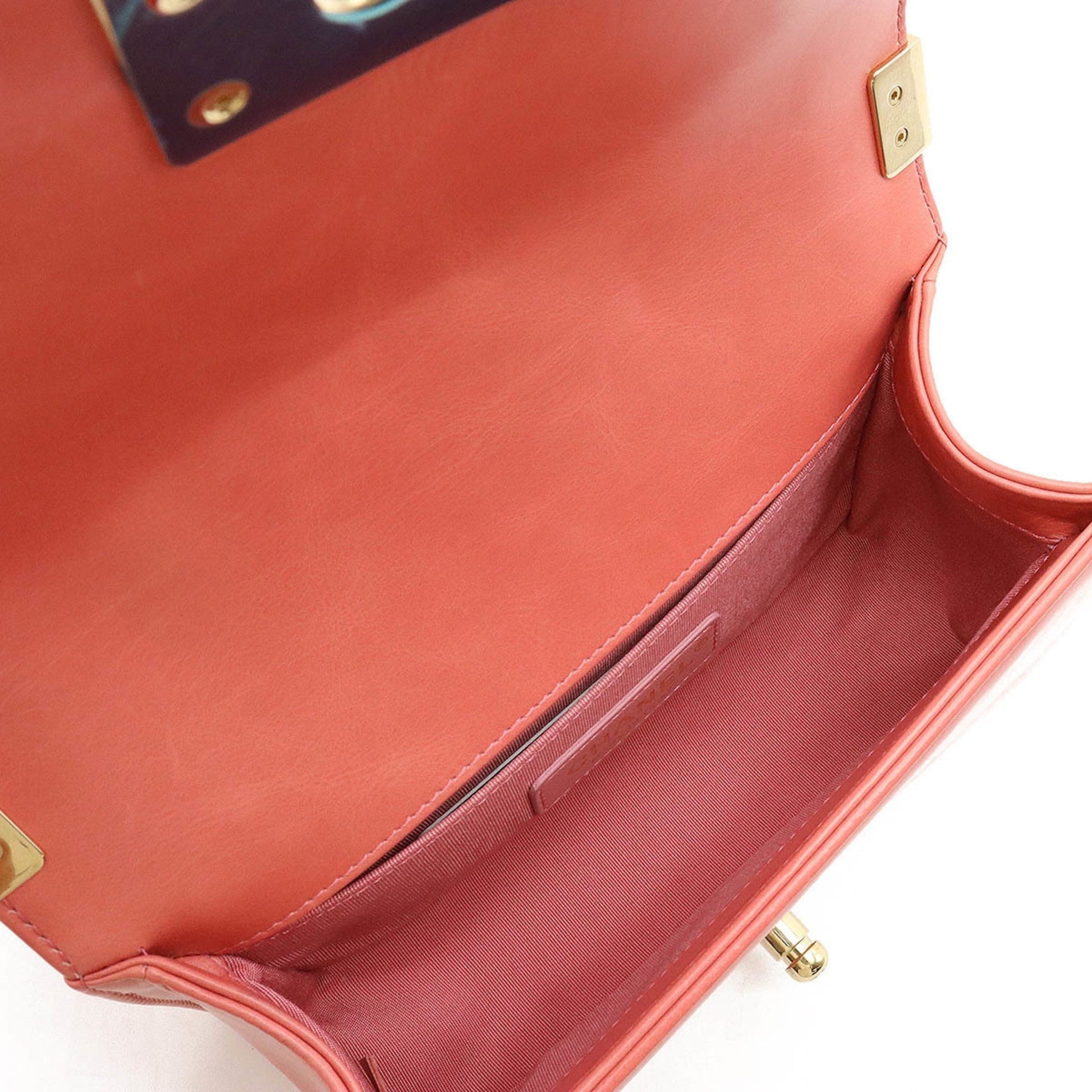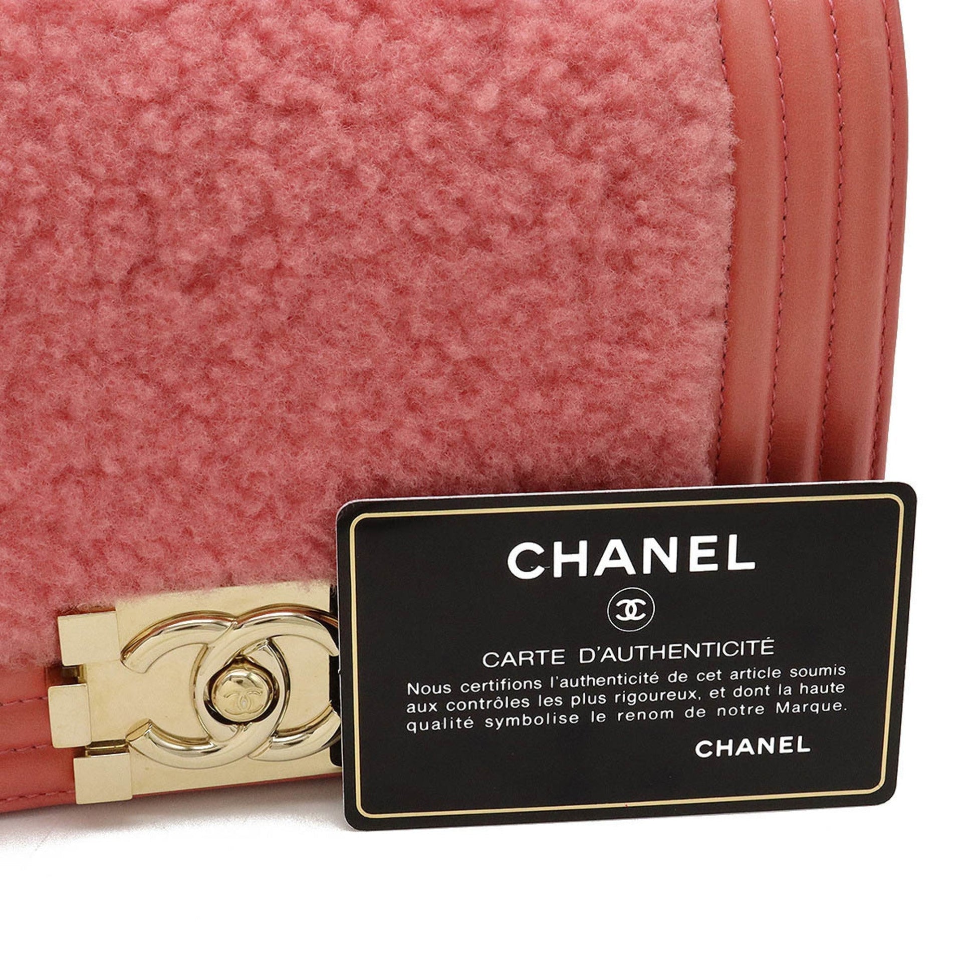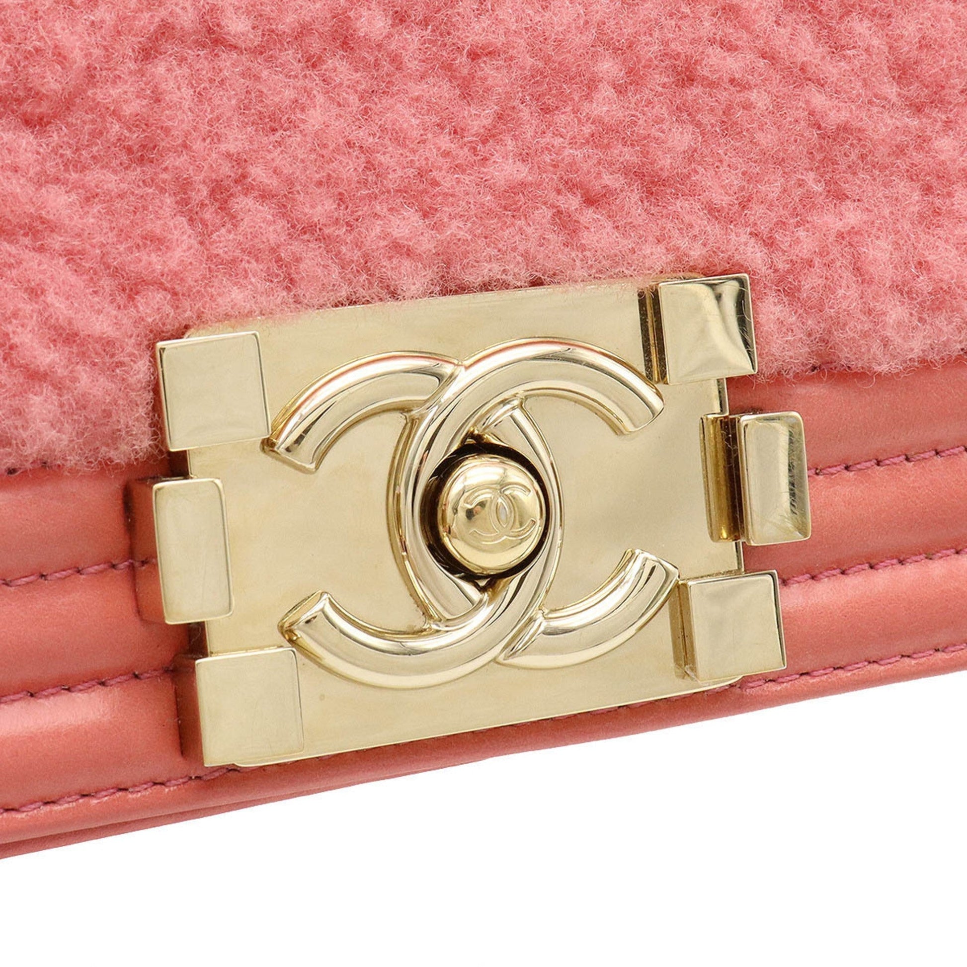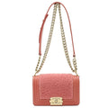 Chanel Boy Boa Chain Bag Shoulder Clutch Mouton Leather Coral Pink