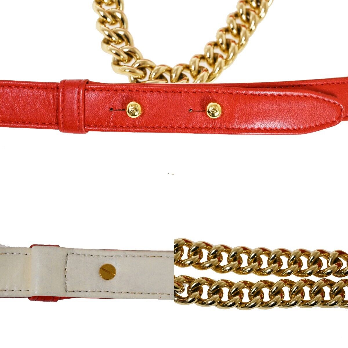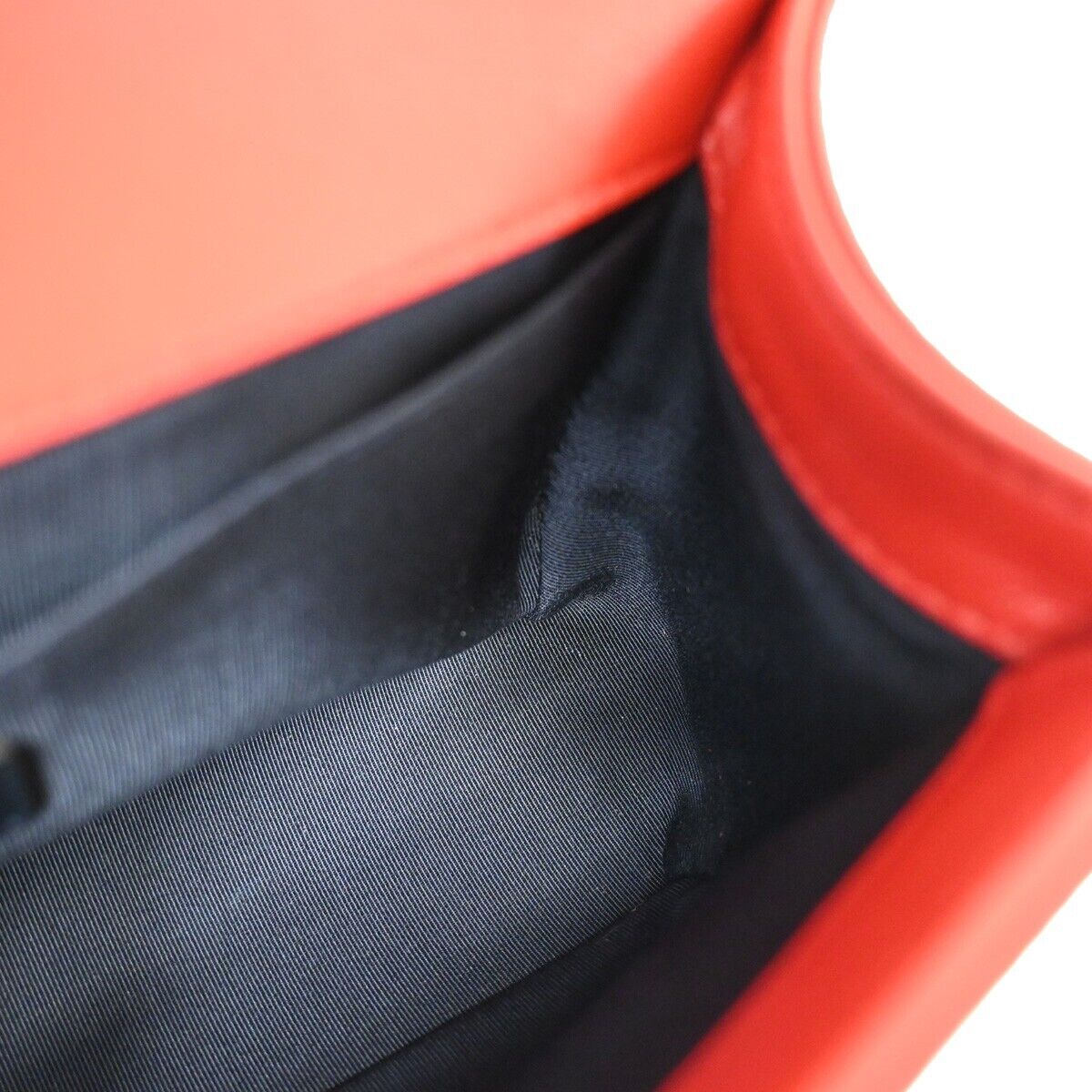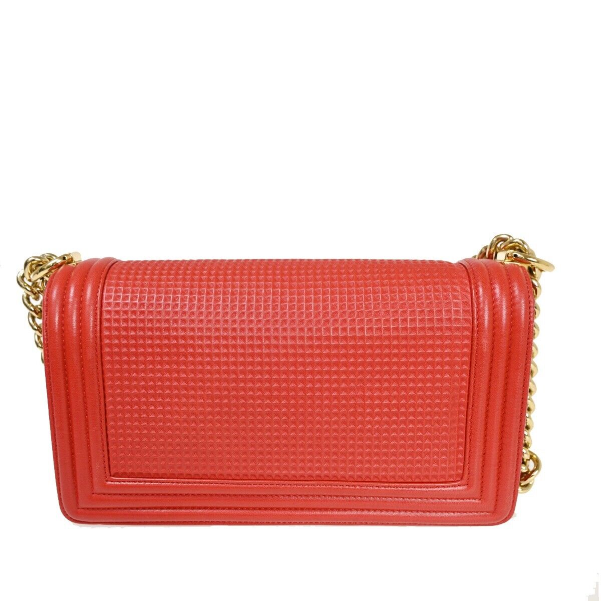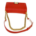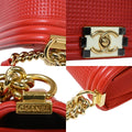 Elevate your style with the iconic Chanel Boy CC Logo Waffle Chain Shoulder Bag in striking red leather. Crafted in Italy with meticulous attention to detail, this bag exudes luxury and sophistication. The gold-tone hardware adds a touch of glamour, while the chain strap allows for versatile wear. Make a bold statement and add a timeless piece to your collection with this exquisite Chanel creation.