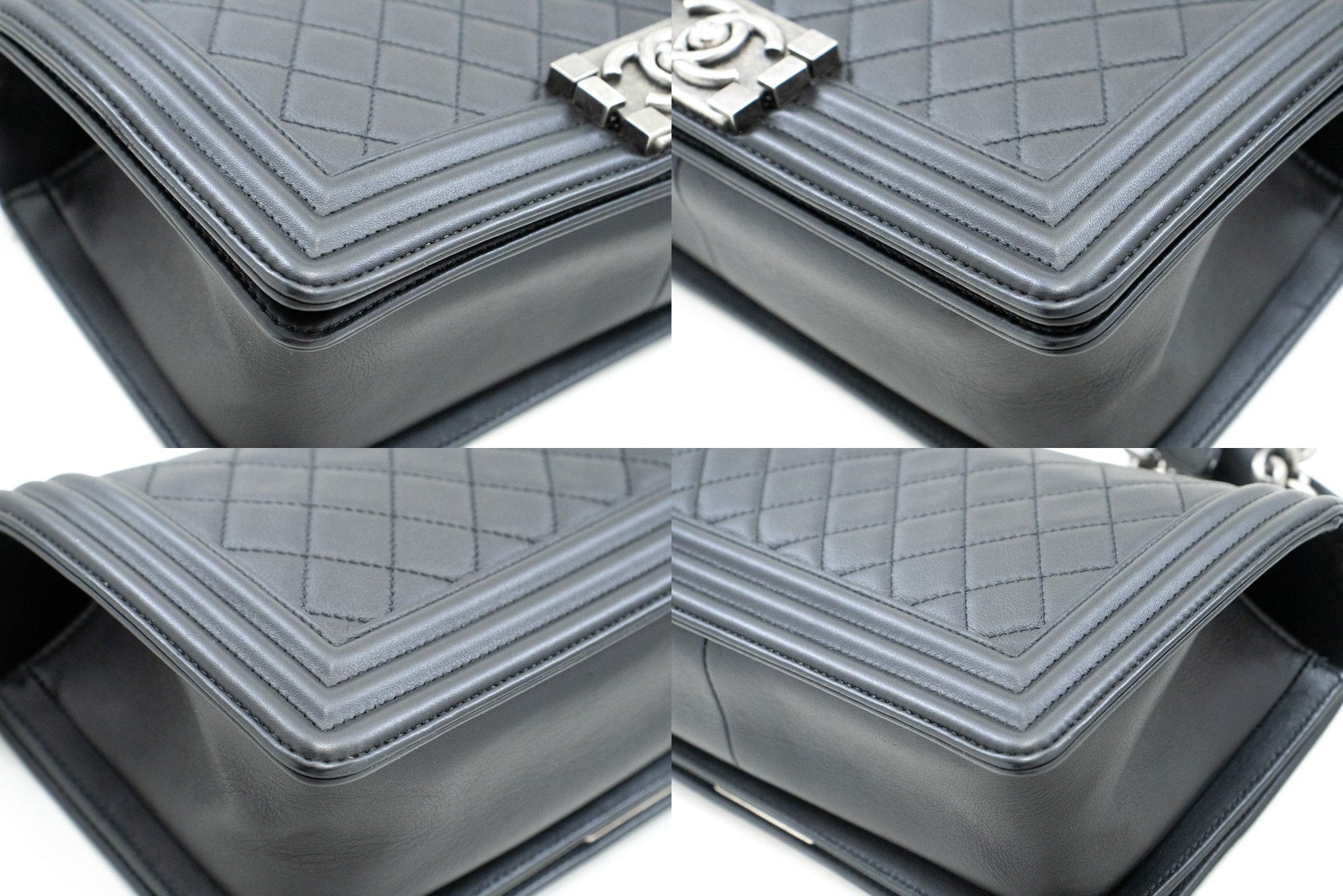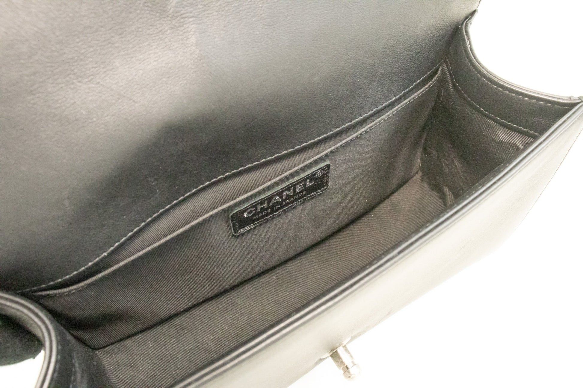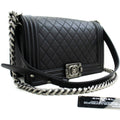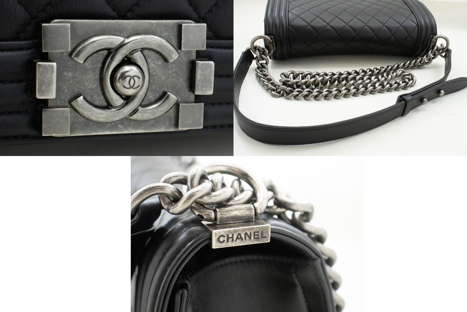 CHANEL Boy Chain Shoulder Bag Black Quilted Flap Calfskin Leather