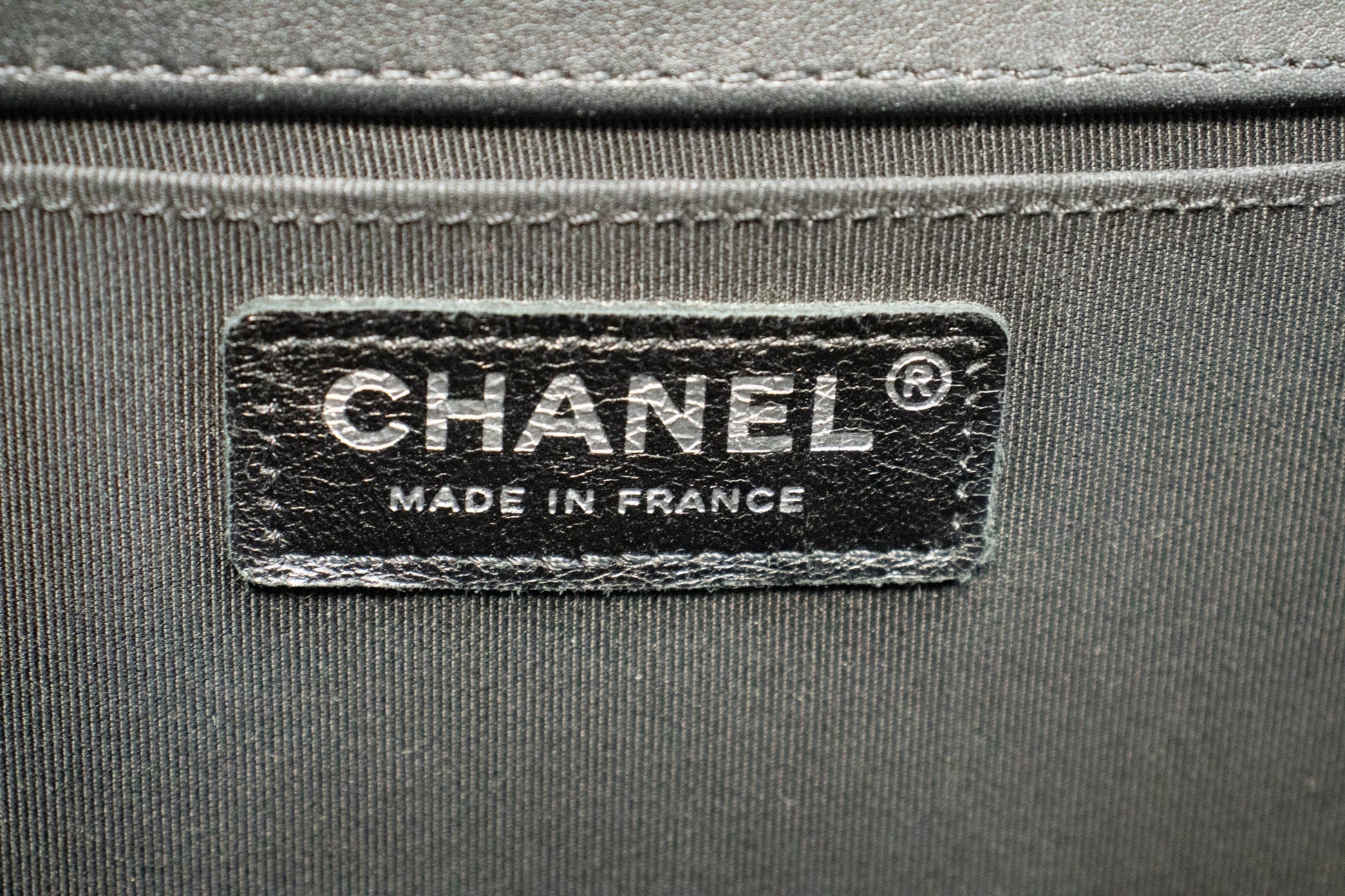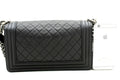 An CHANEL Boy Chain Shoulder Bag Black Quilted Flap Calfskin Leather.