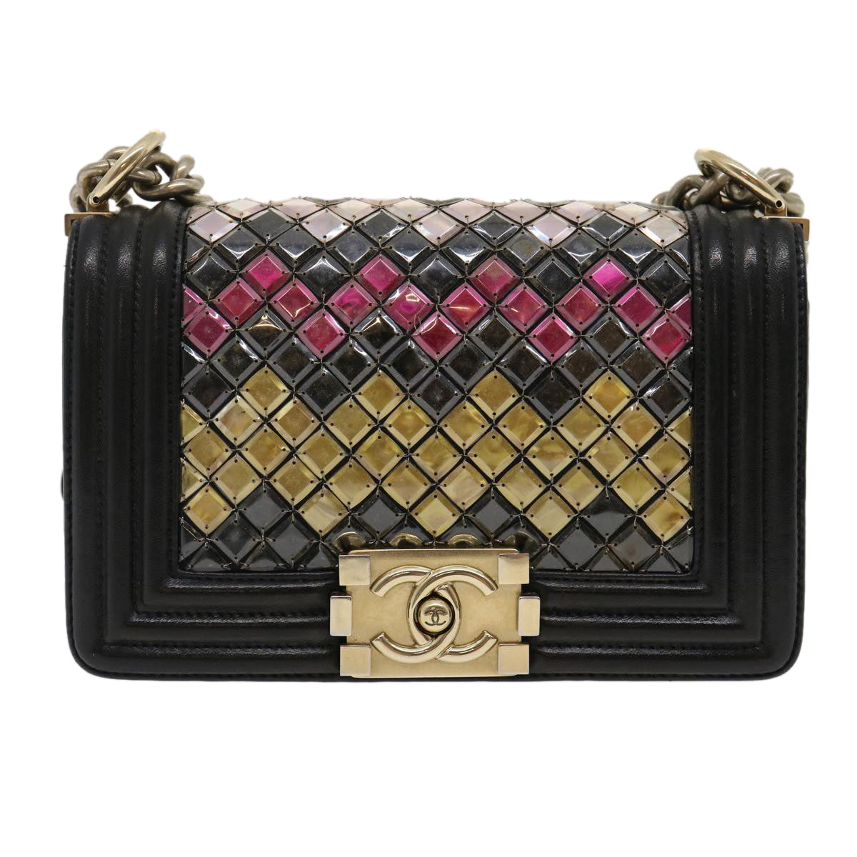 Chanel Boy Chain Shoulder Bag Tile Black Multicolor CC 29551A