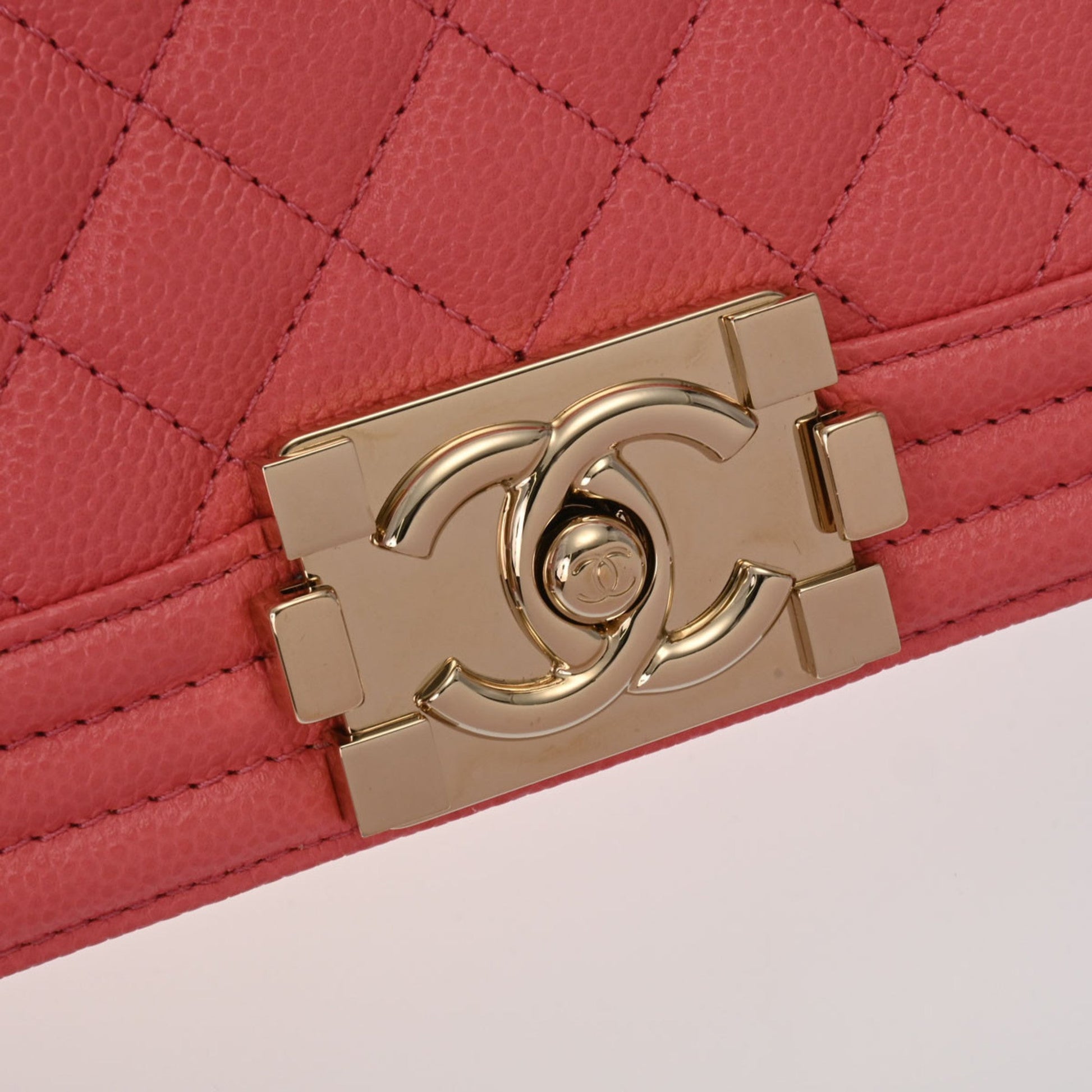 Chanel Boy Chain Shoulder Pink A67085 Women's Caviar Skin Bag