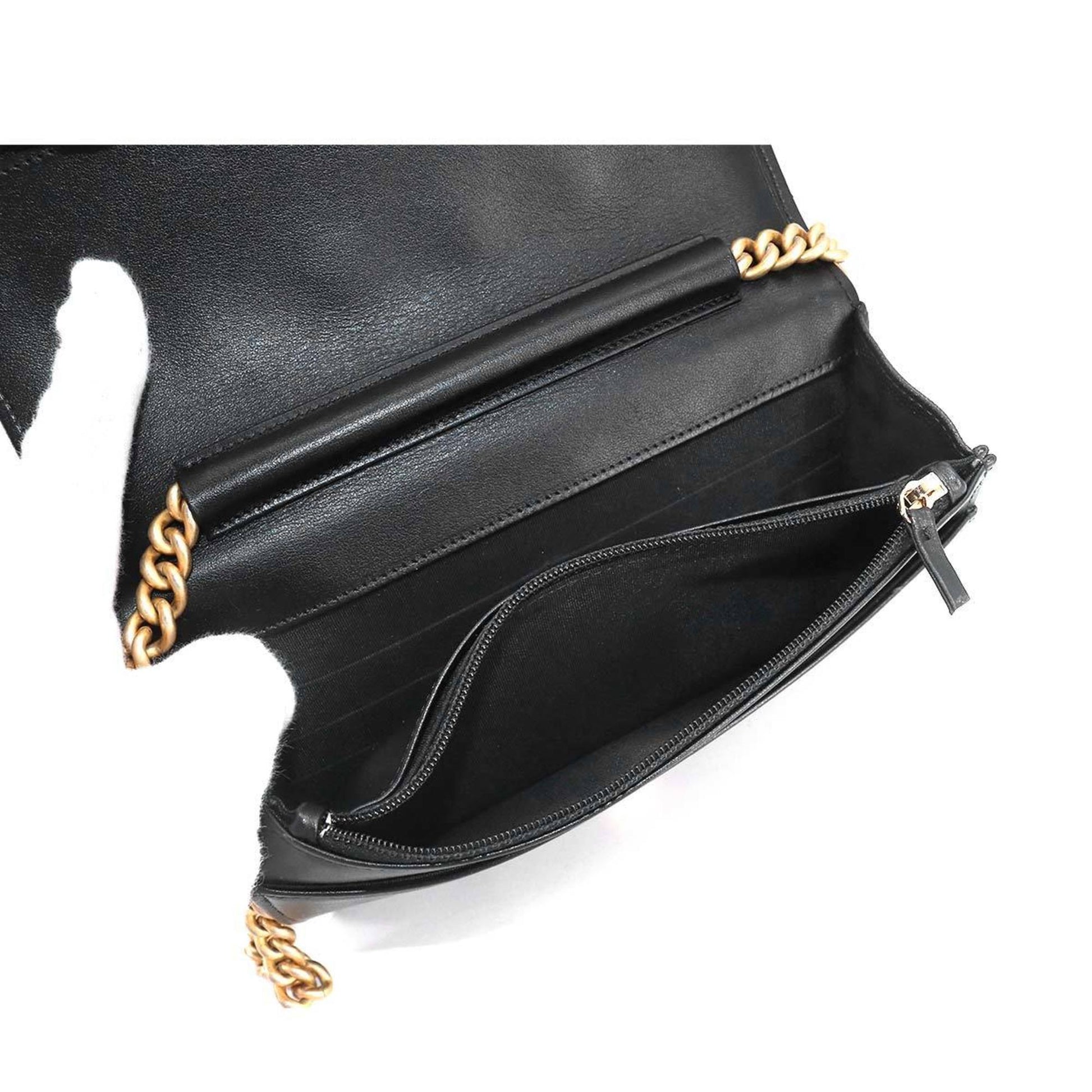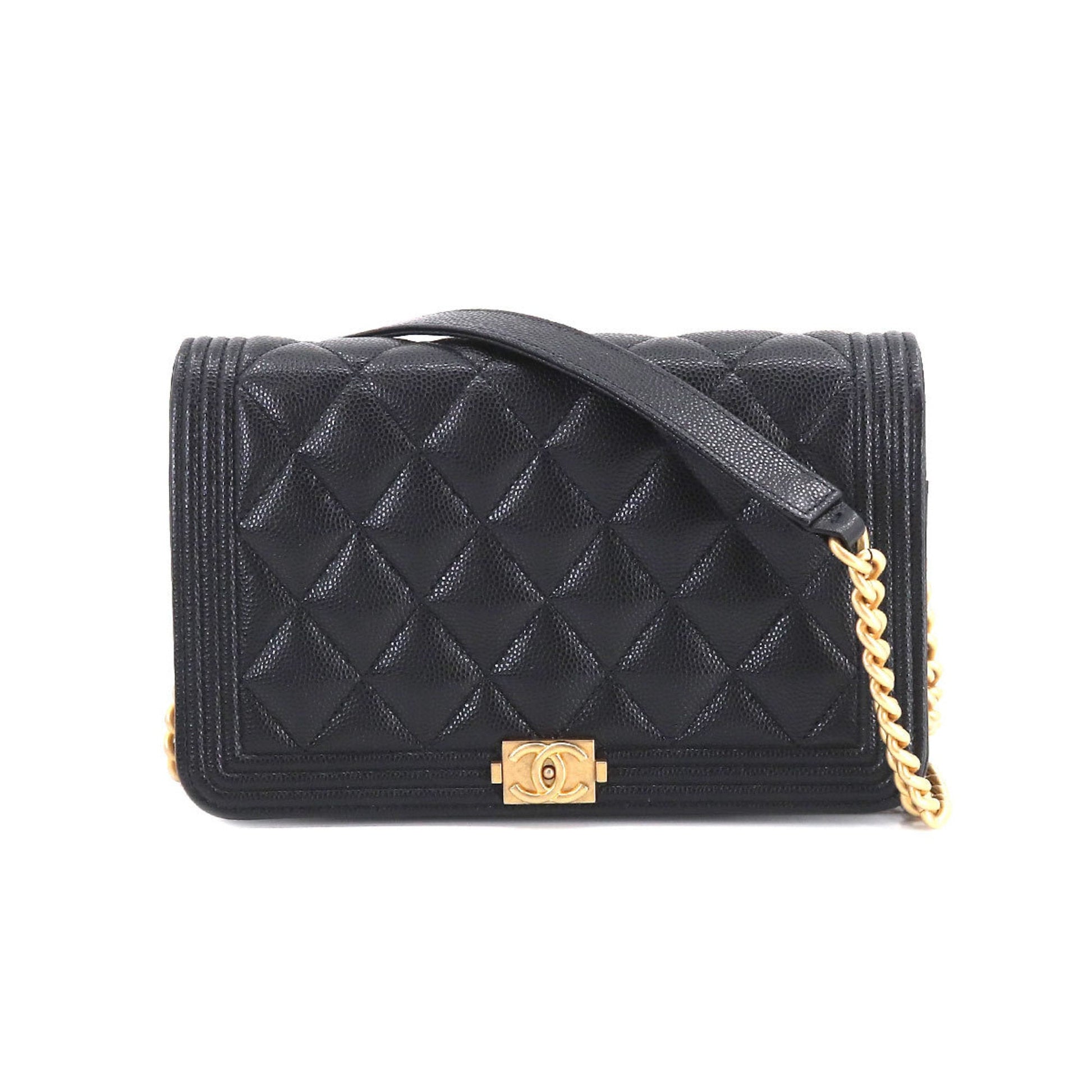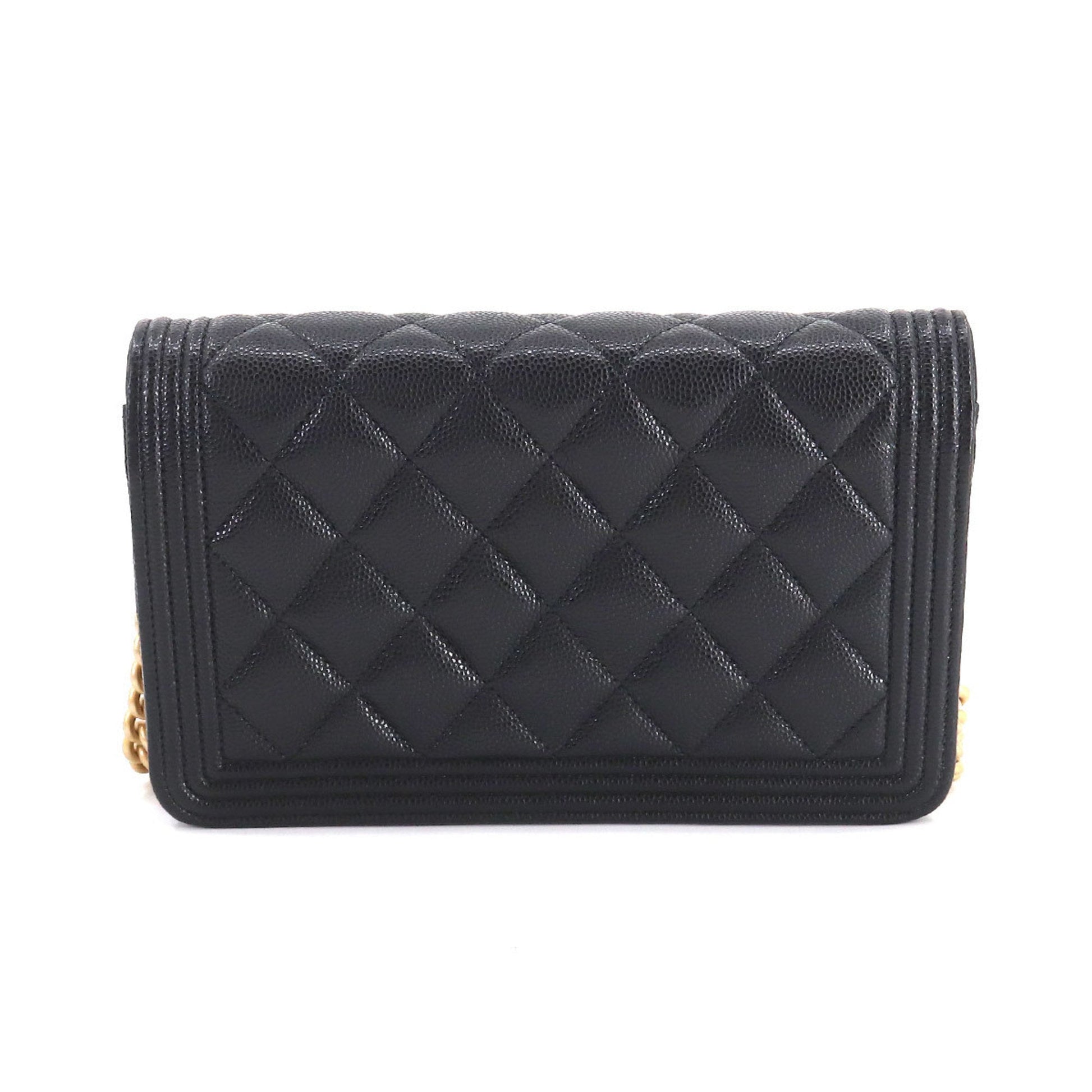 Chanel Boy Chanel Chain Wallet Long Caviar Skin Black AP1117 Gold Hardware