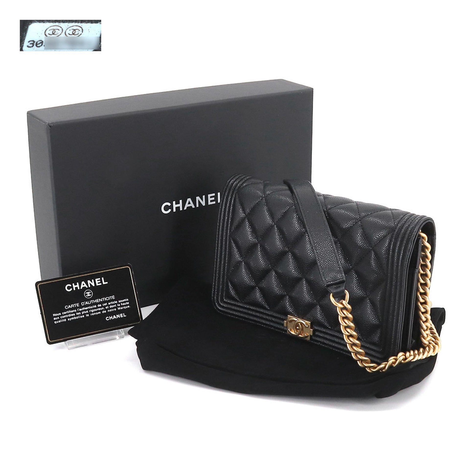 Chanel Boy  Chain Wallet Long Caviar Skin Black AP1117 Gold Hardware