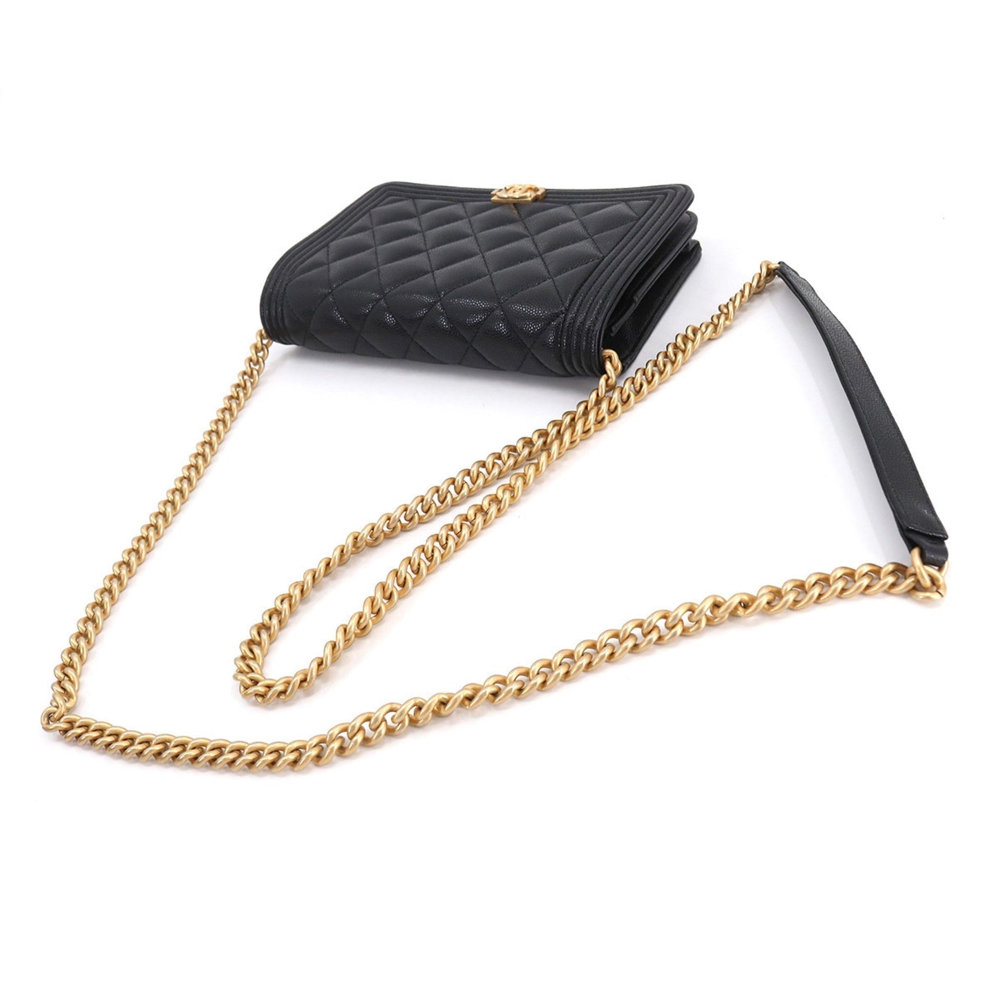 Chanel Boy Chain Wallet Long Caviar Skin Black AP1117 Gold Hardware