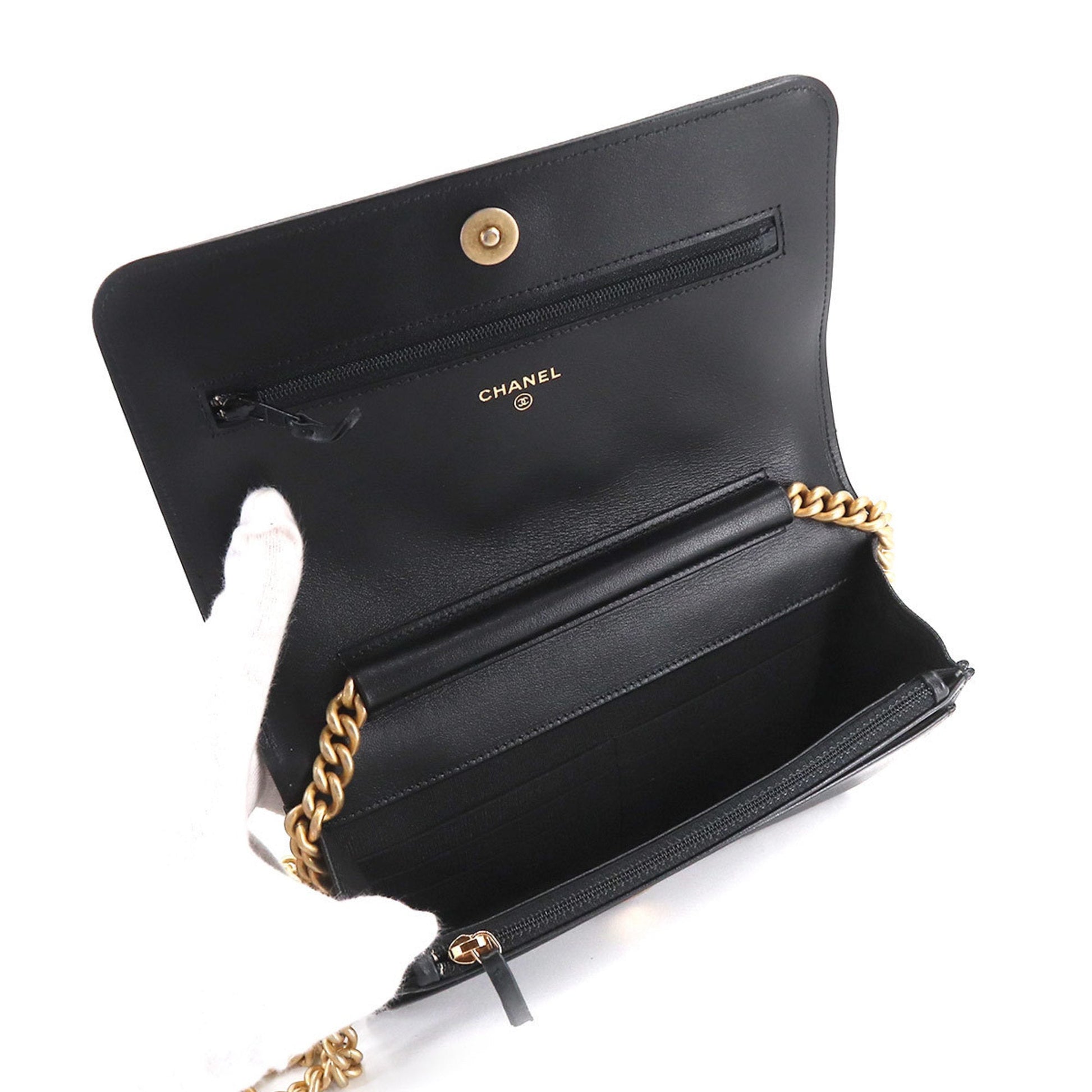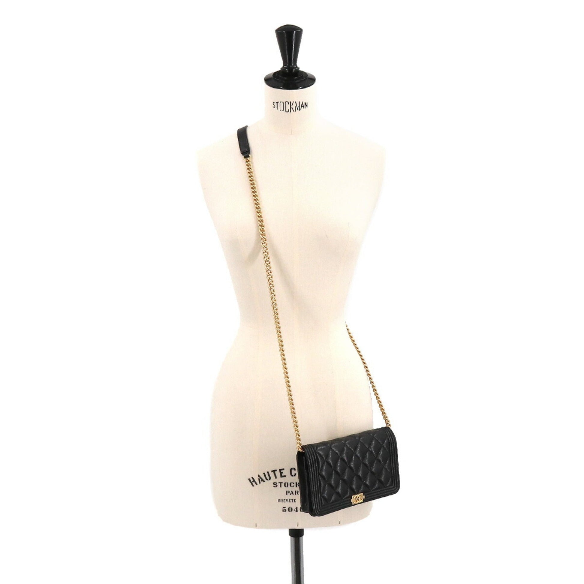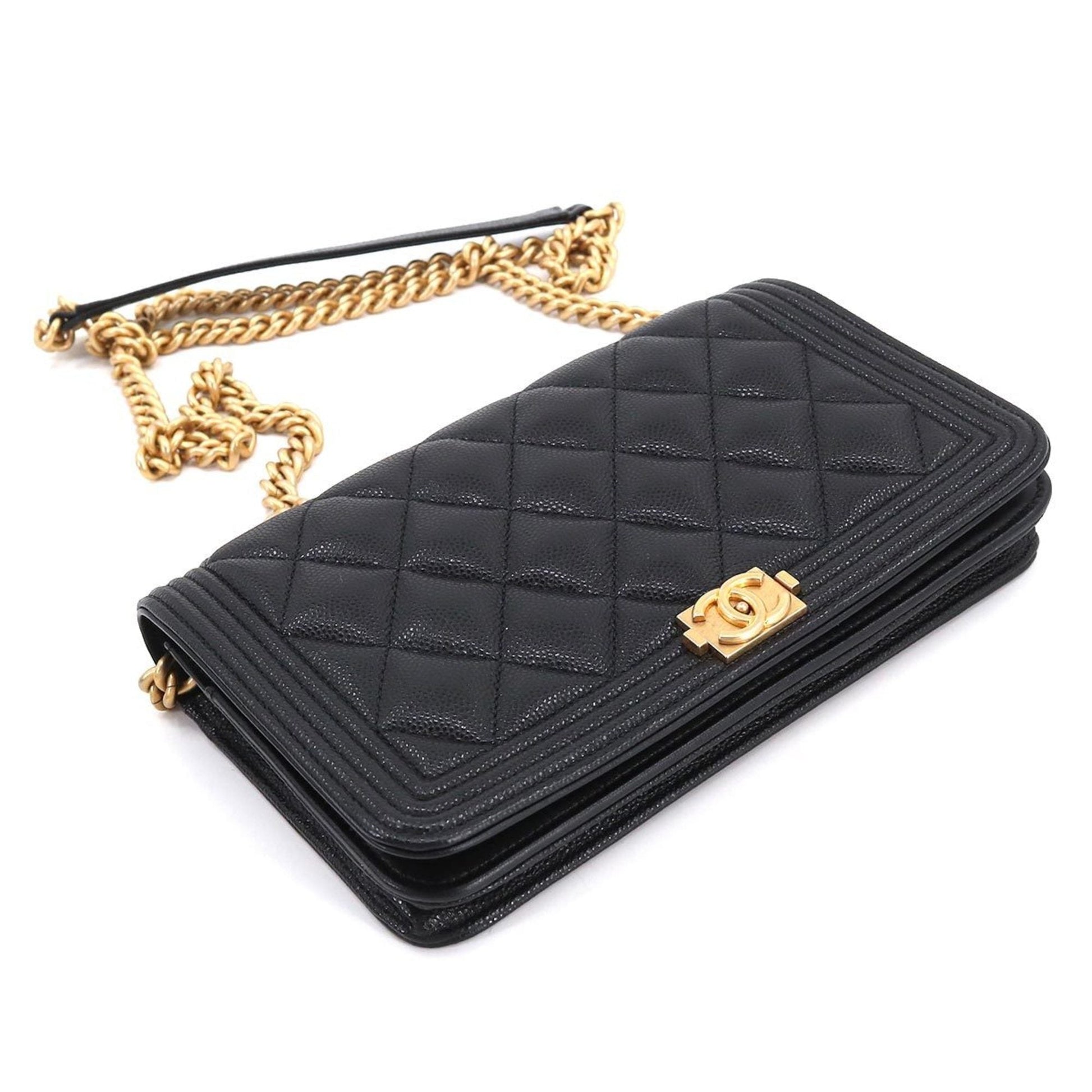 Chanel Boy Chanel Chain Wallet Long Caviar Skin Black AP1117 Gold Hardware