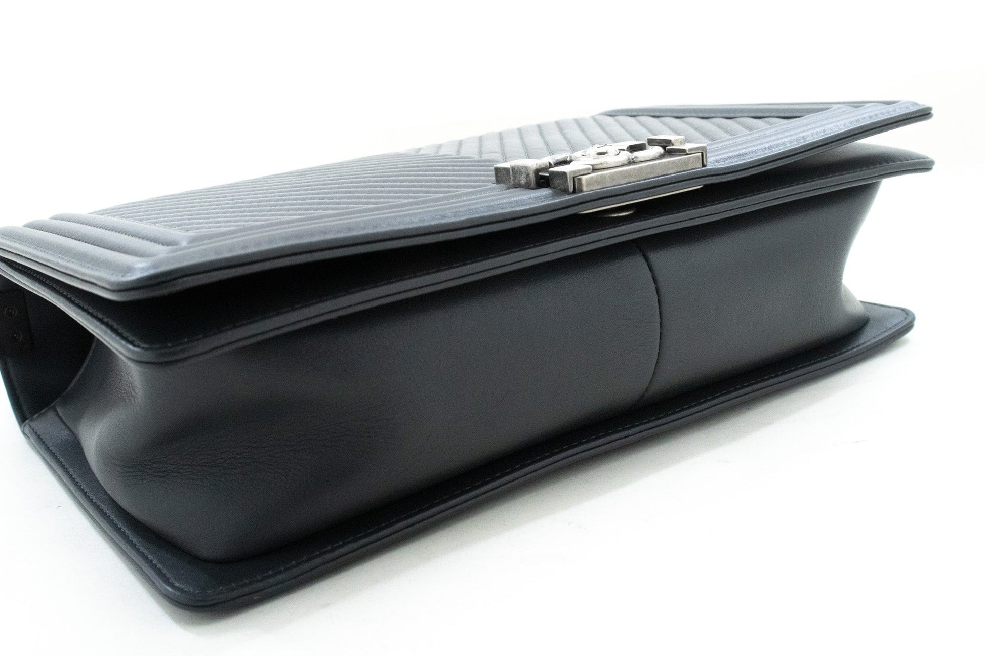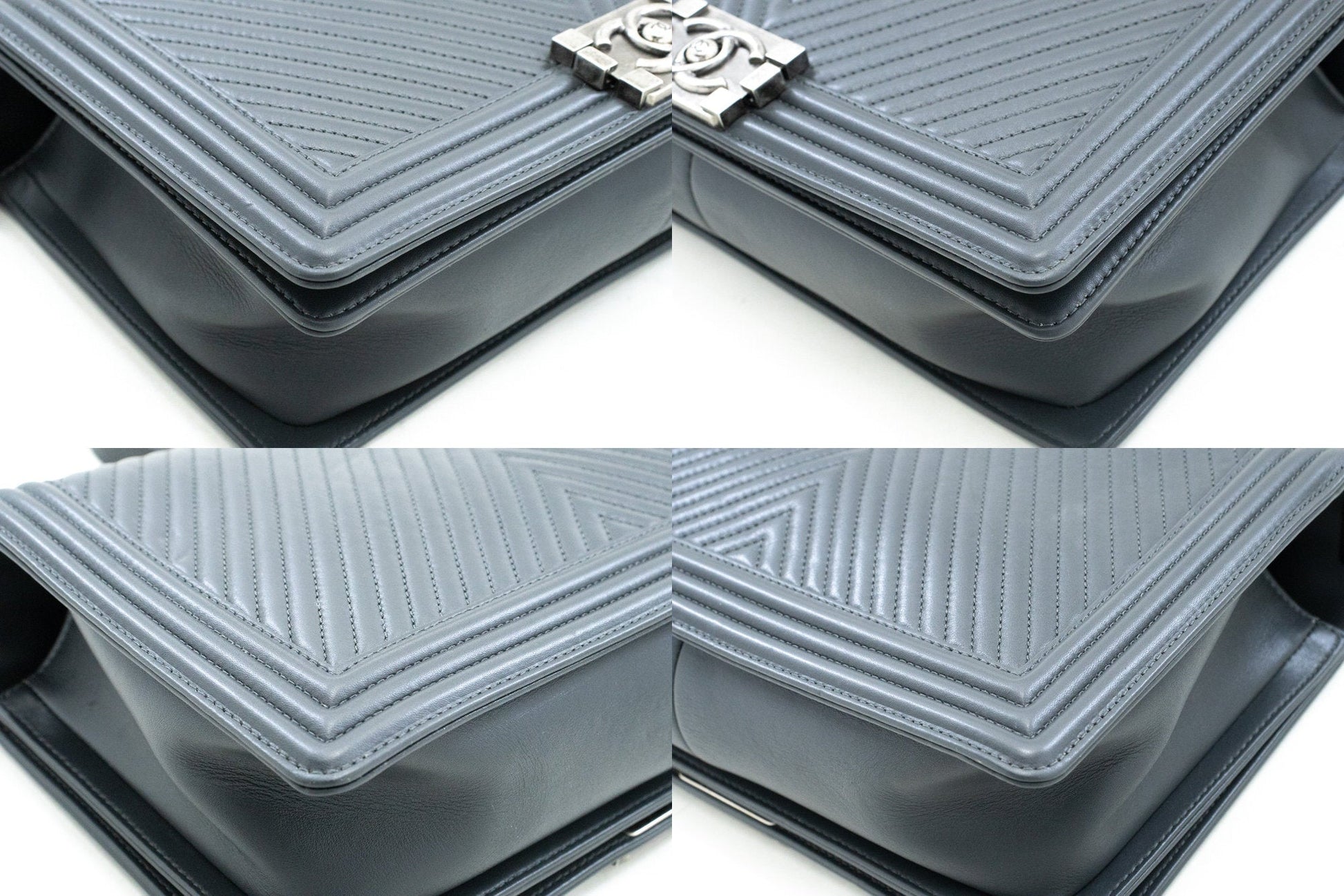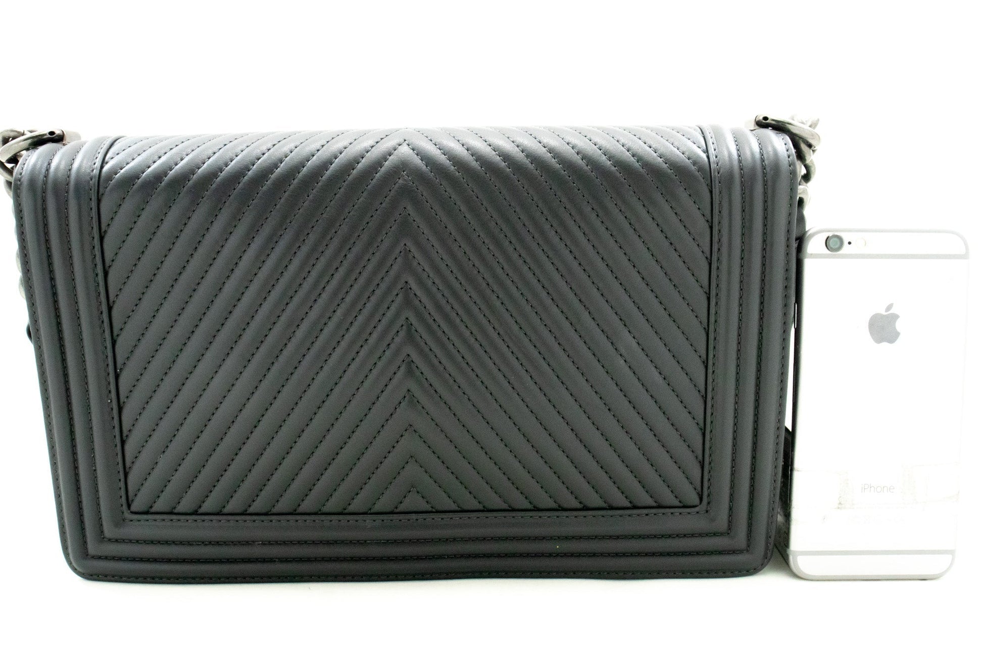 CHANEL Boy Dark Gray V-Stitch Chain Shoulder Bag Quilted Flap