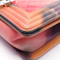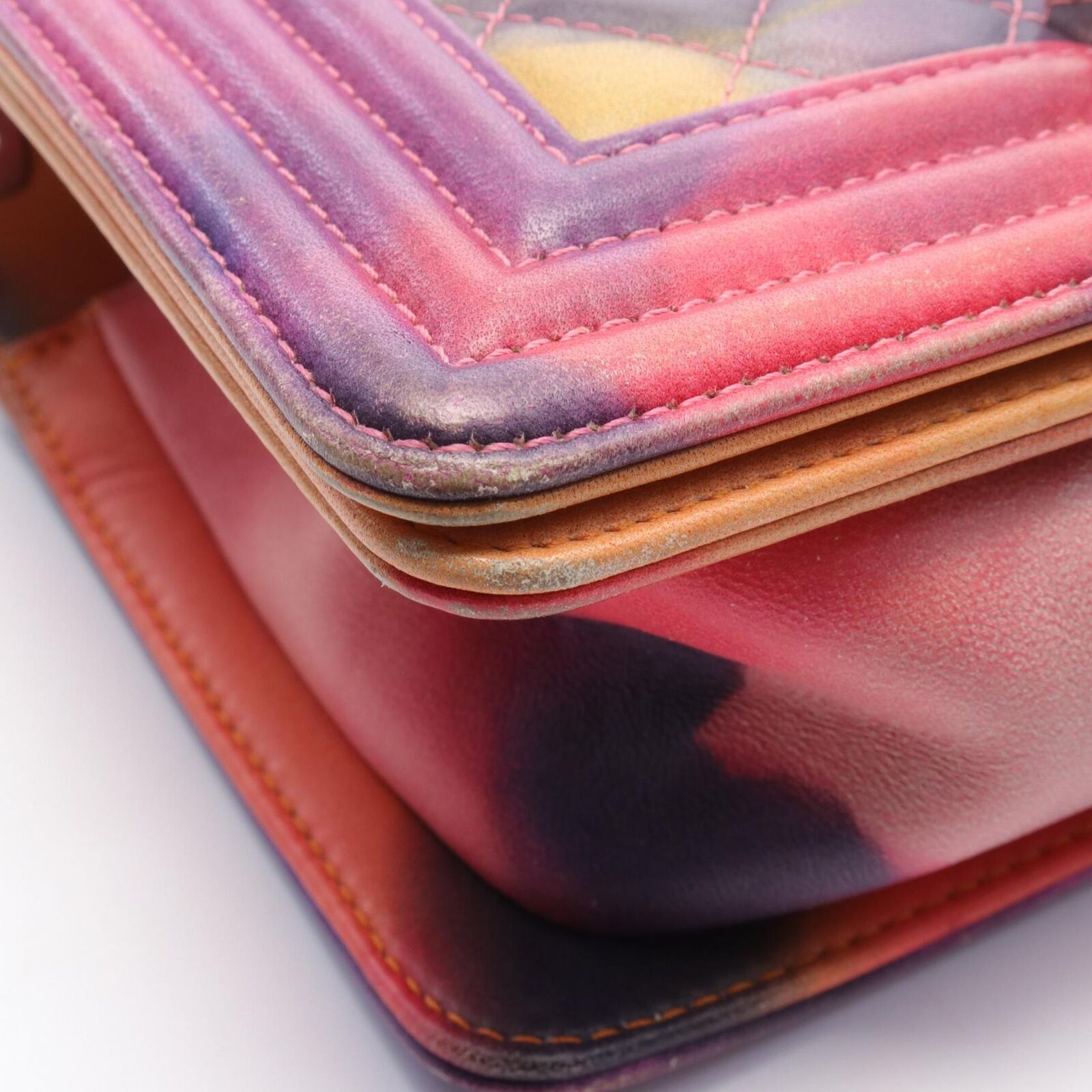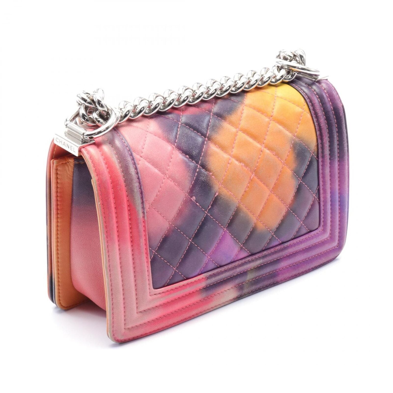 Elevate your style with the iconic Chanel Boy Matelasse Chain Shoulder Bag in luxurious pink lambskin. This gem is a must-have for fashion enthusiasts seeking sophistication and flair. The exquisite matelasse detailing and signature chain strap exude timeless elegance, making it a versatile accessory for any occasion. Embrace the allure of Chanel craftsmanship with this chic and practical statement piece that effortlessly combines classic charm with modern allure.