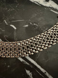 Travail d’exception pour cette collection Chanel de 1999, nous disposons du collier assorti. État neuf. Présence du stamp officiel Chanel avec l’année.