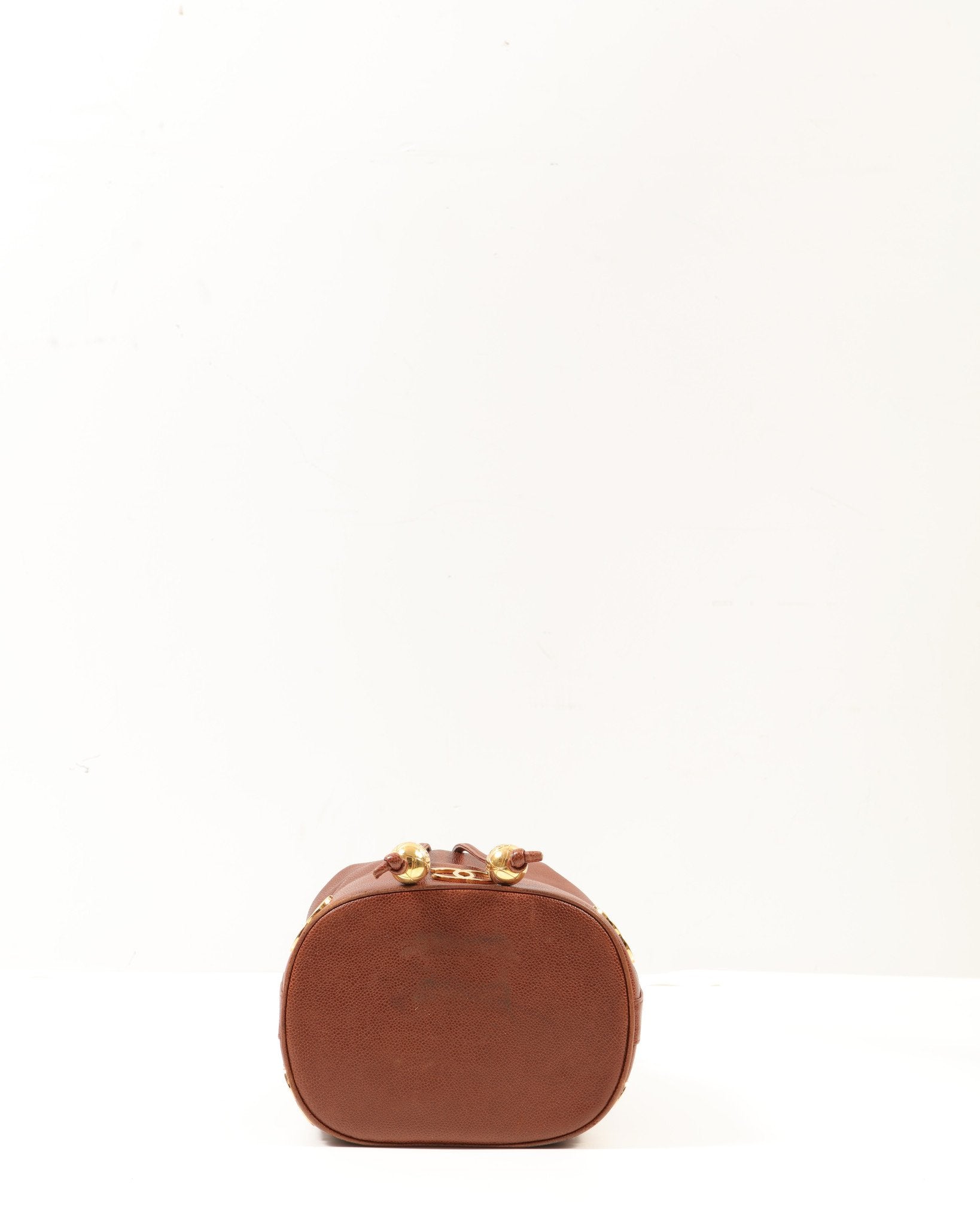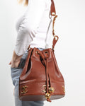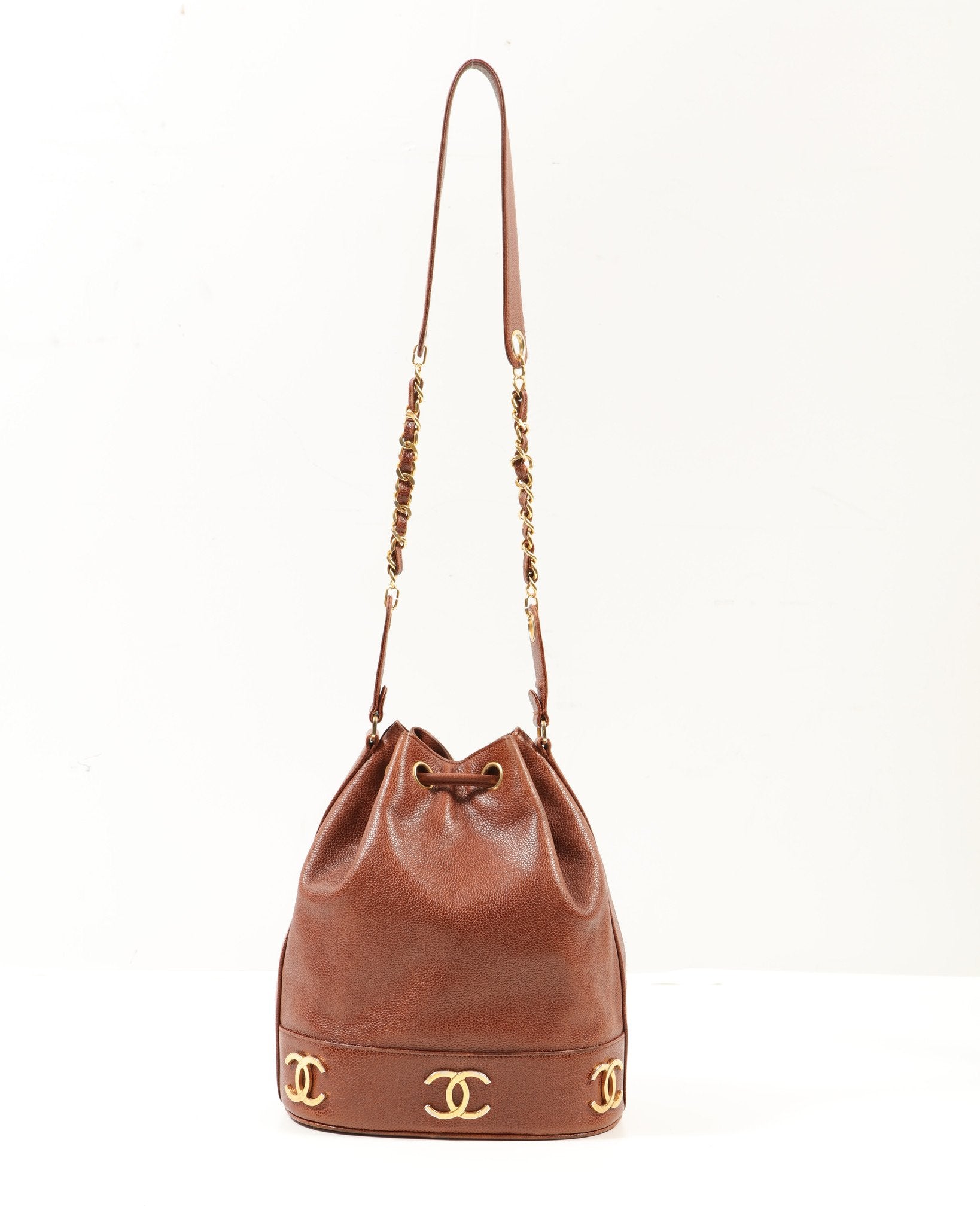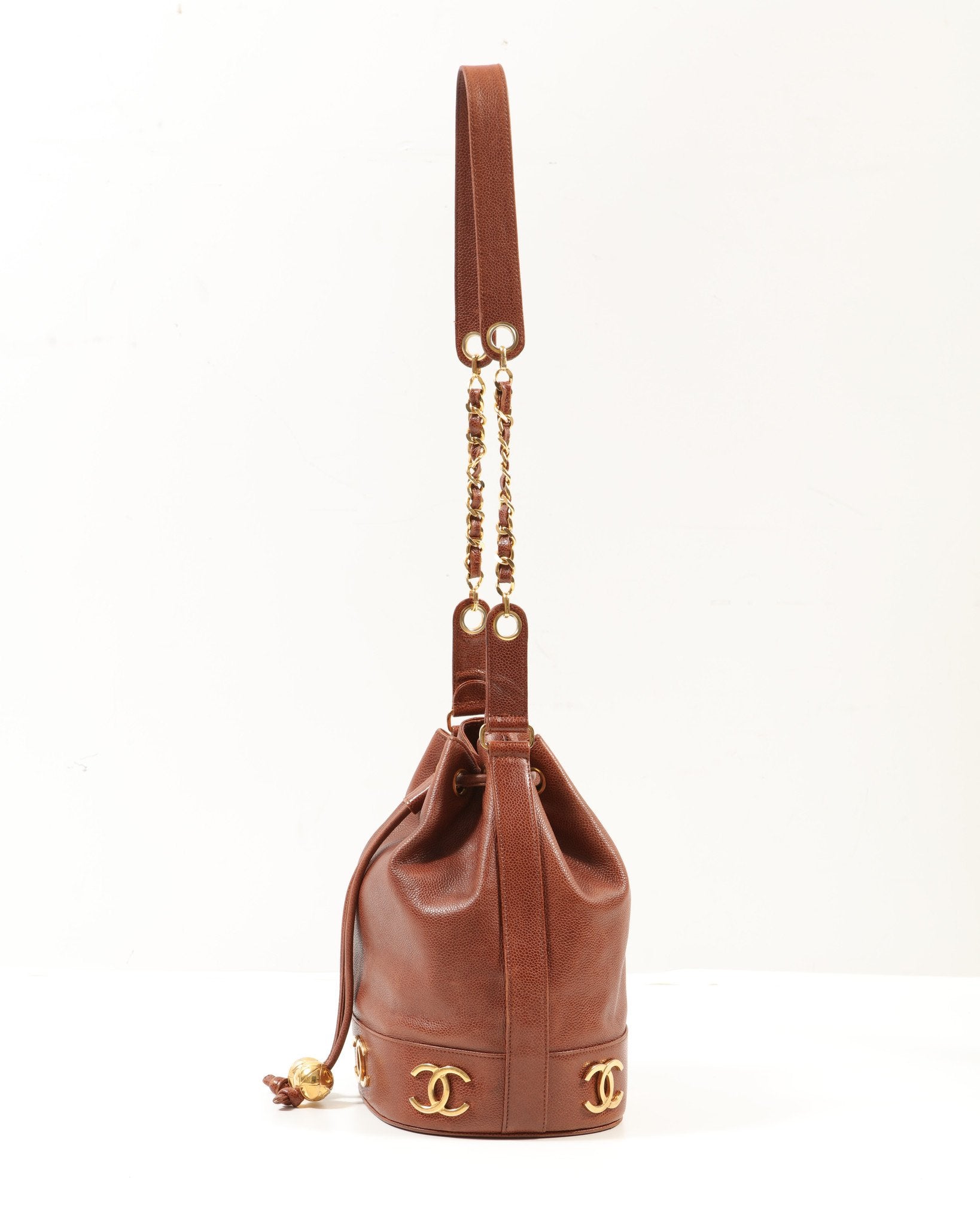 Chanel Vintage Brown Caviar Leather CC Drawstring Bucket Bag