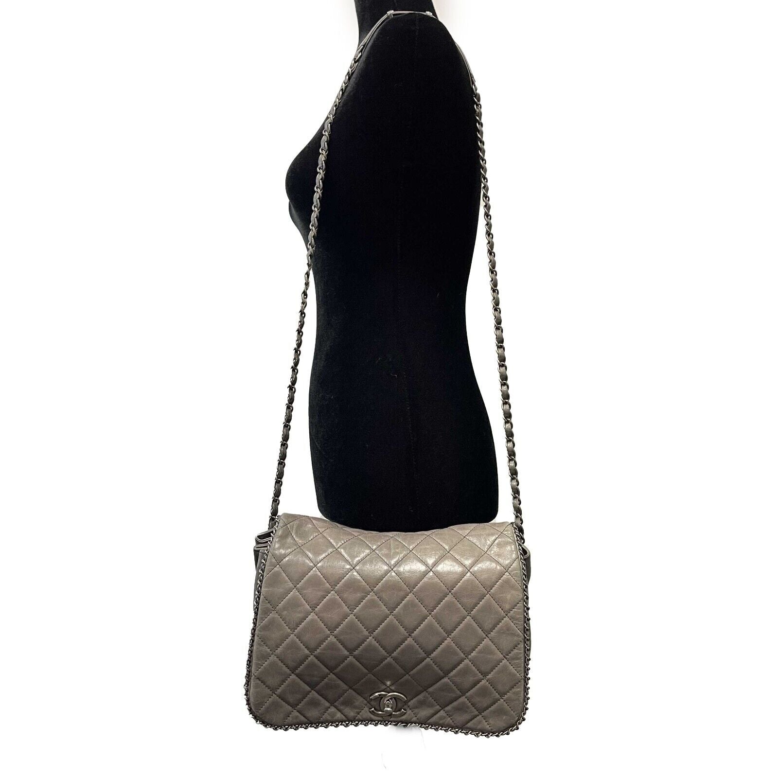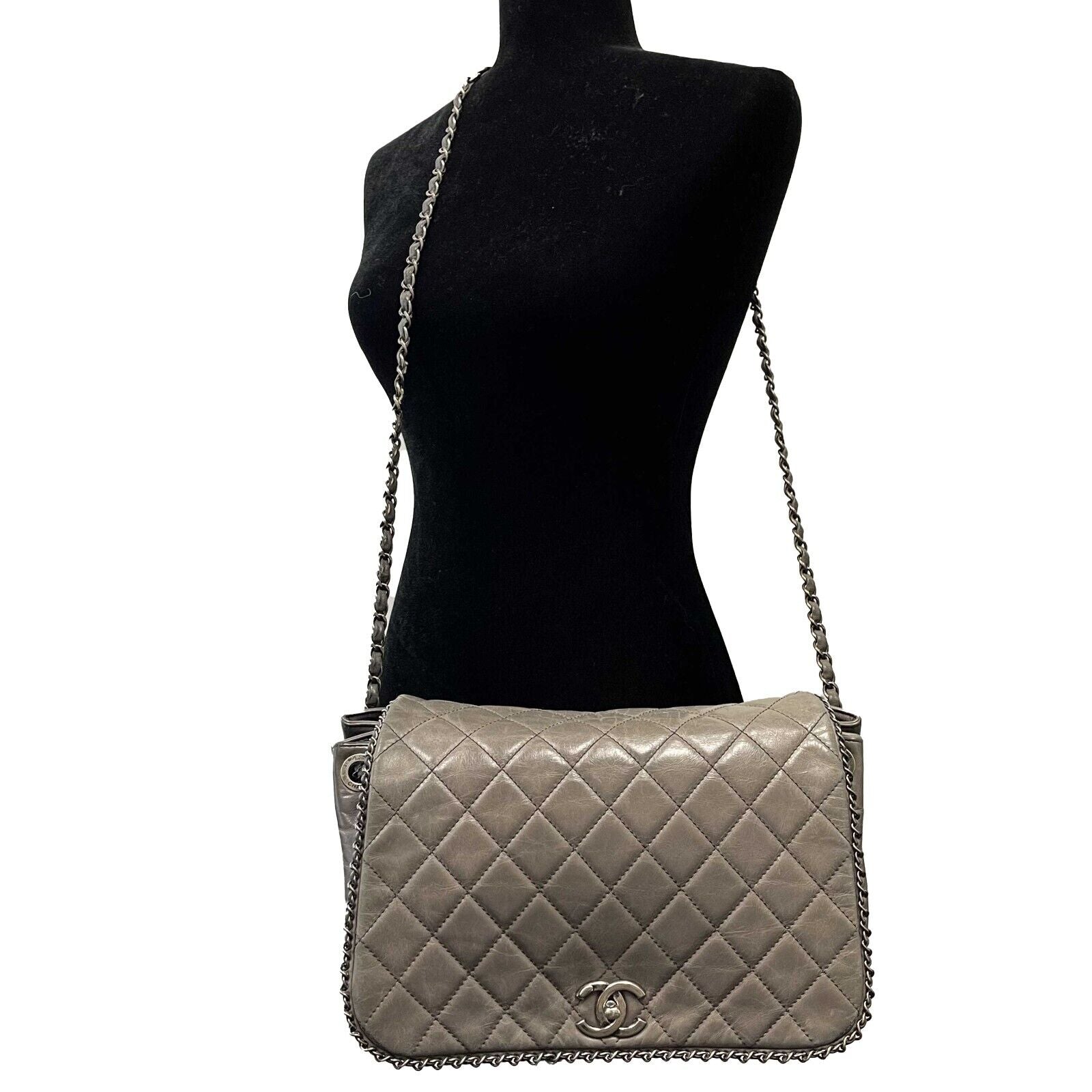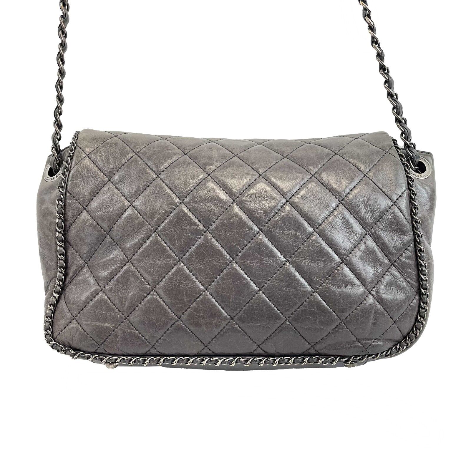 CHANEL - Calfskin Quilted Large CC Enchained Accordion - Gray Shoulder Bag