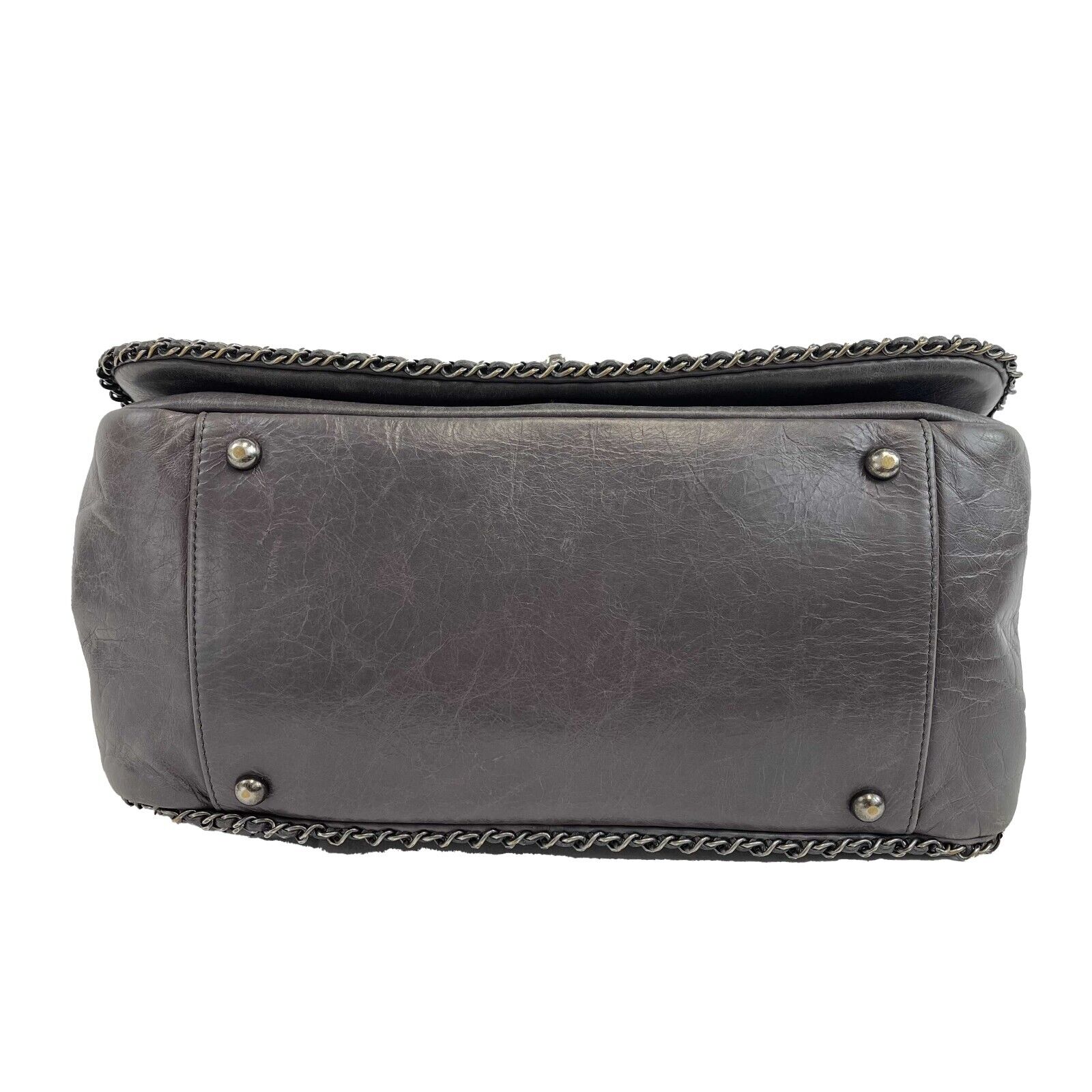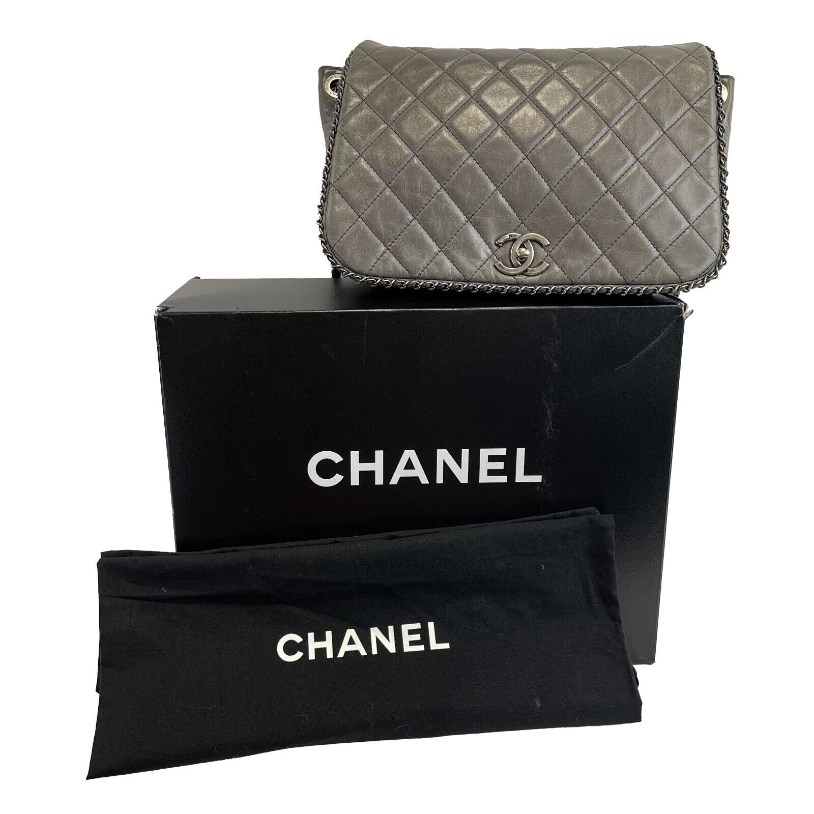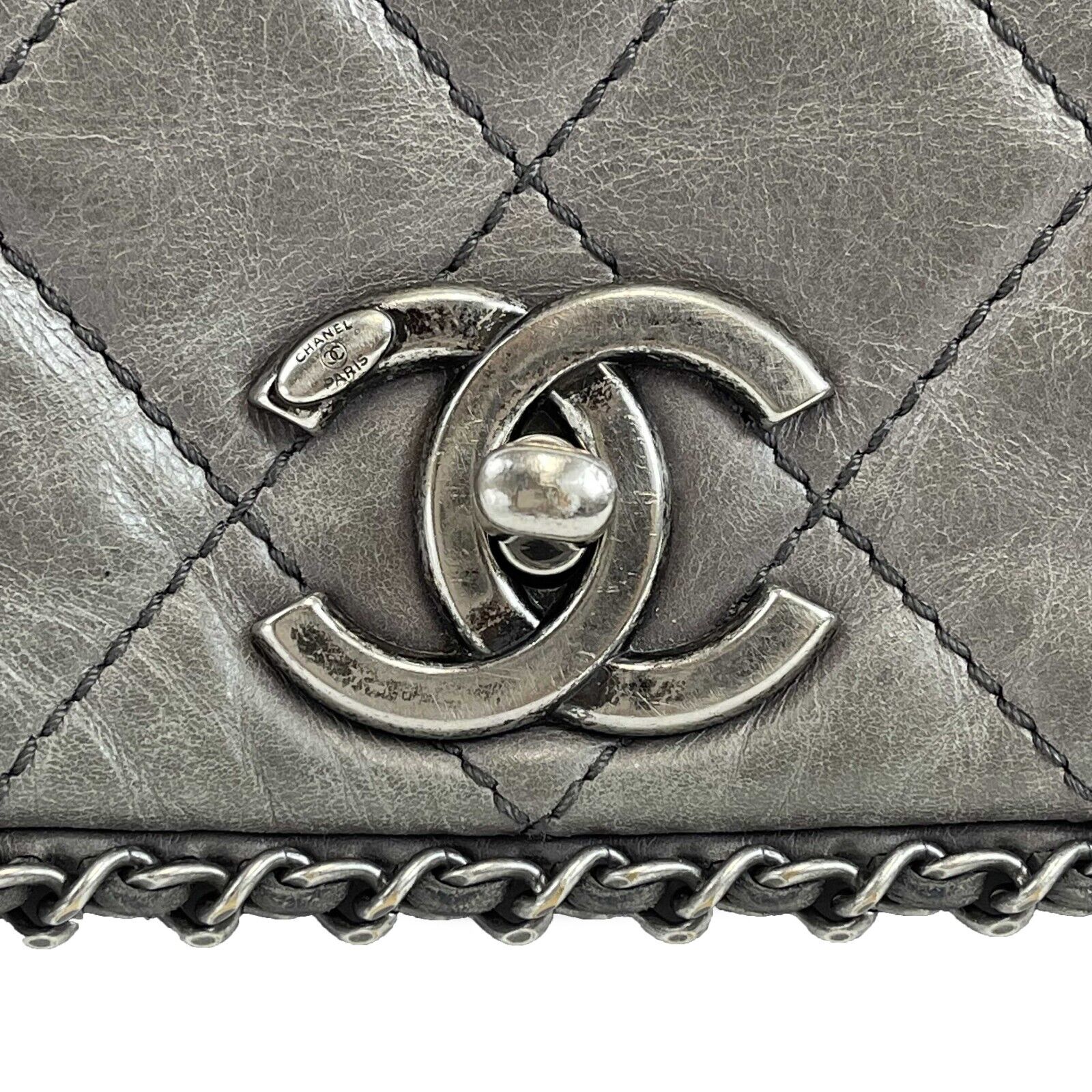 CHANEL - Calfskin Quilted Large CC Enchained Accordion - Gray Shoulder Bag