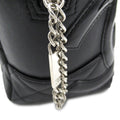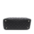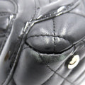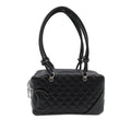 The Cambon Ligne shoulder Bag features a quilted lambskin leather body with interlocking Cs, rolled leather handles, a top zip closure, a back exterior slip pocket, and an interior zip pocket.