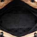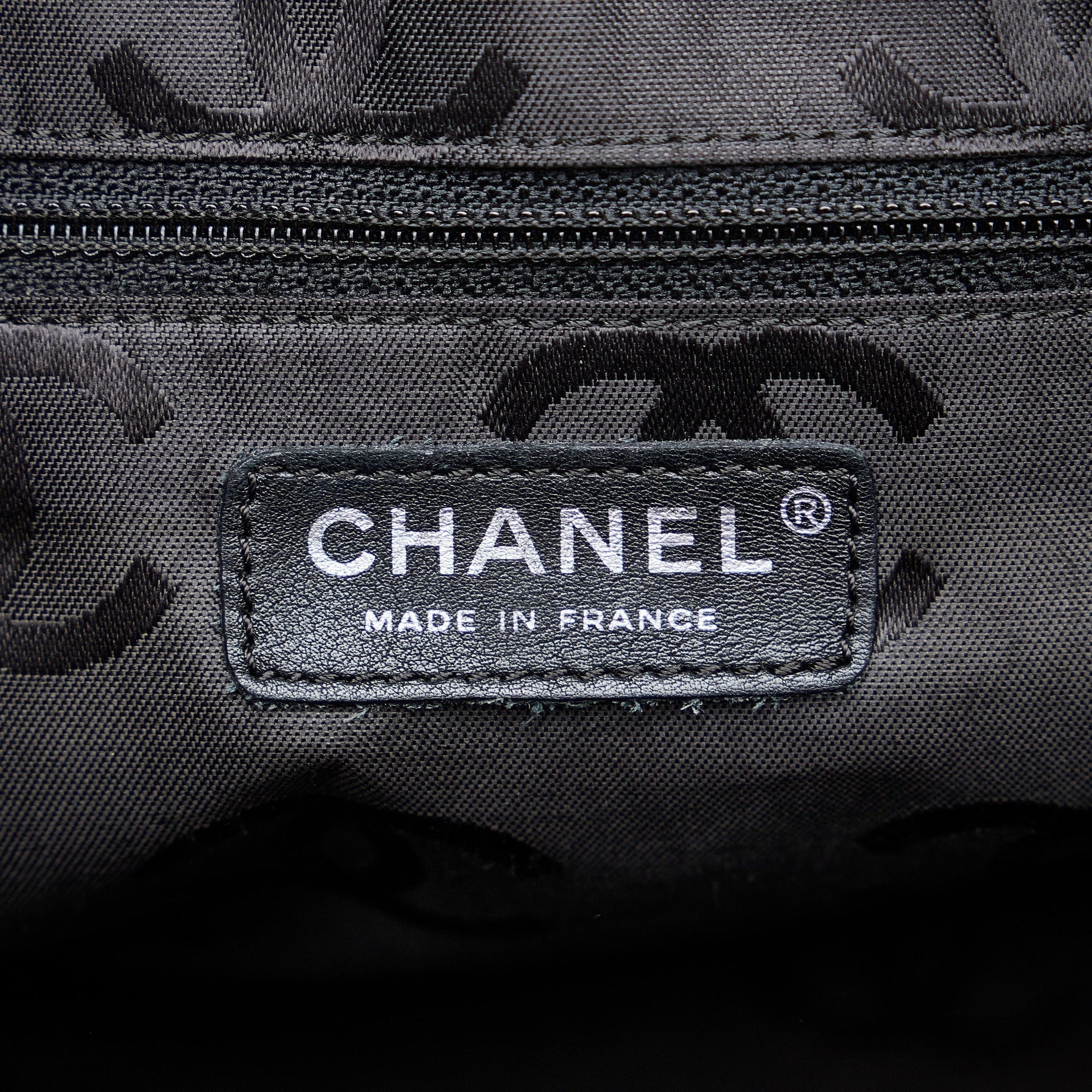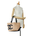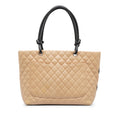 The Cambon Ligne Tote Bag features a quilted lambskin leather body with interlocking Cs, an exterior back slip pocket, rolled leather handles, and a top zip closure.