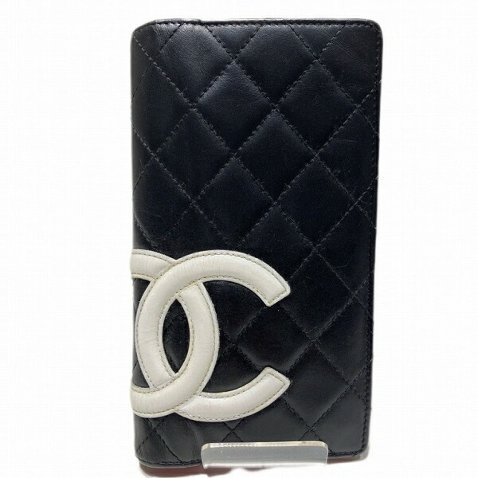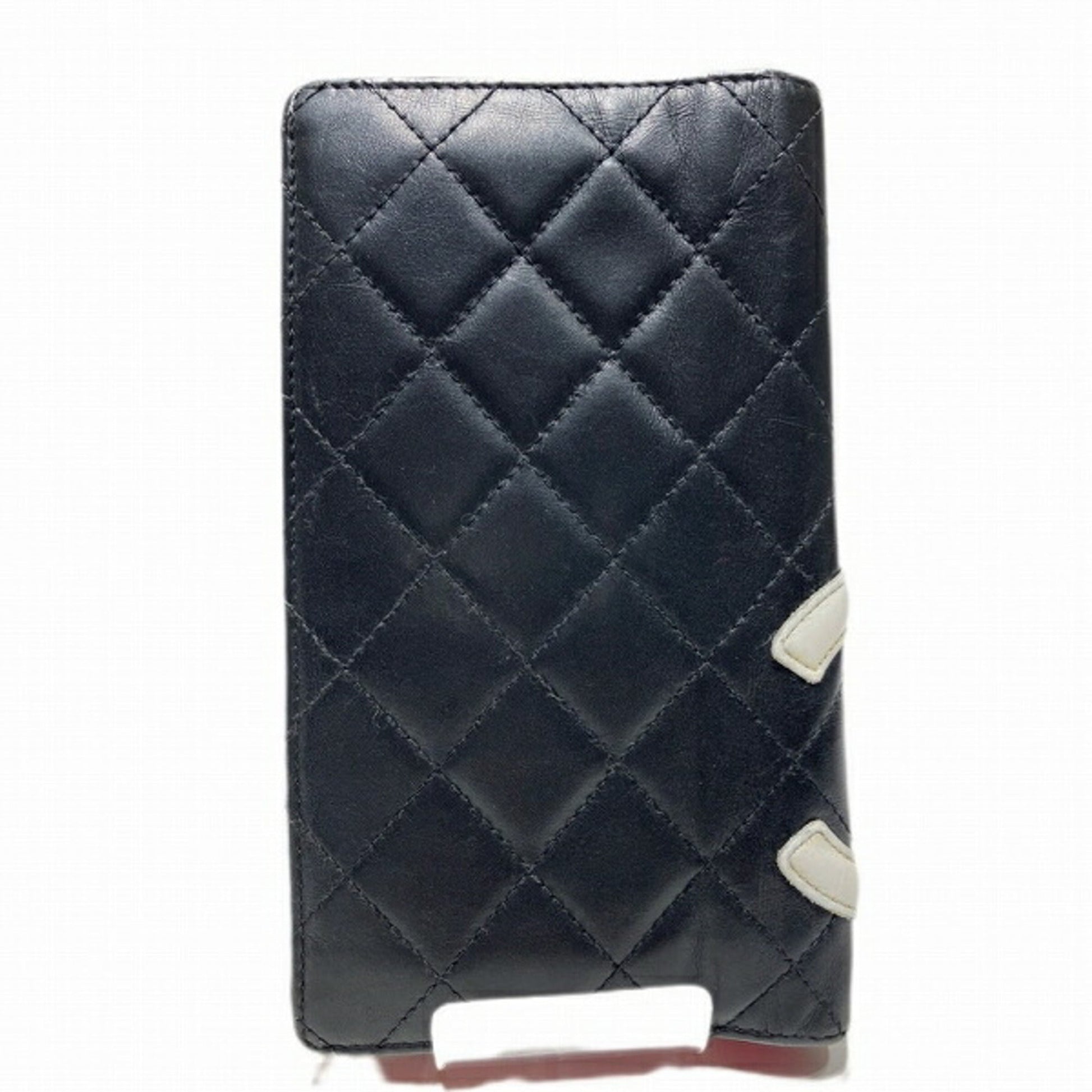Chanel Cambon Line A26717 Coco Mark Black Bifold Wallet Long Women's