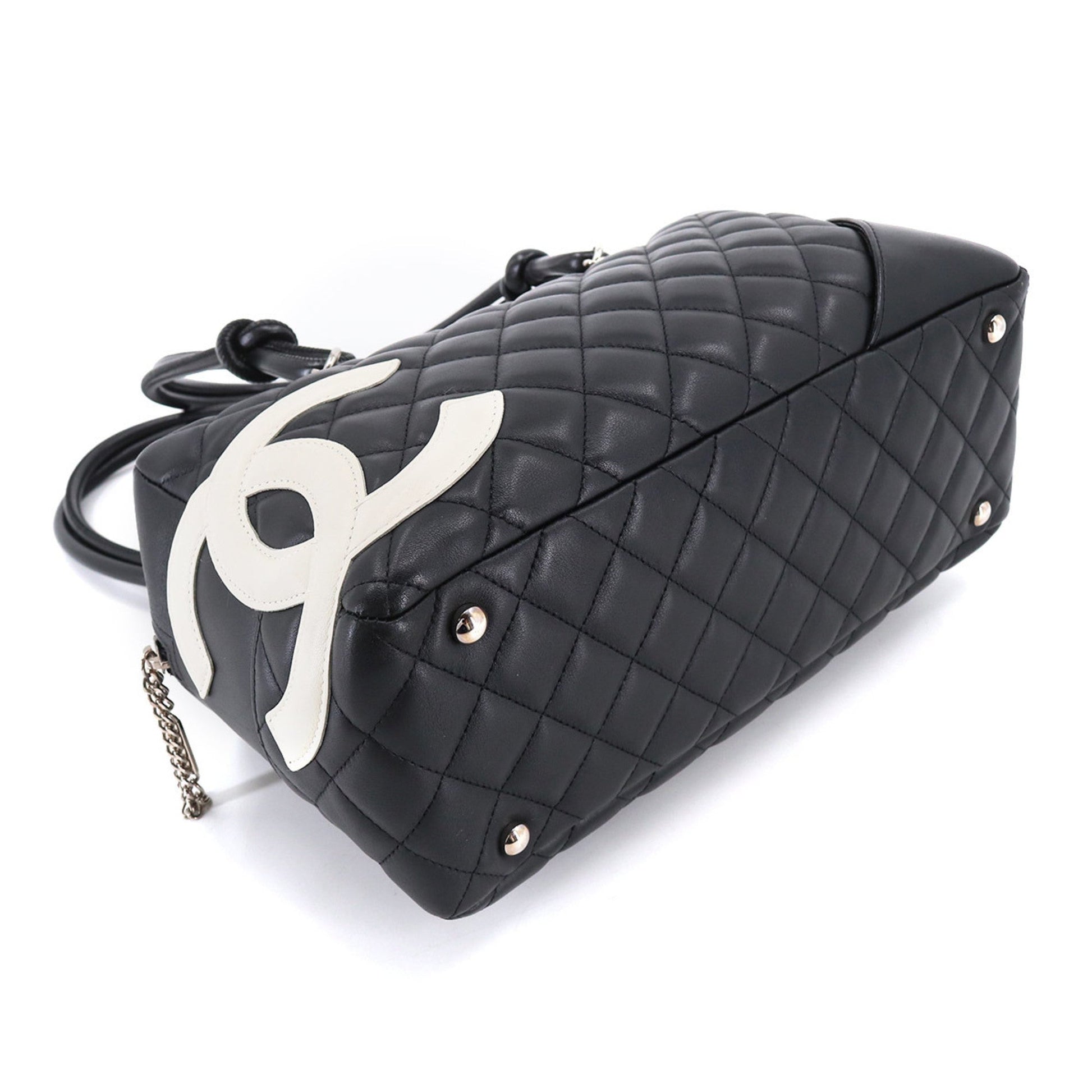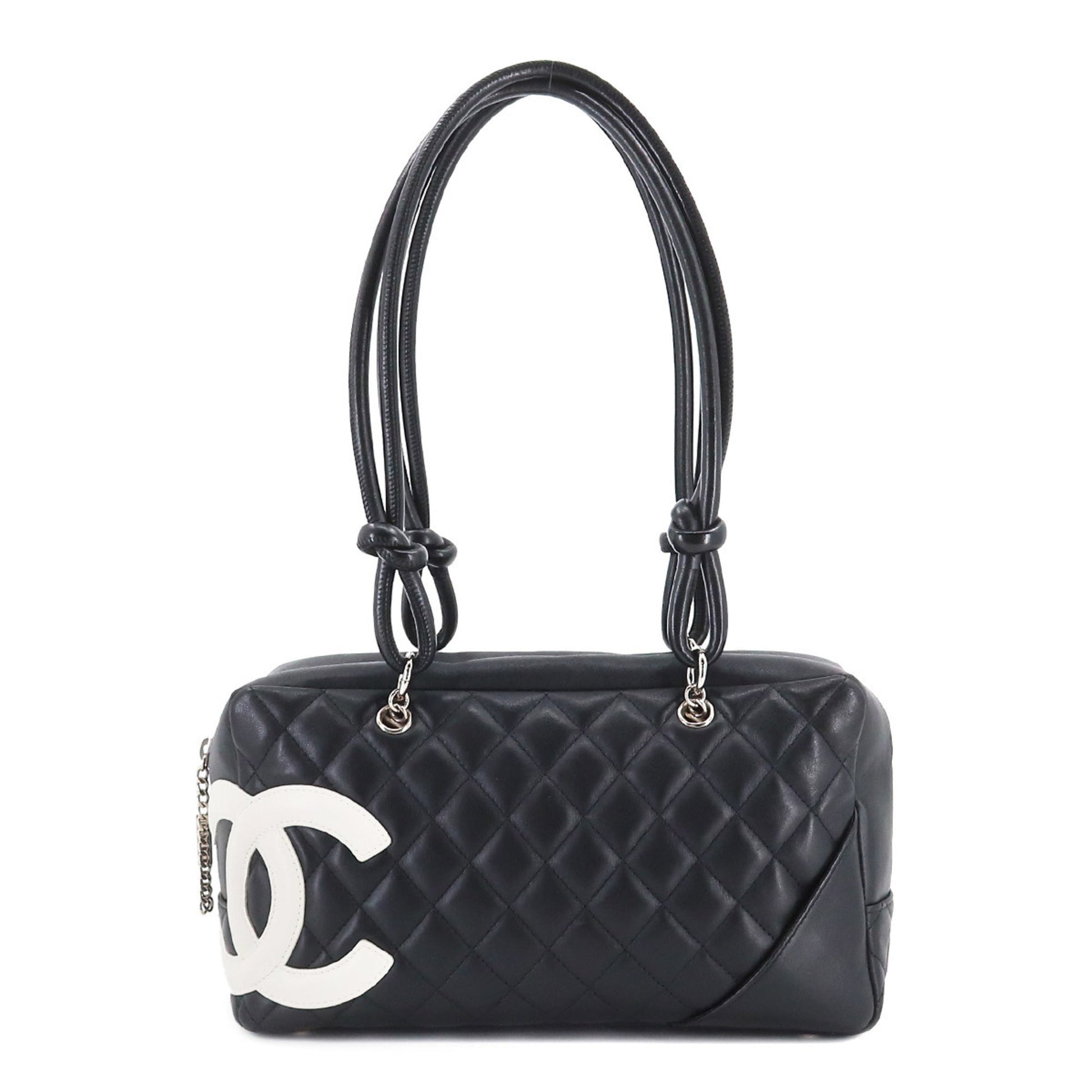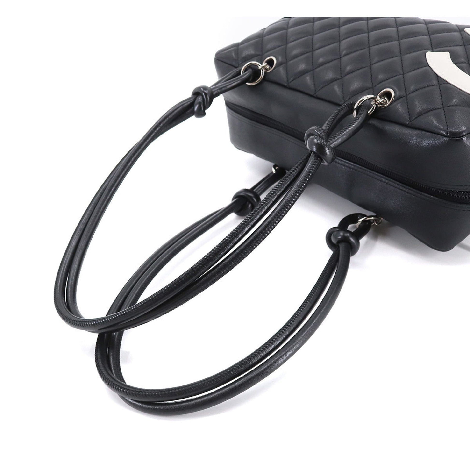 Chanel Cambon Line Bowling Shoulder Bag Leather Black White A25171