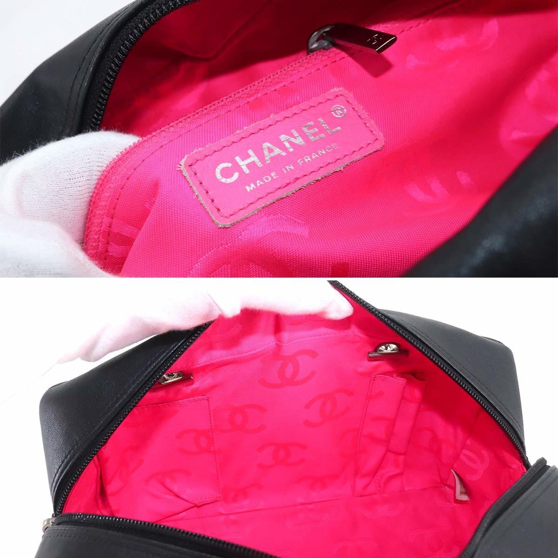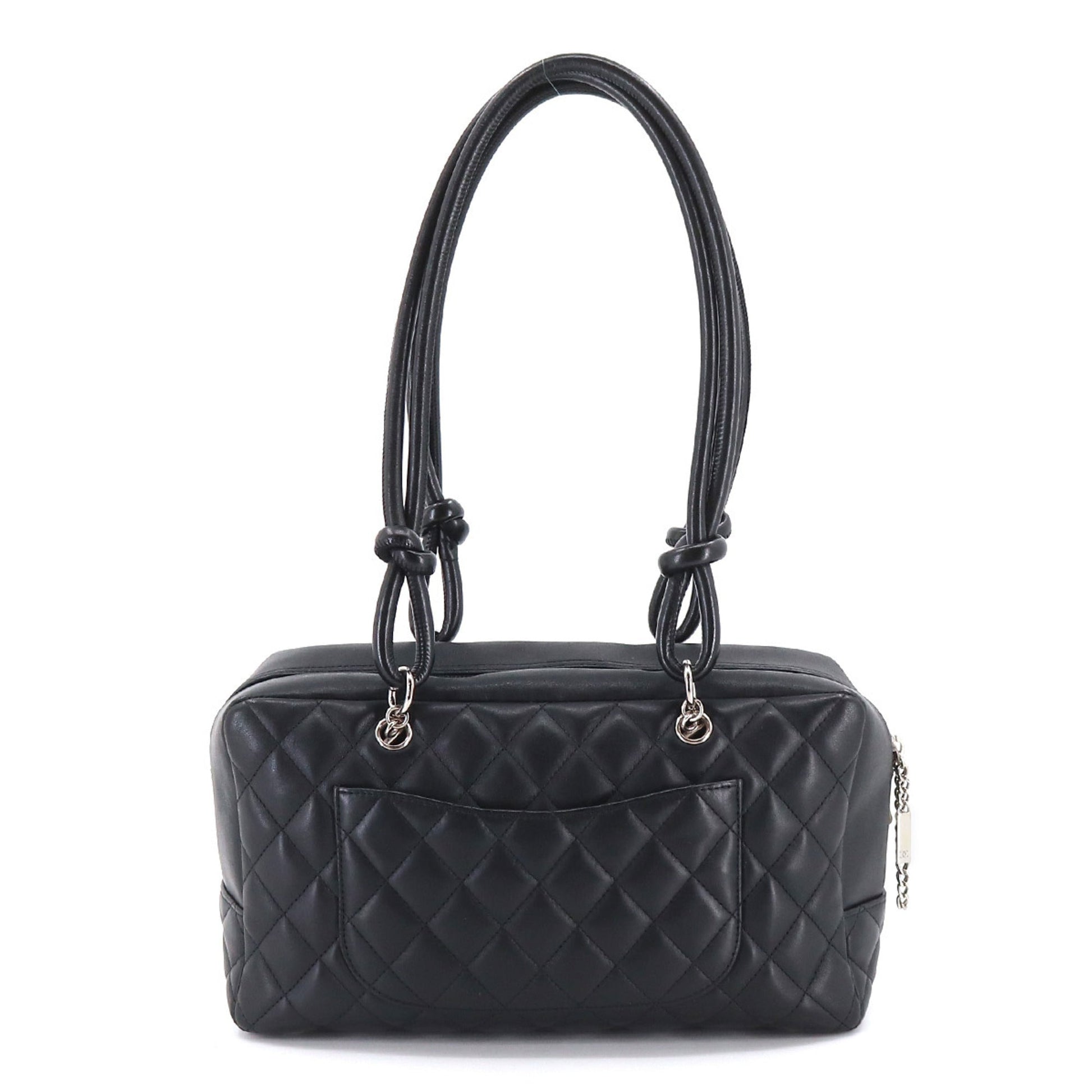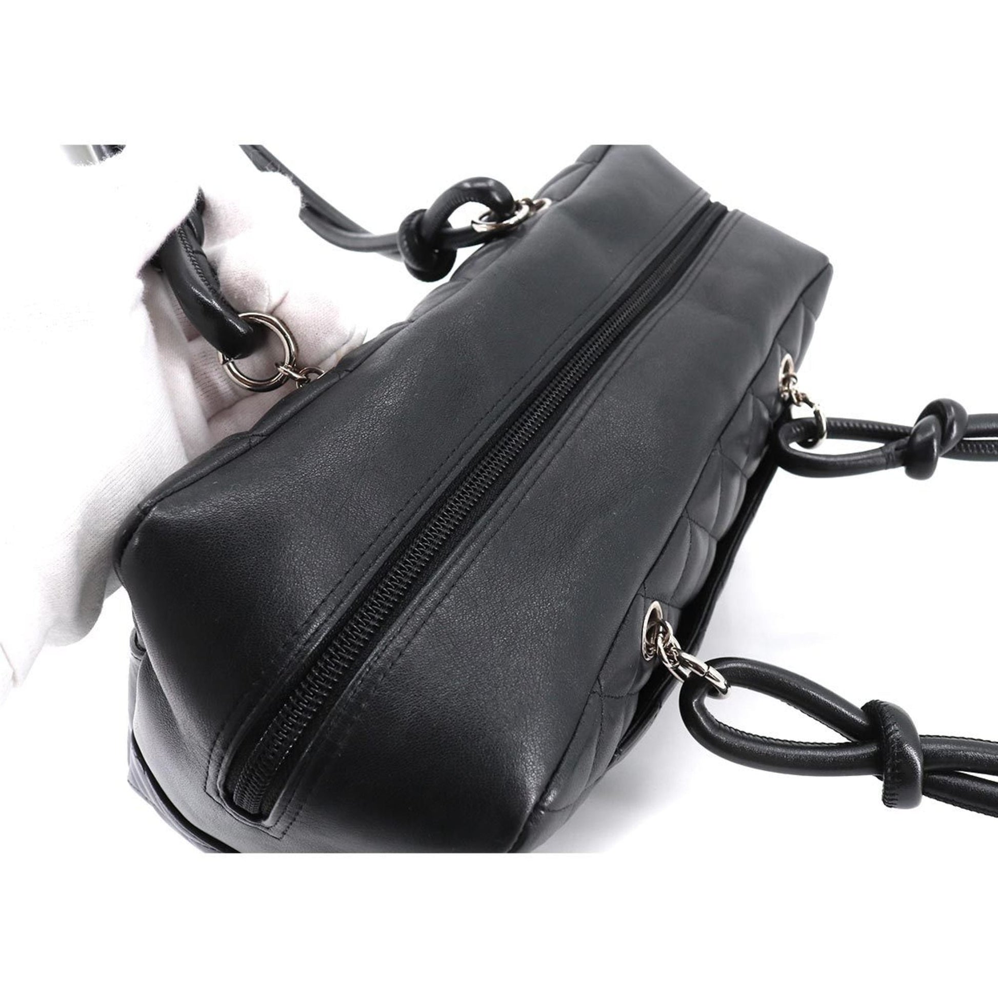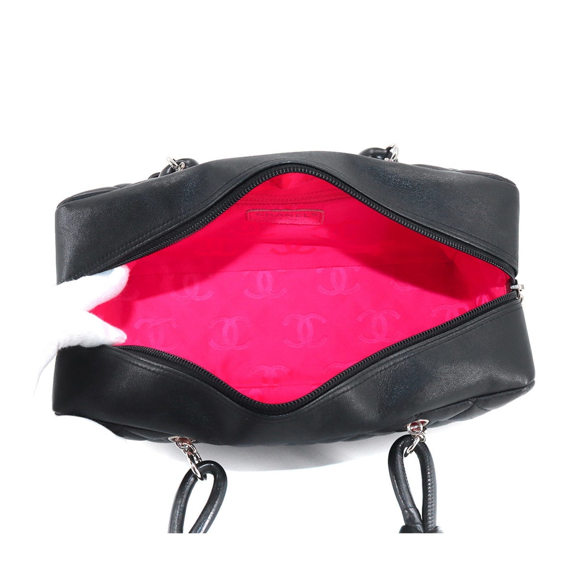 Chanel Cambon Line Bowling Shoulder Bag Leather Black White A25171