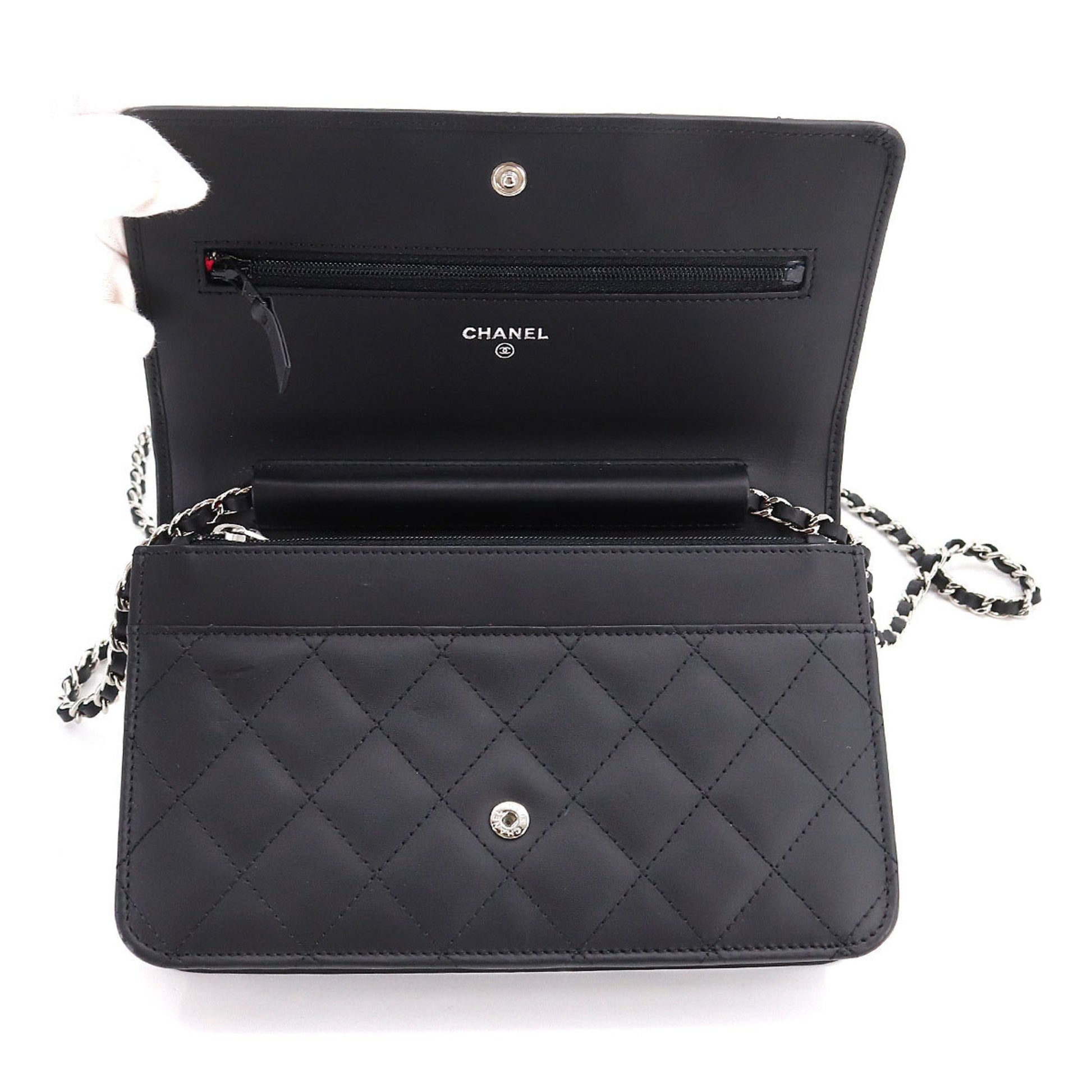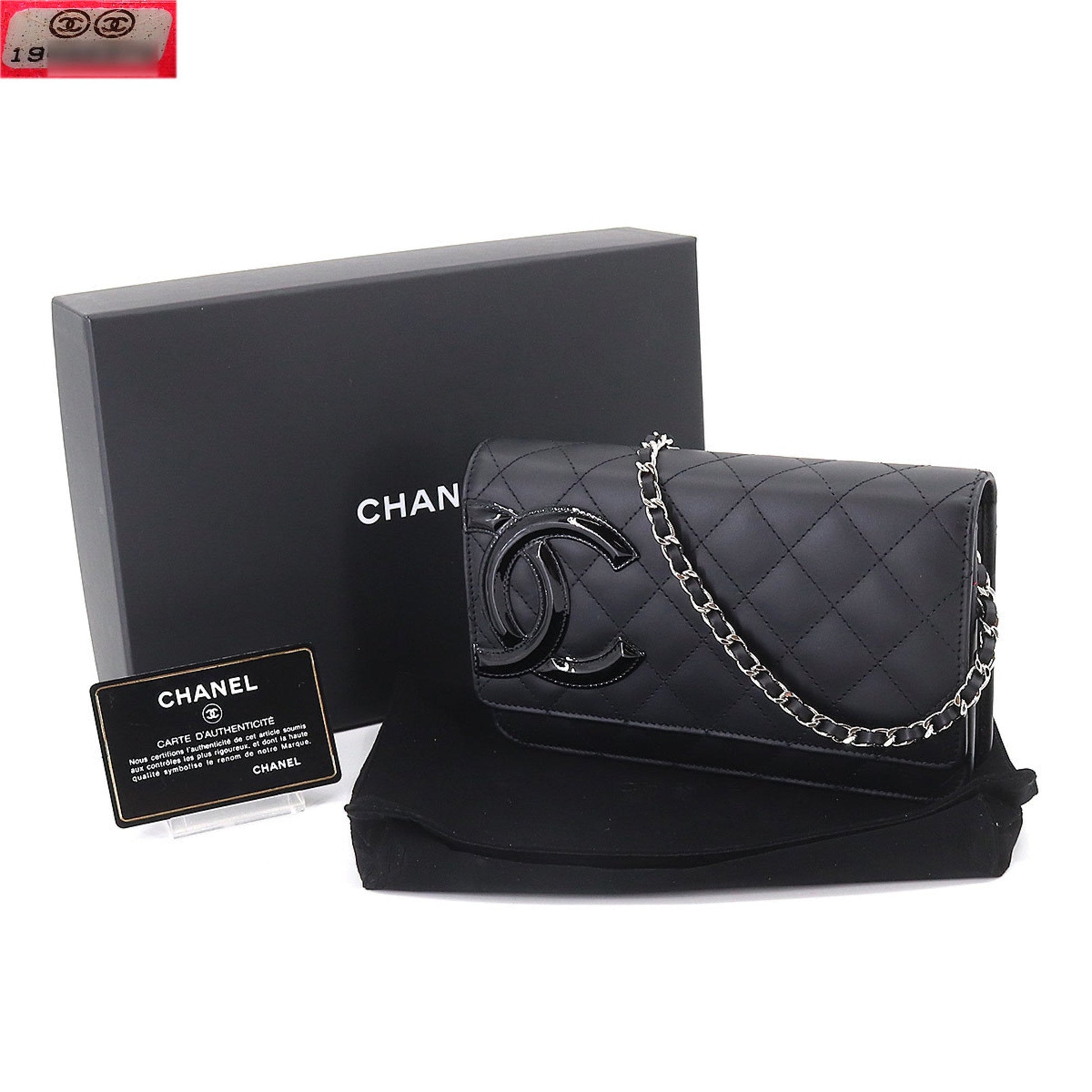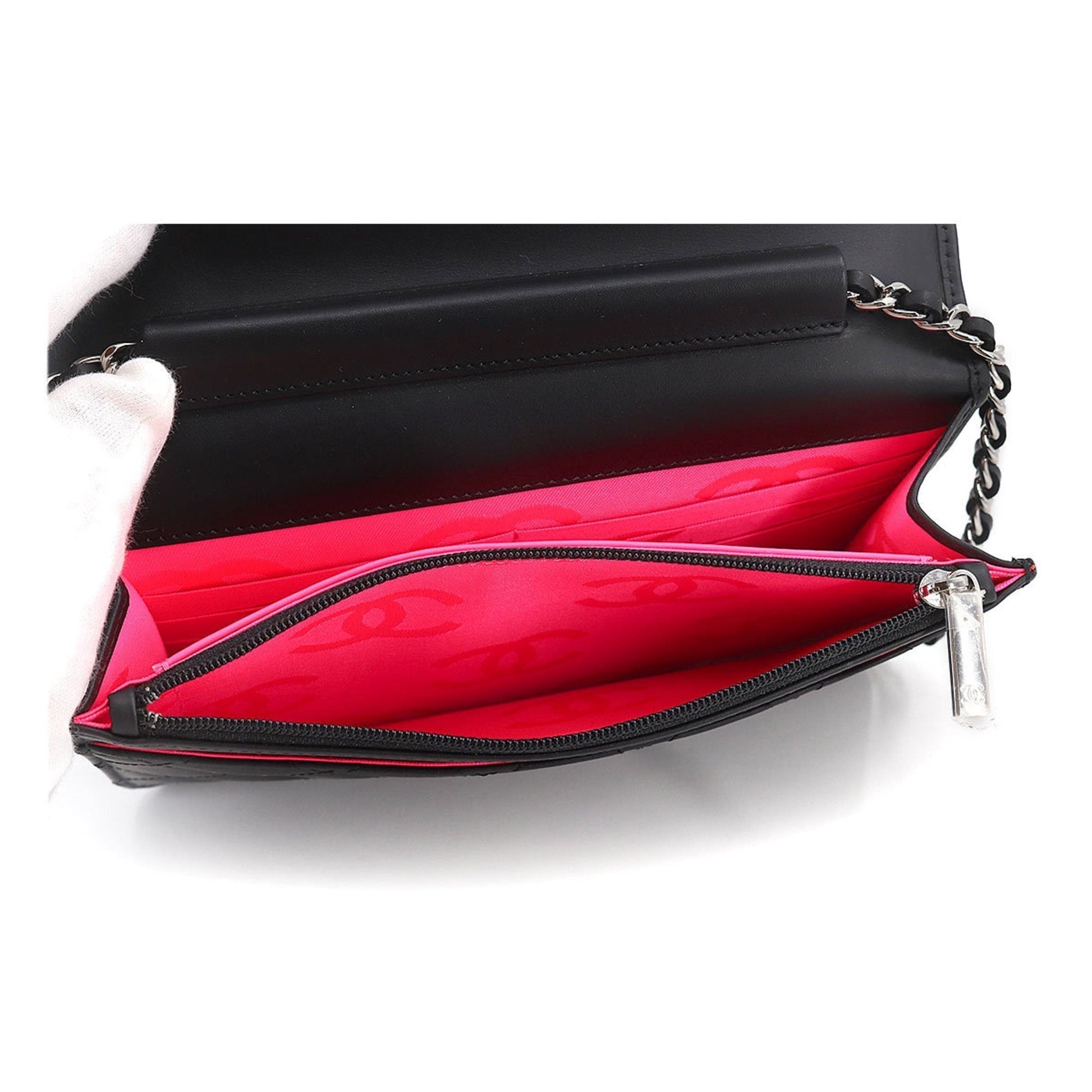 Chanel Cambon Line Chain Wallet Bifold Long Leather Enamel Black A46646