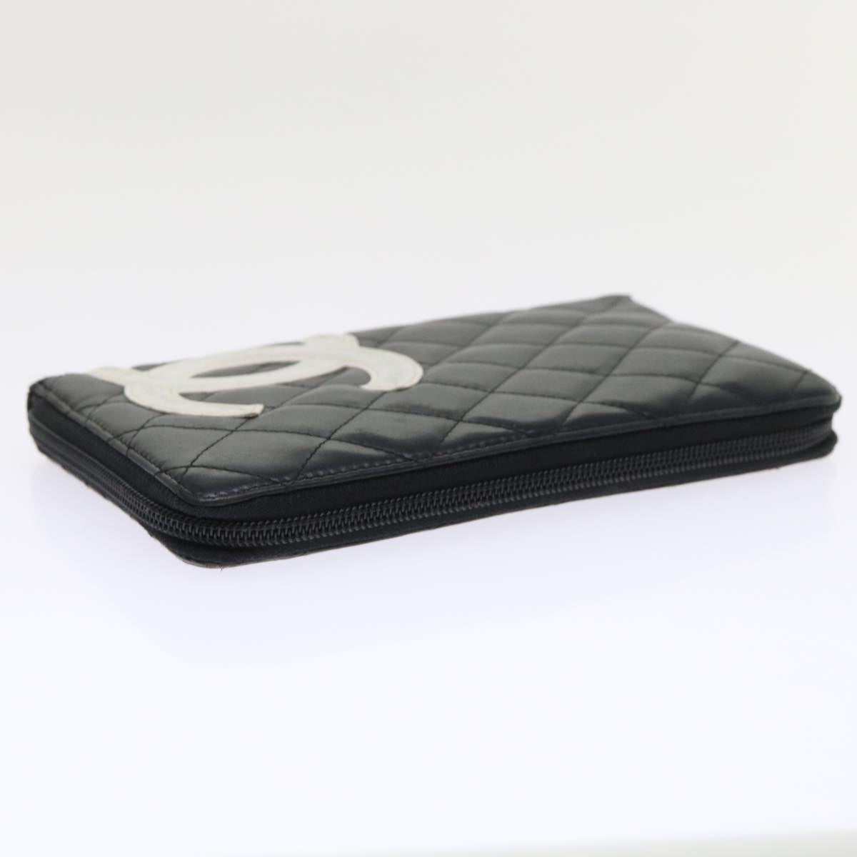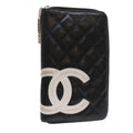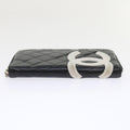 Chanel Cambon Line Long Wallet Lamb Skin Black CC Auth th3796