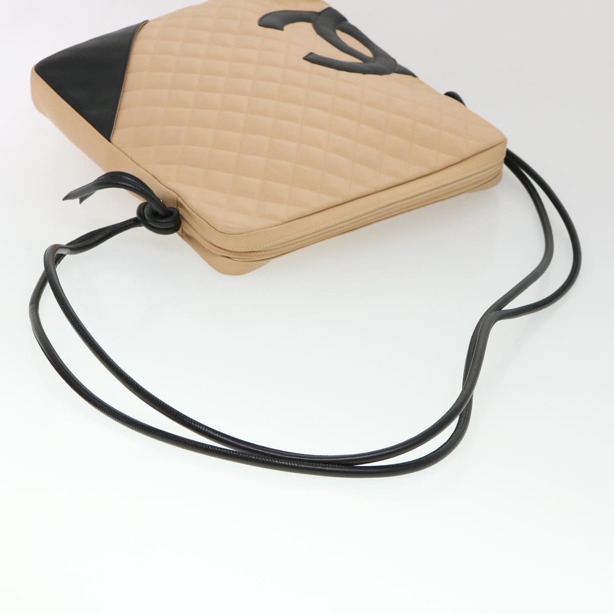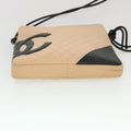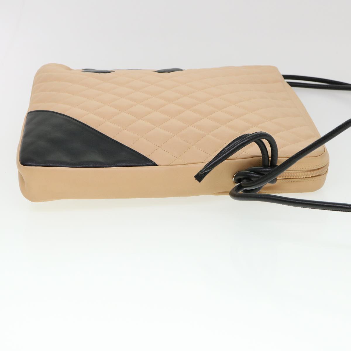 Chanel Cambon Line Shoulder Bag Caviar Skin Beige CC Auth am4027