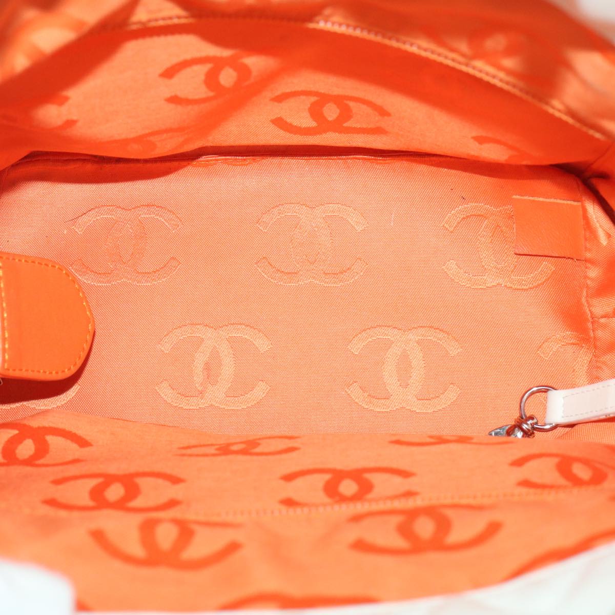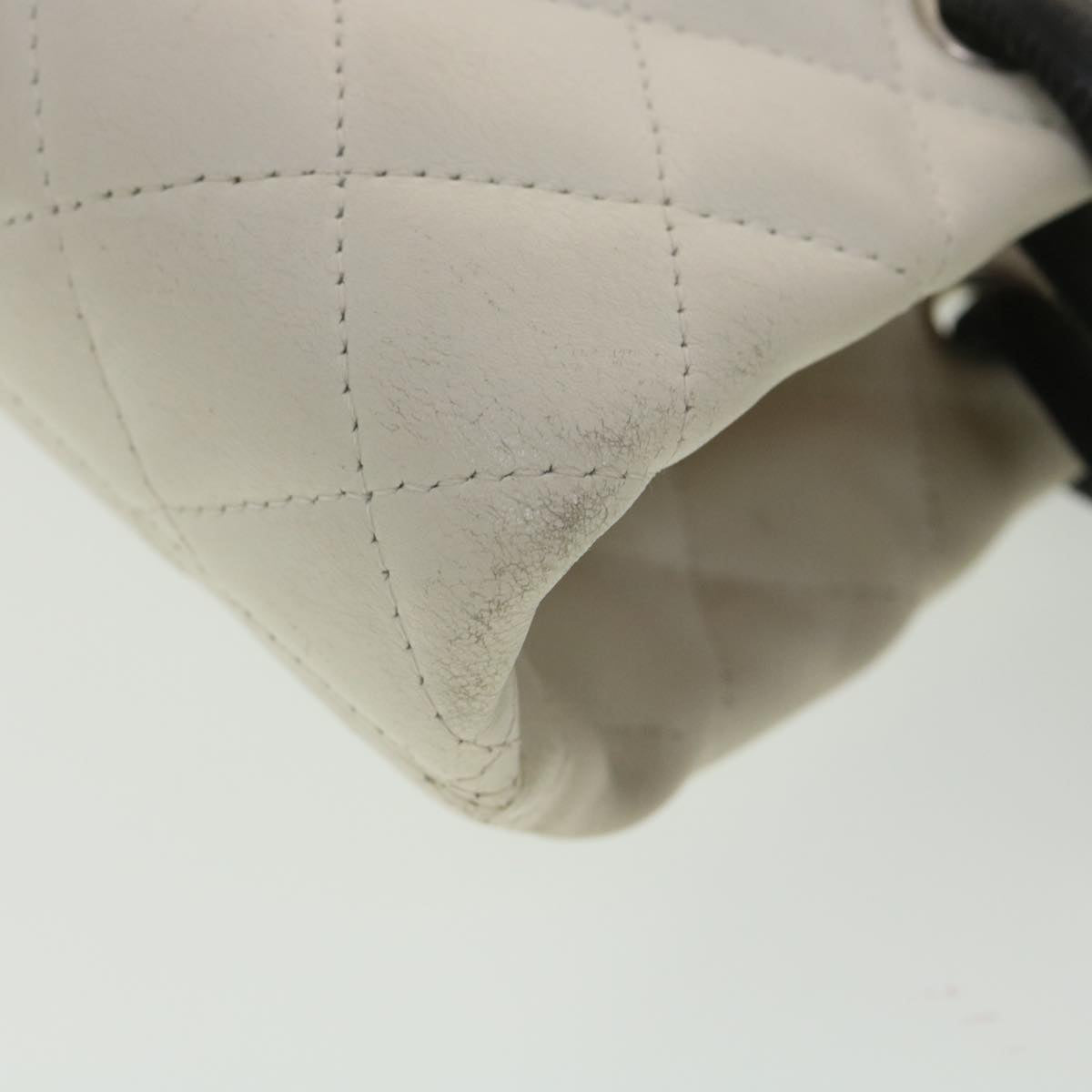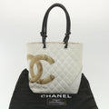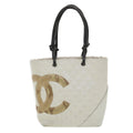 Chanel Cambon Line Tote Bag Lamb Skin White CC Auth am3907