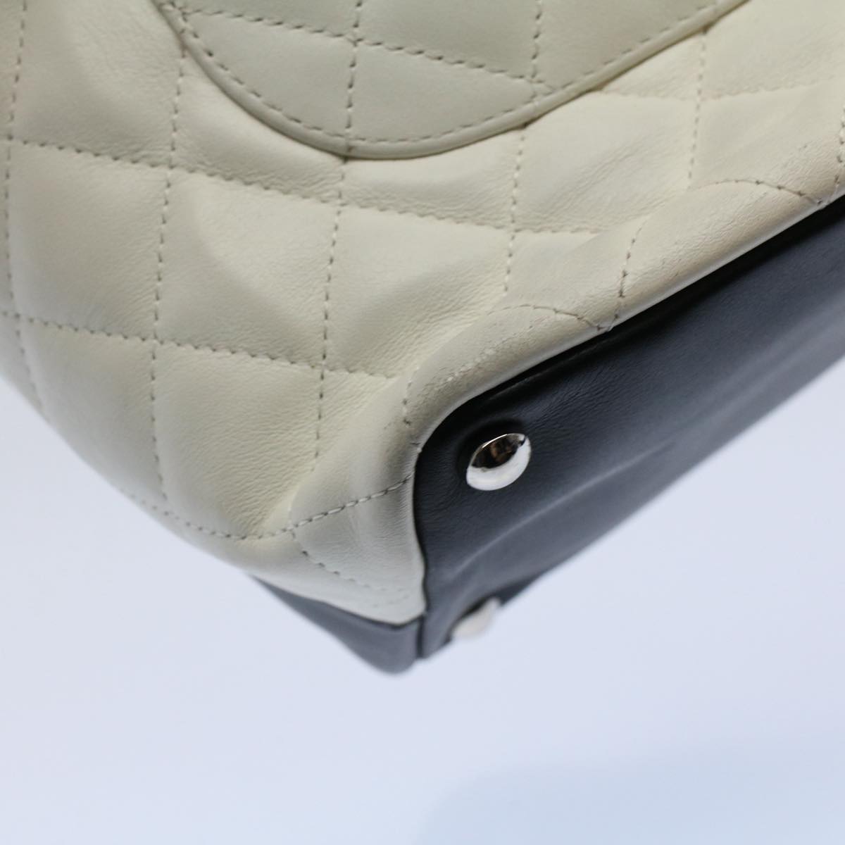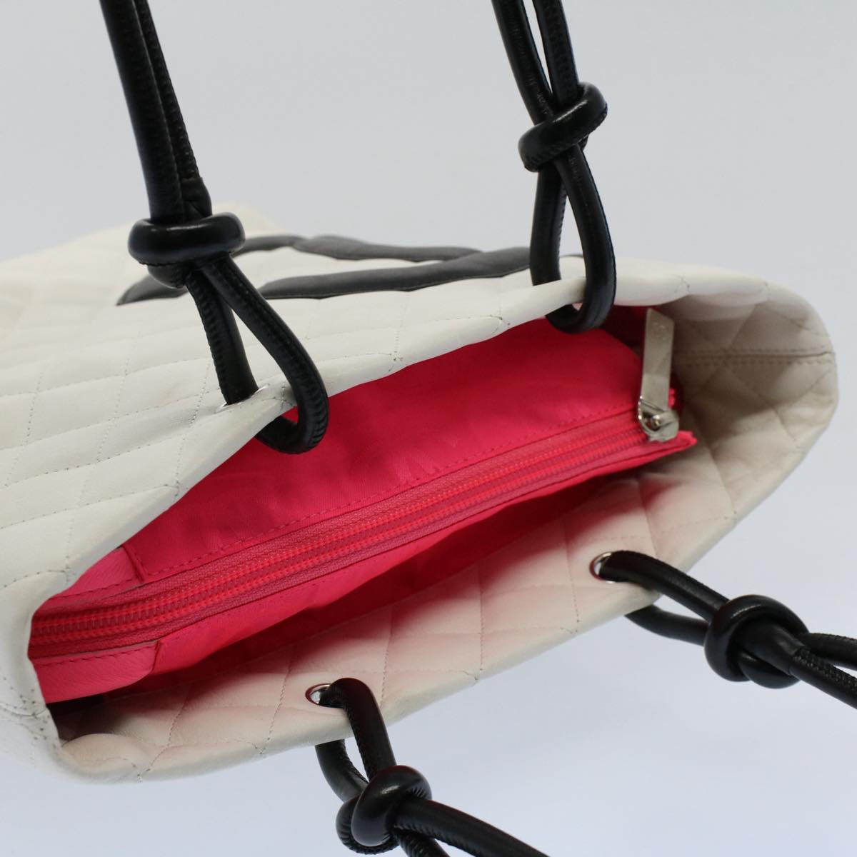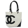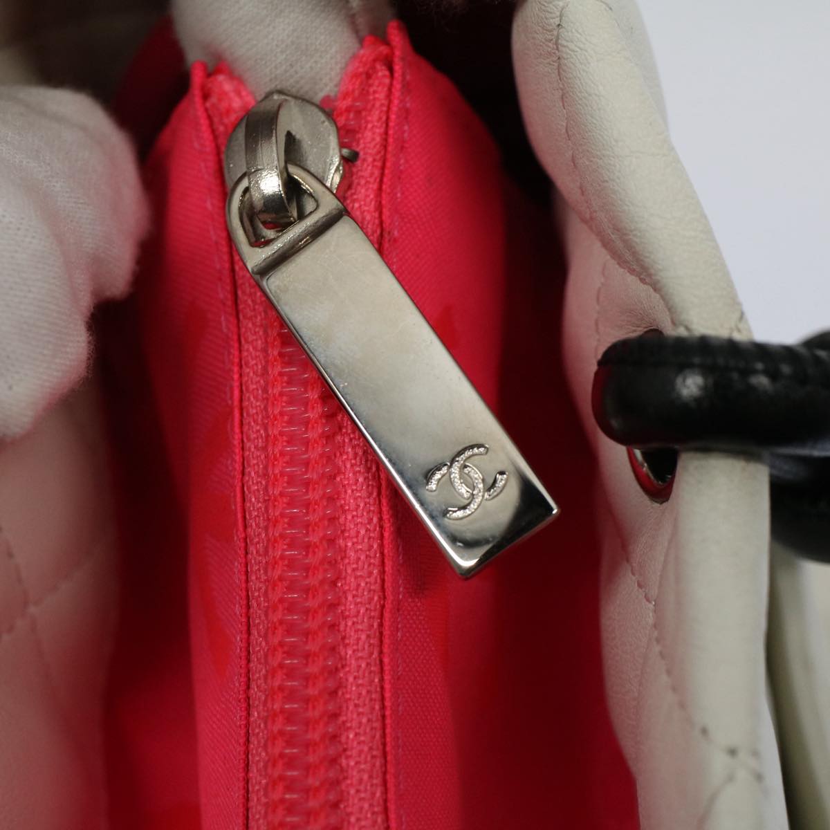 CHANEL Cambon Line Tote Bag Leather White CC Auth am5197A
