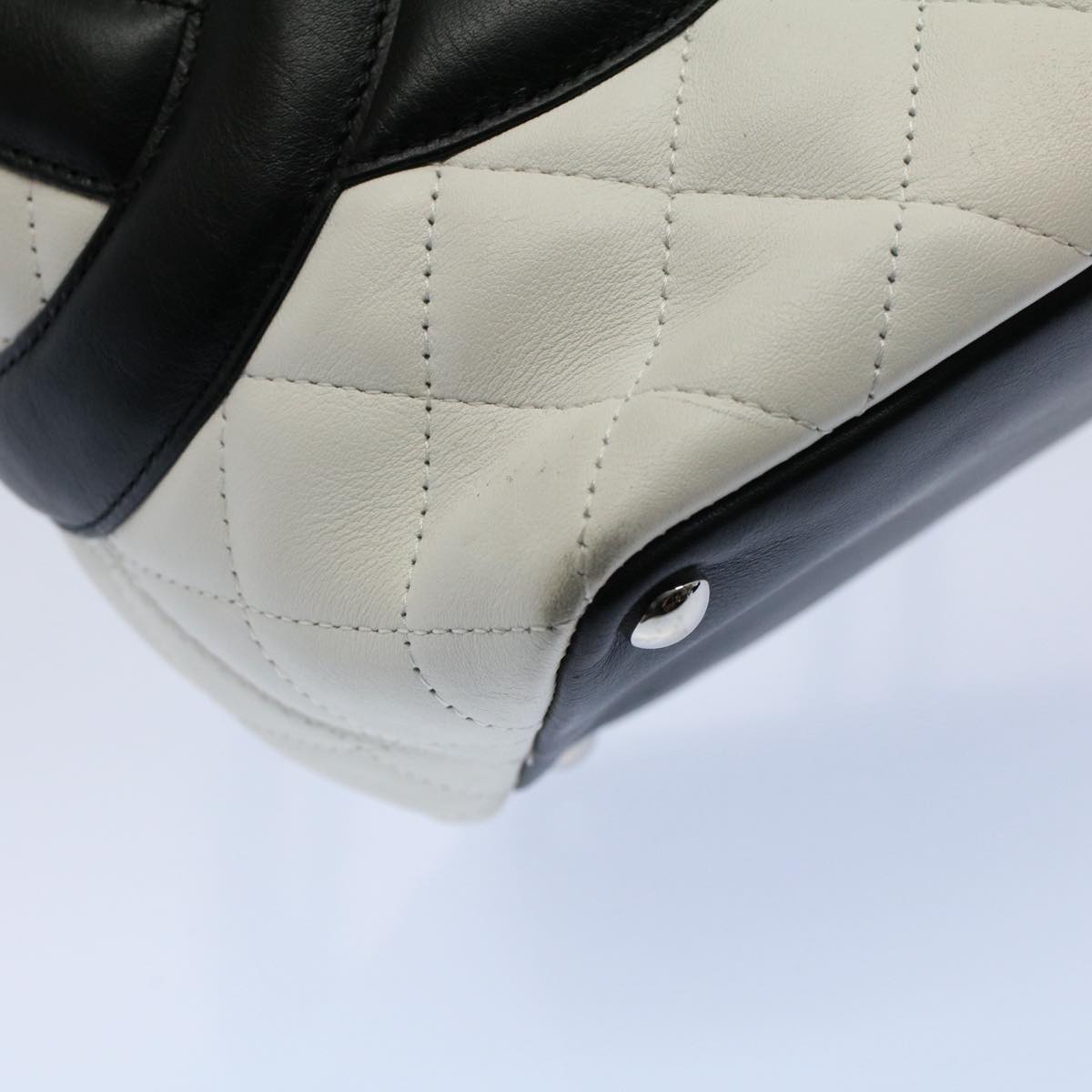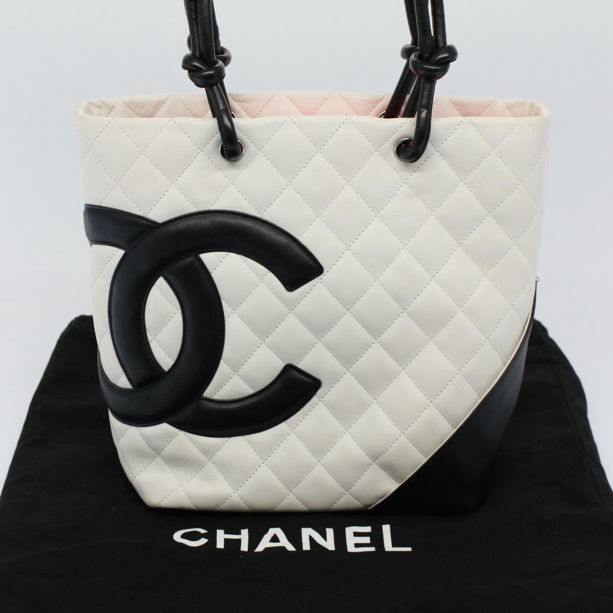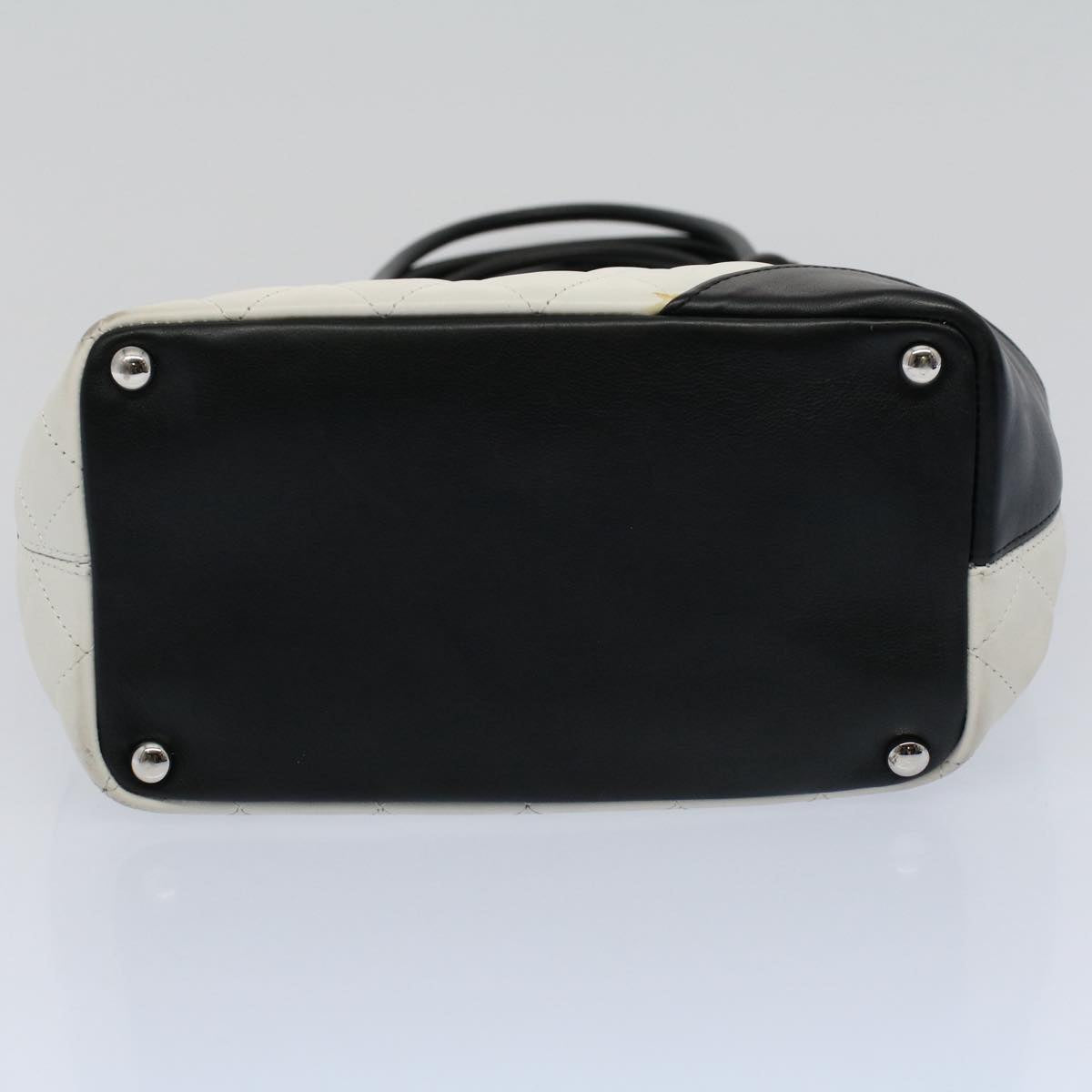 CHANEL Cambon Line Tote Bag Leather White CC Auth am5197A
