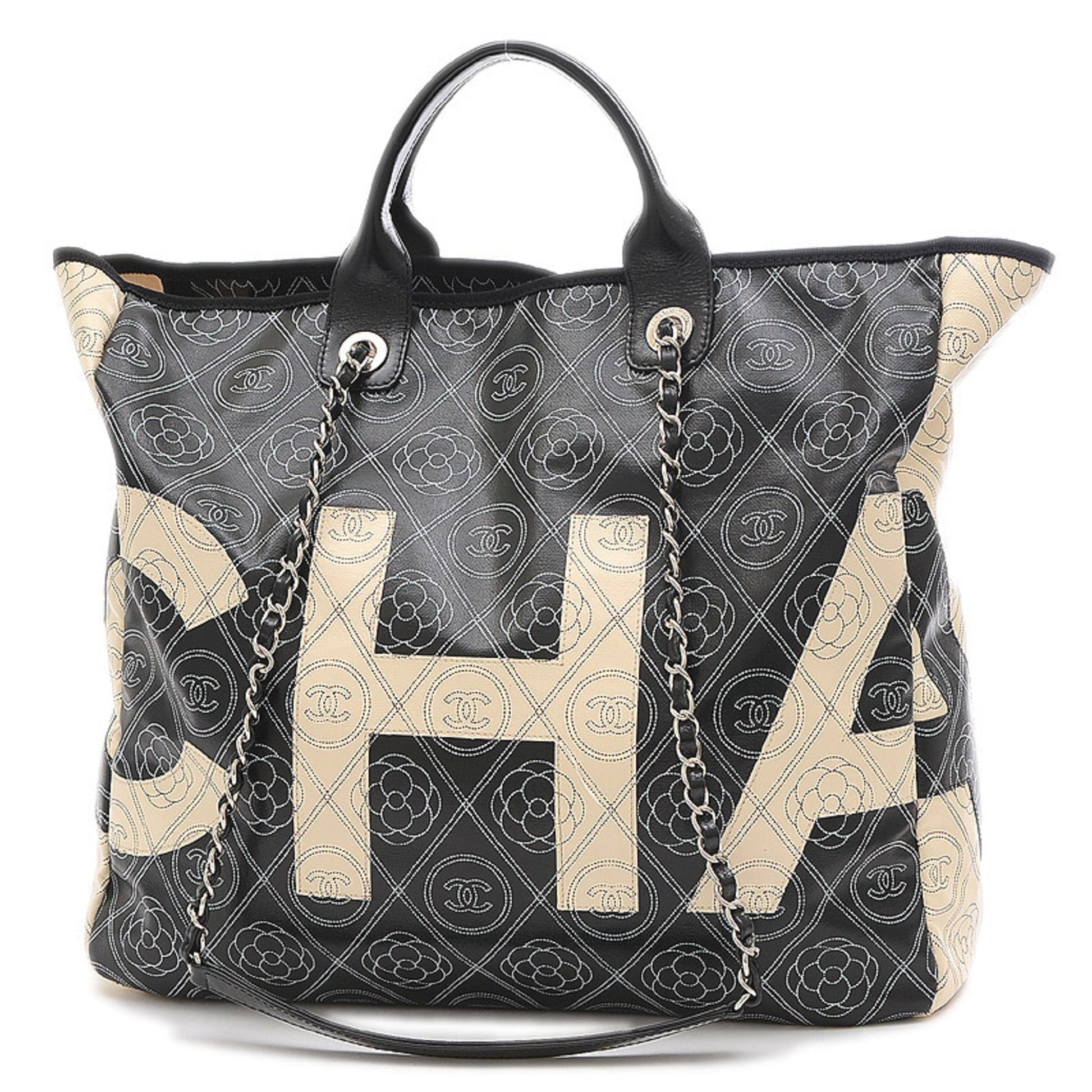 Chanel Camellia Large Tote Bag Coated Canvas Black/White A57161