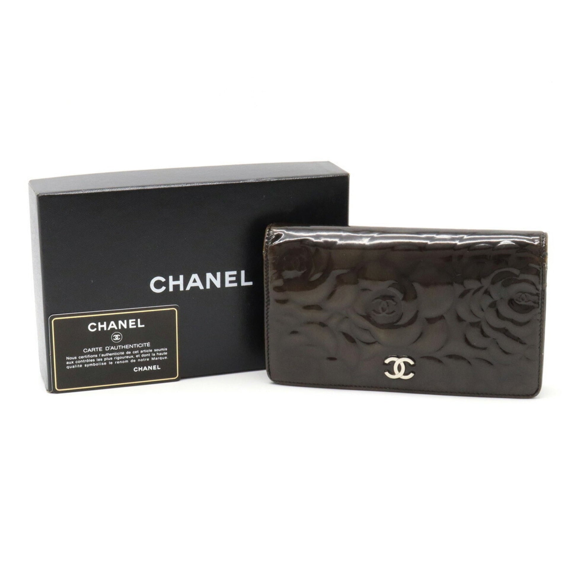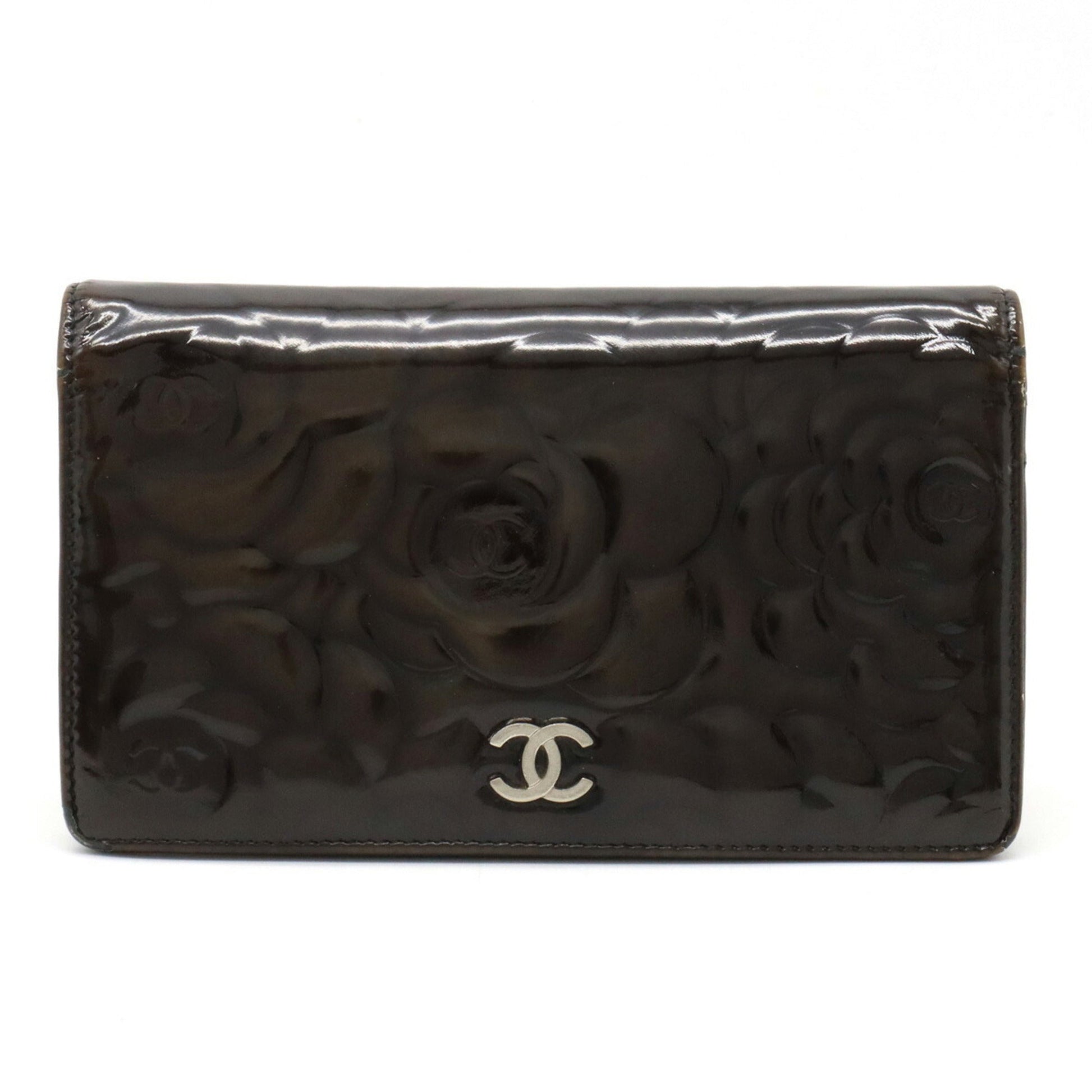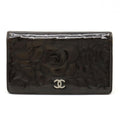 Chanel Camellia Motif Here Mark Bifold Patent Leather Enamel Black A36544