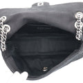 Elevate your style with the Chanel Camellia Chain Shoulder Bag in sleek black denim. This iconic piece exudes sophistication with its classic design and signature camellia flower detail. The versatile chain strap allows for effortless crossbody or shoulder wear, perfect for any occasion.
